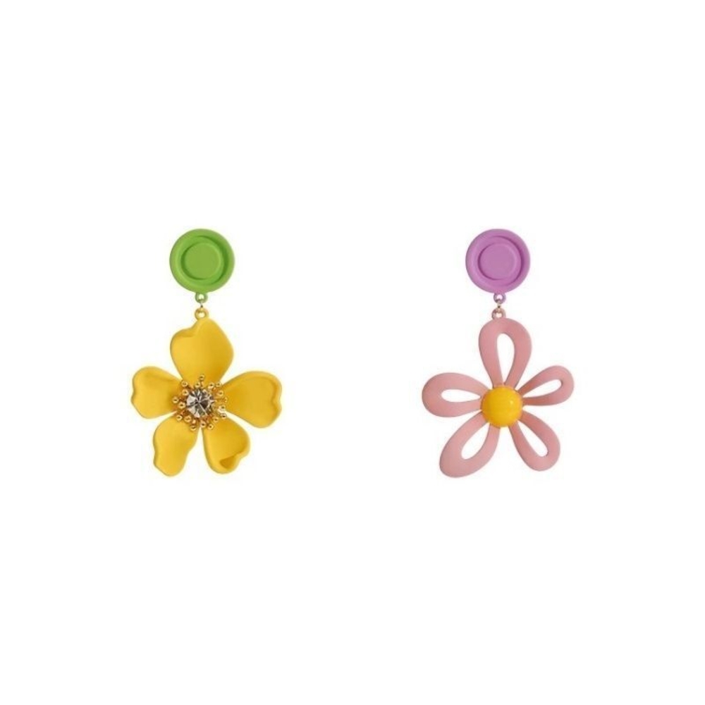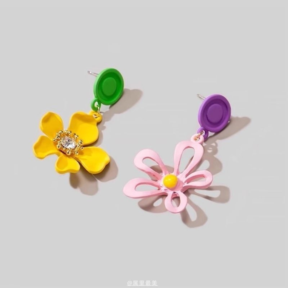 耳環撞色不對稱花朵蚊香盤耳夾女無耳洞耳環小眾田園度假風多巴胺耳飾不過敏看不膩超閃耳環耳飾飾品百搭禮物輕盈精緻輕奢高級韓國