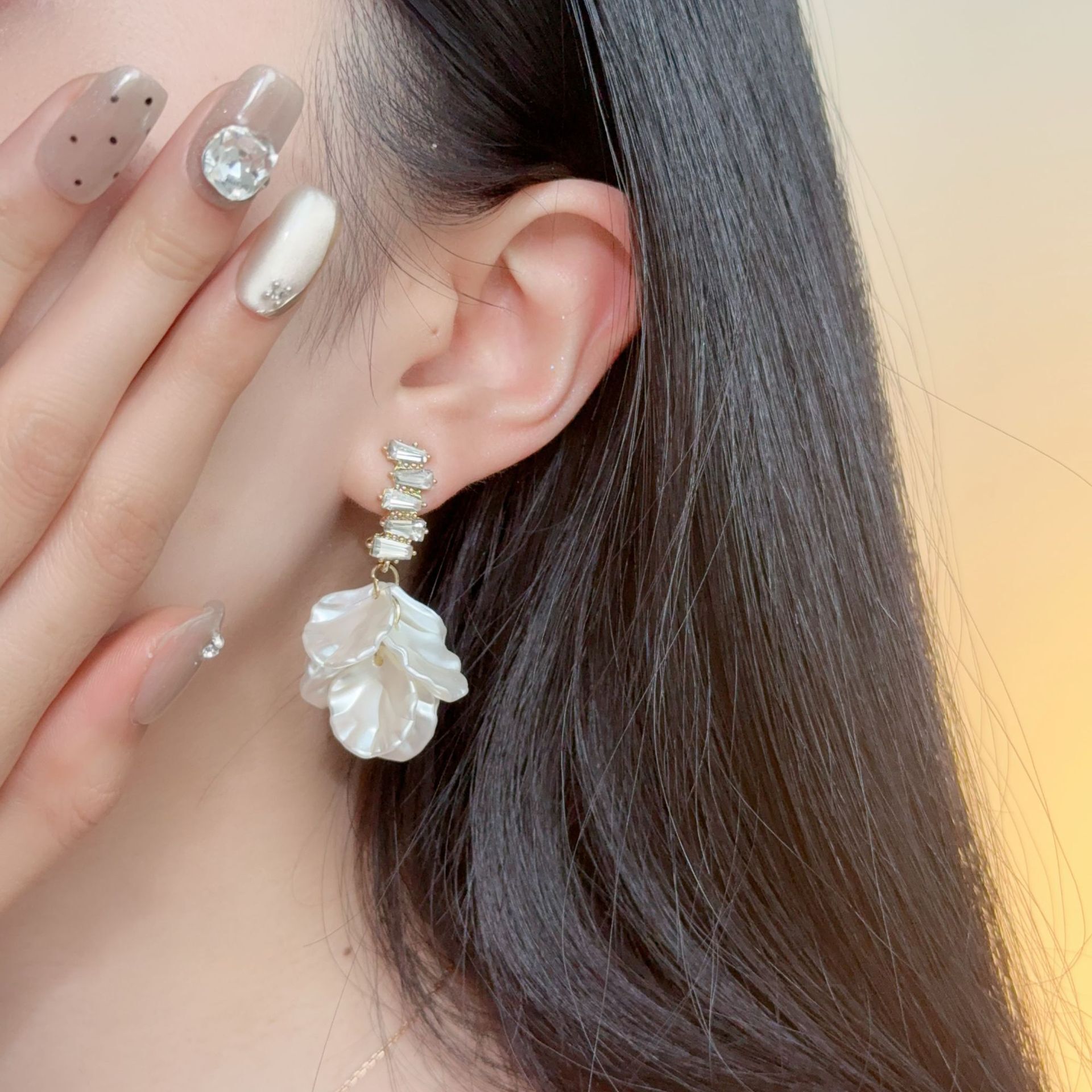 耳環法式輕奢超仙白色貝殼花朵耳環時尚洋氣設計感蚊香盤耳環耳飾女不過敏看不膩超閃耳環耳飾飾品不褪色禮物輕盈精緻輕奢高級韓國