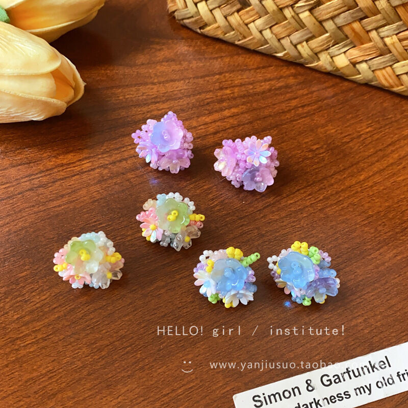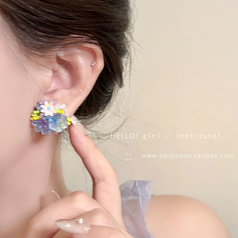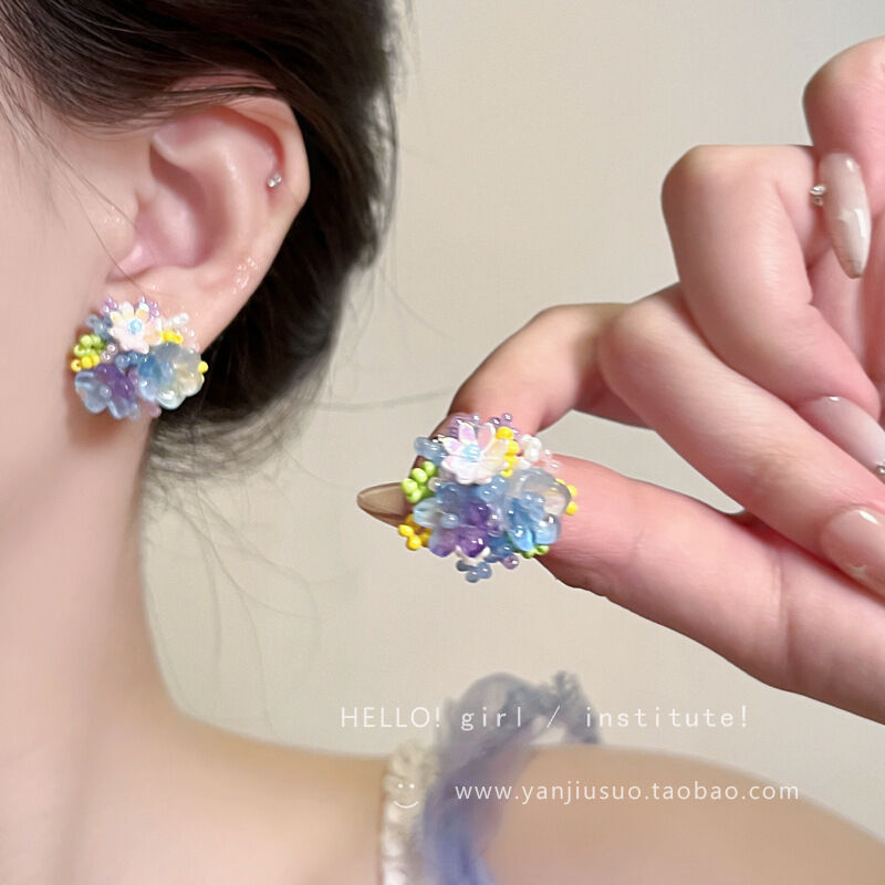 耳環多巴胺彩色花朵耳環女生高級感輕奢小眾耳釘甜美時尚耳飾 不過敏看不膩超閃耳環耳飾飾品不褪色百搭禮物輕盈精緻輕奢高級韓國