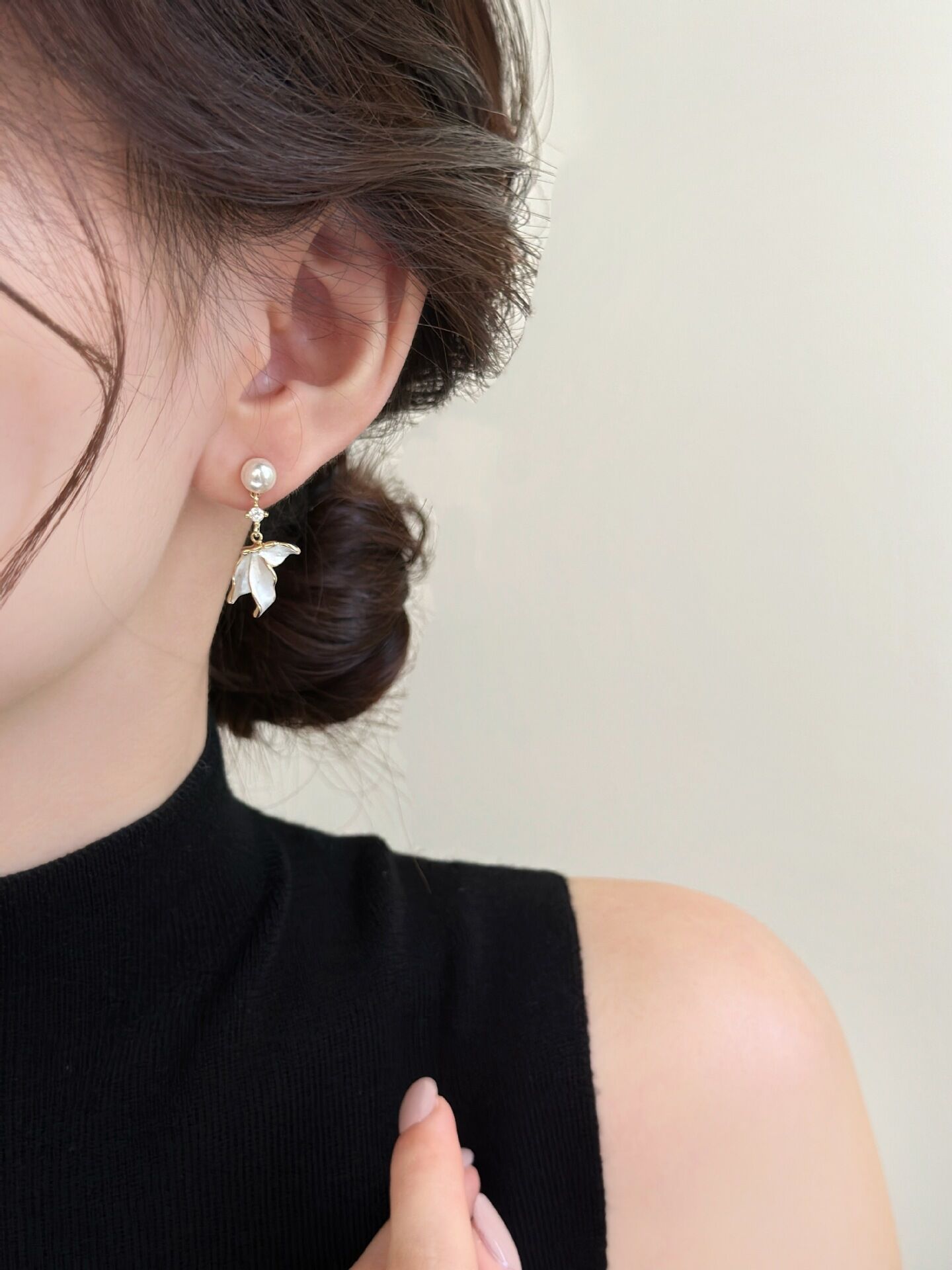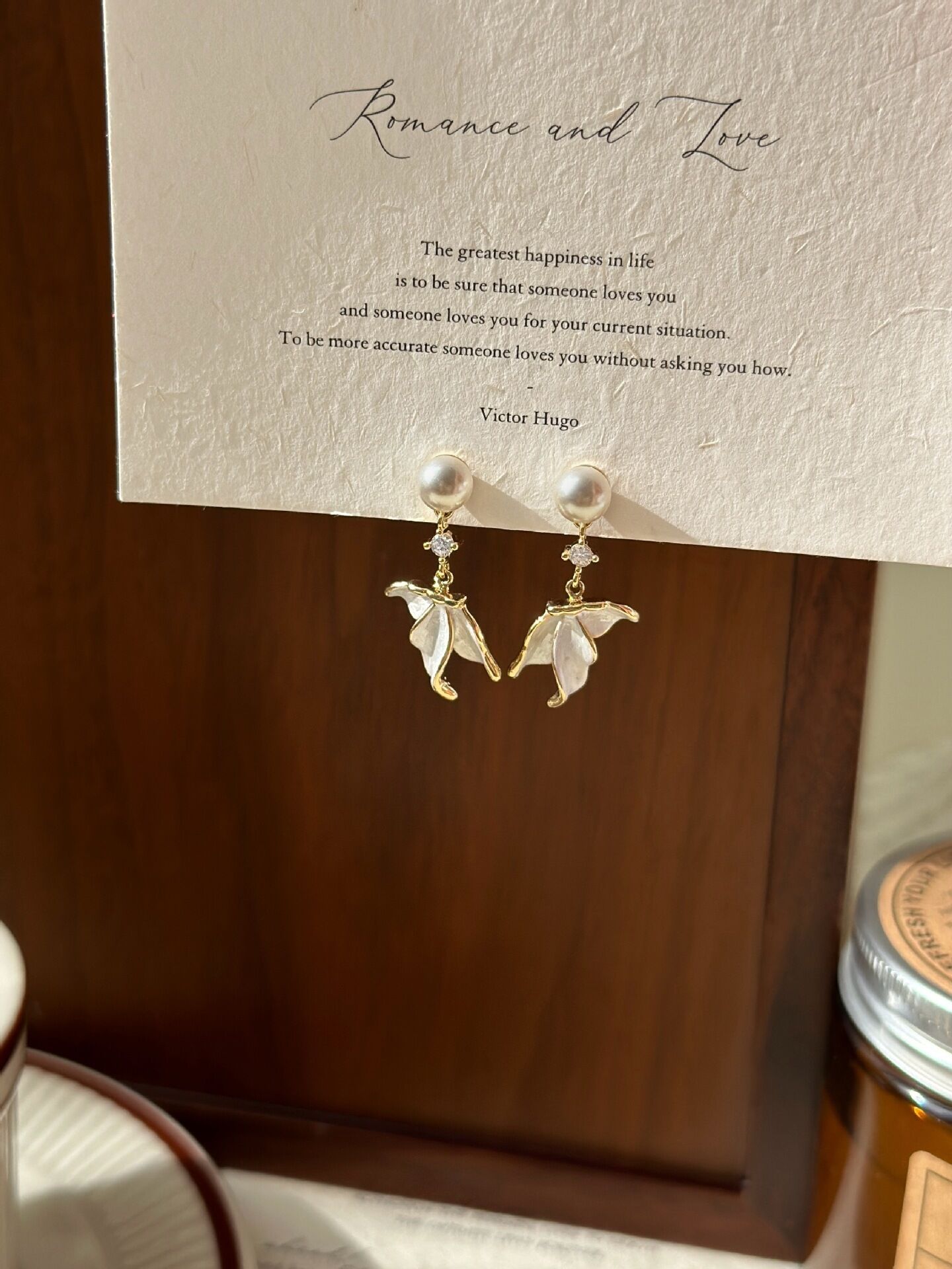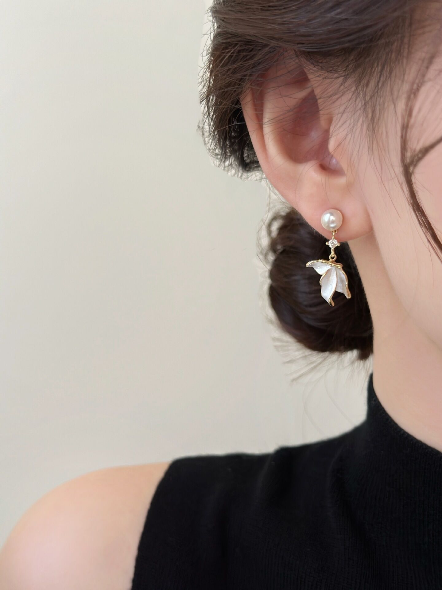 耳環 珍珠魚尾小流蘇耳環耳墜女秋冬新款輕奢高級感耳飾 不過敏看不膩超閃耳環耳飾飾品不褪色百搭禮物輕盈精緻輕奢高級韓國