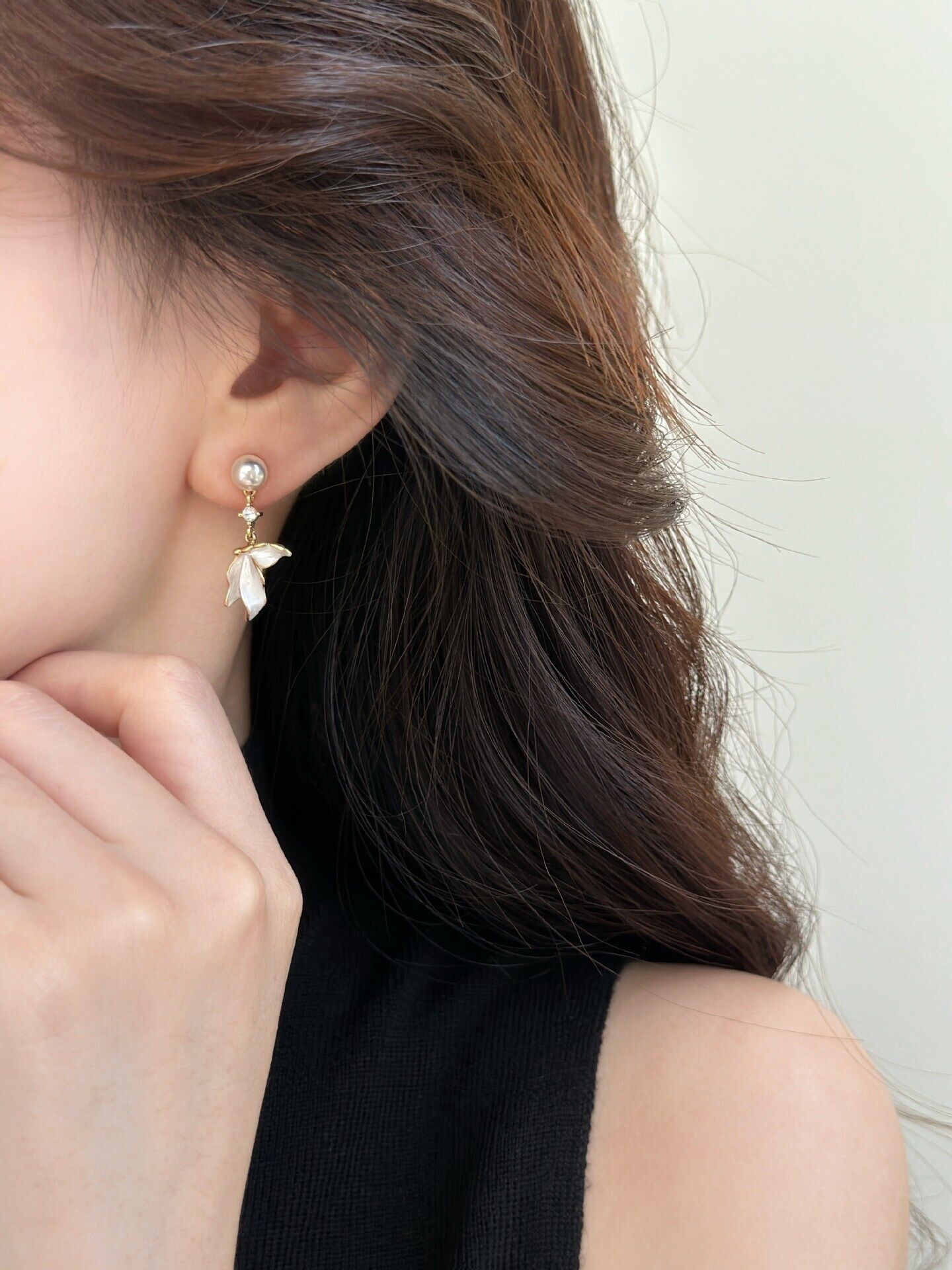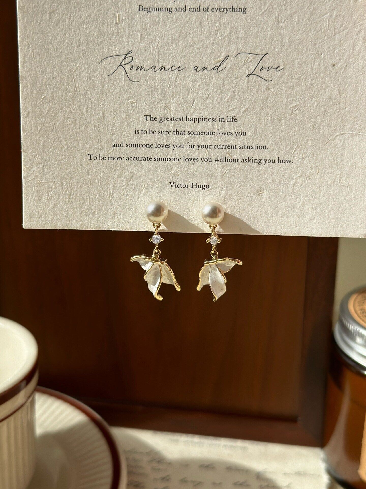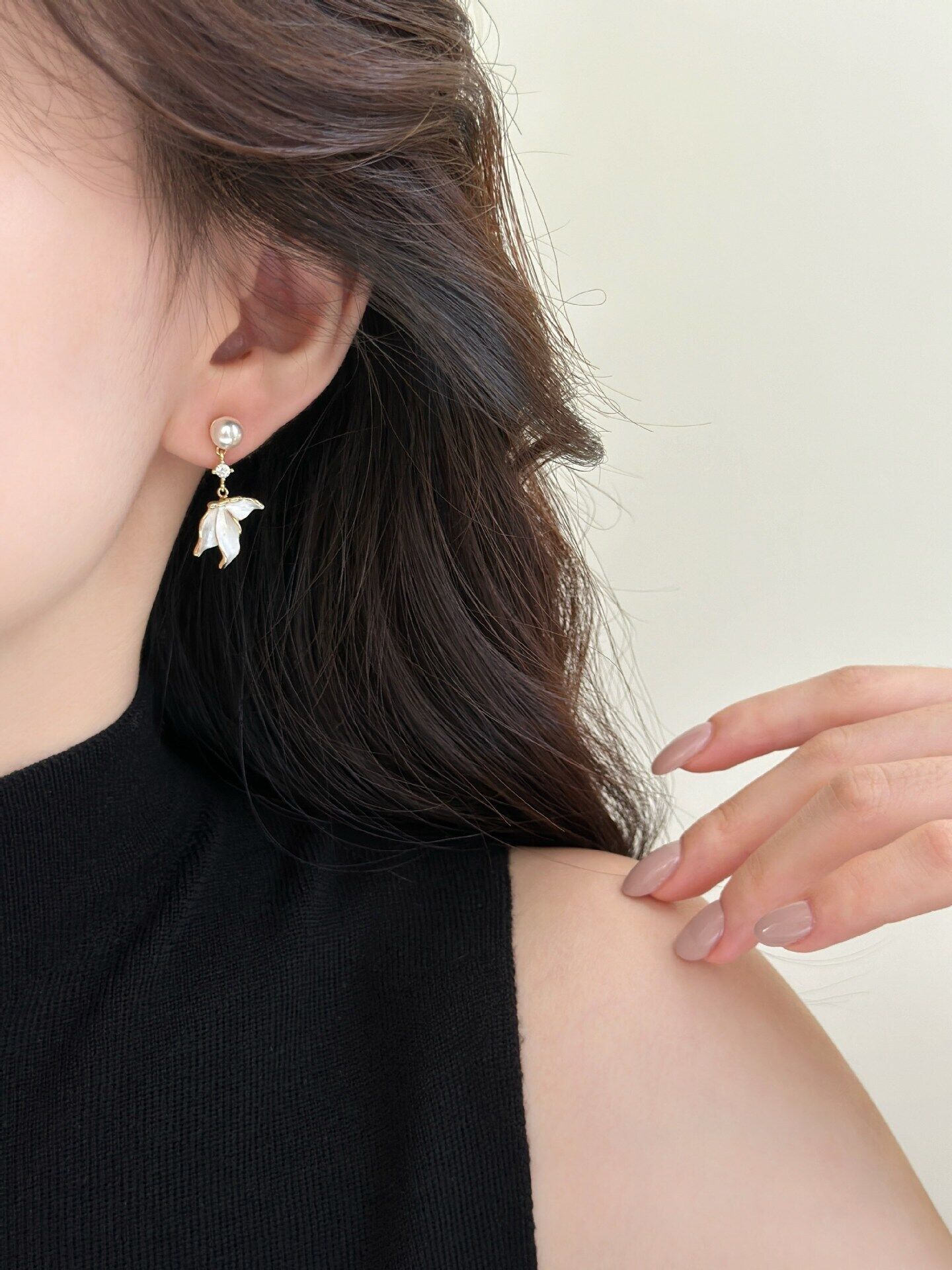 耳環 珍珠魚尾小流蘇耳環耳墜女秋冬新款輕奢高級感耳飾 不過敏看不膩超閃耳環耳飾飾品不褪色百搭禮物輕盈精緻輕奢高級韓國
