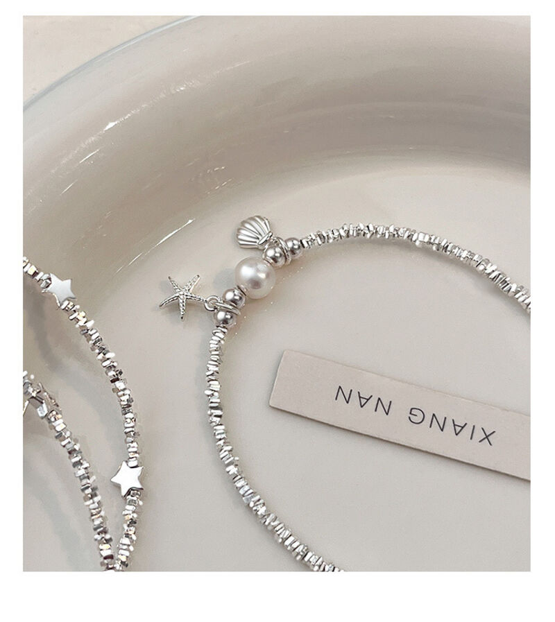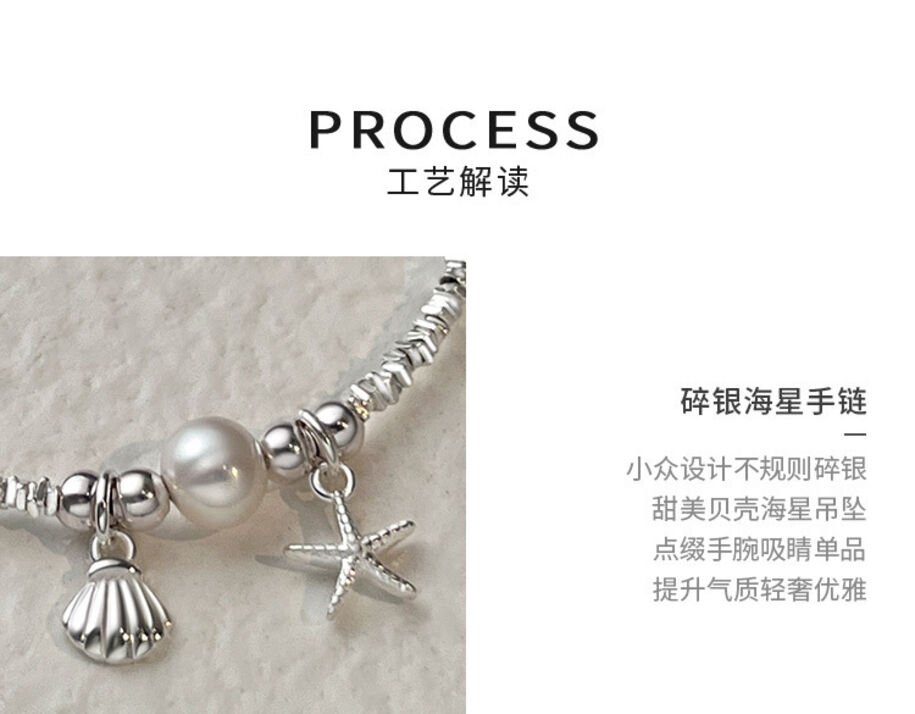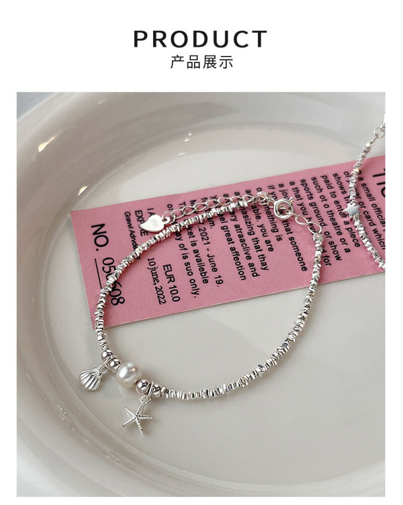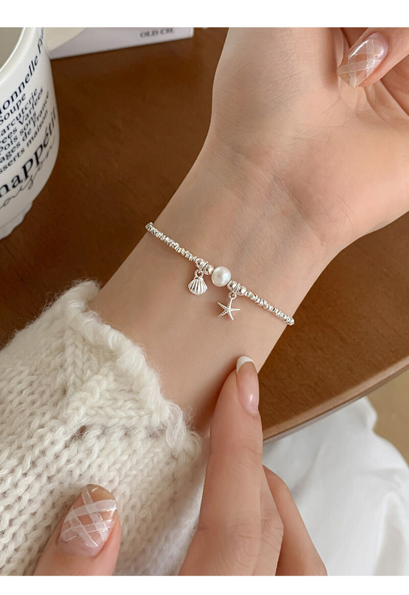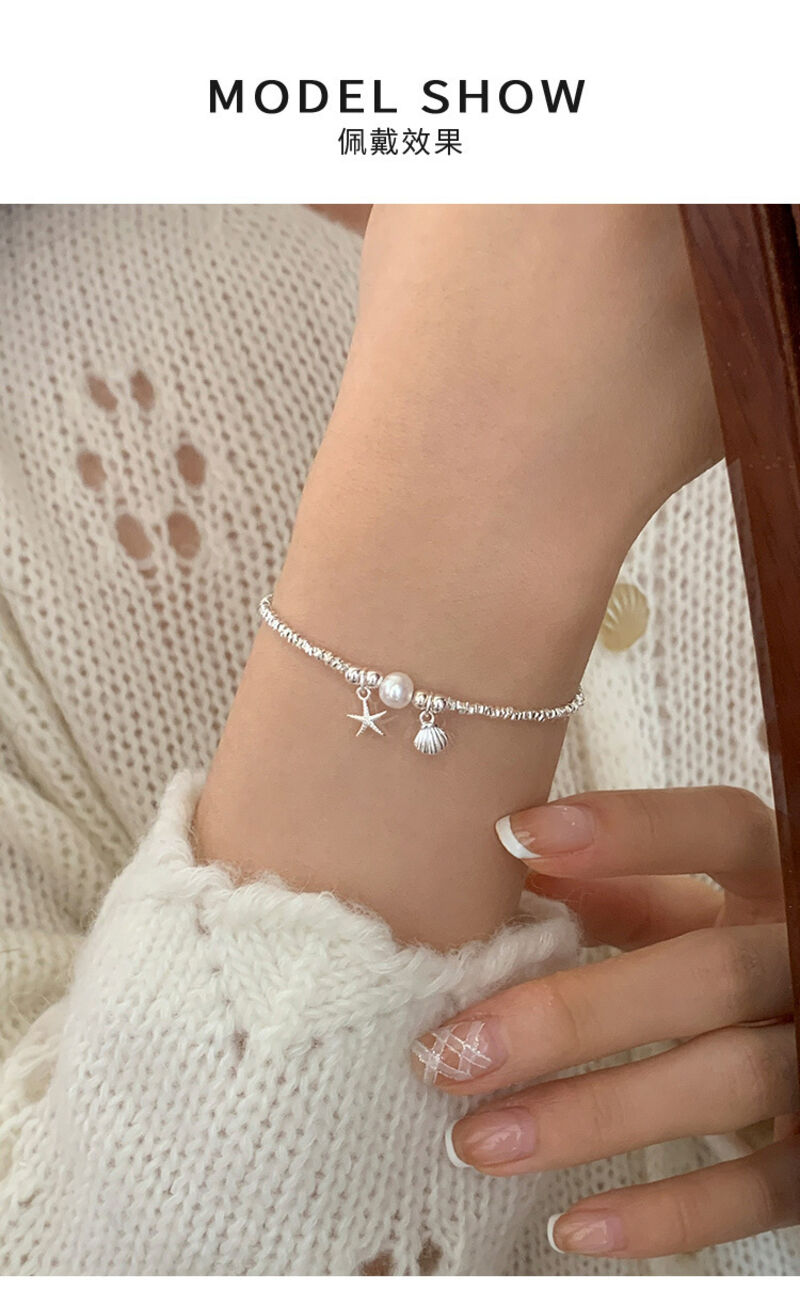 手鏈珍珠貝殼海星碎銀子手鏈女小眾設計感手串甜美高級感氣質手飾大方氣質日常通勤派對約會手鏈輕盈手鏈手環手串手飾簡約百搭高級