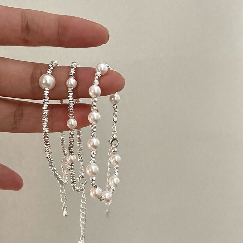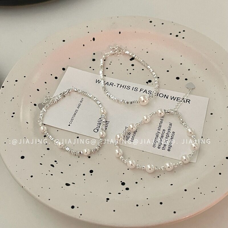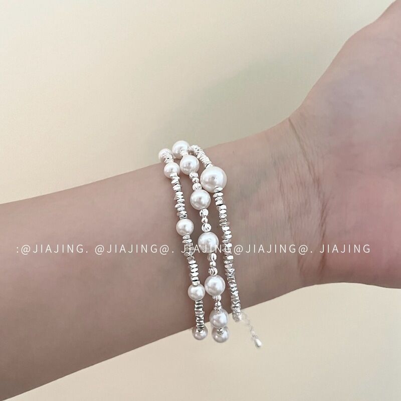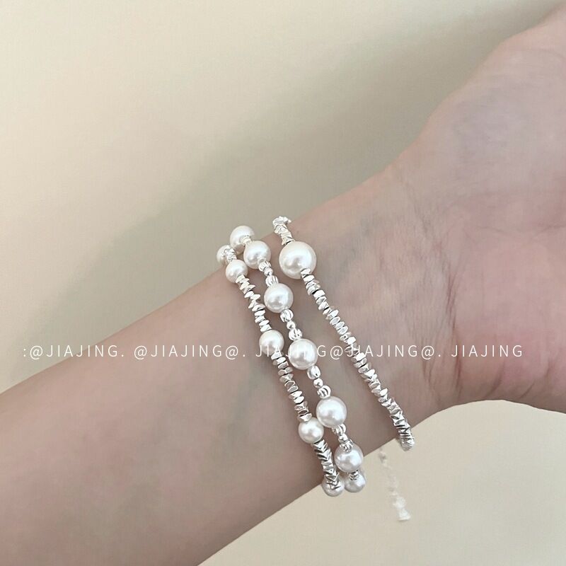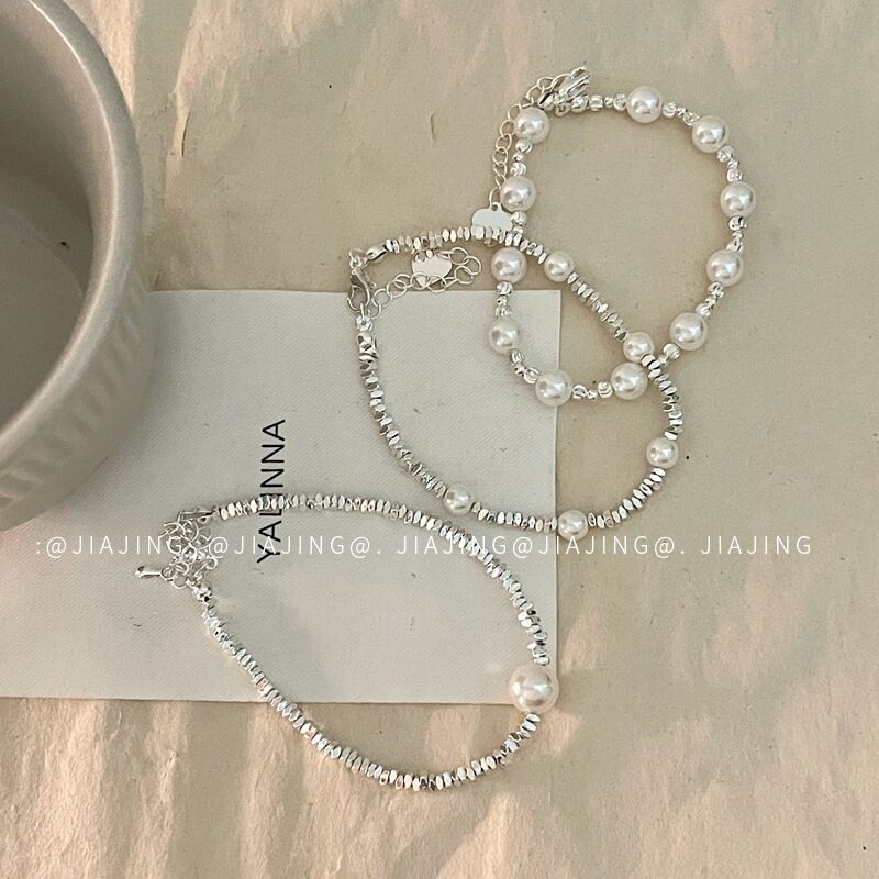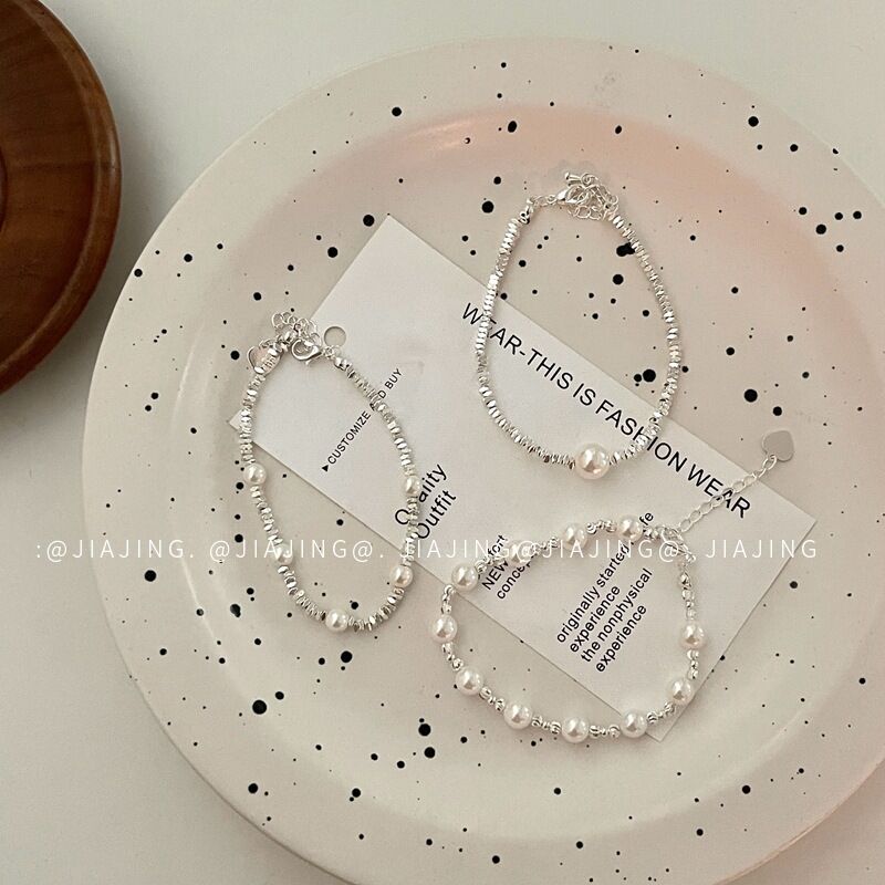 手鍊小眾碎銀子拼接珍珠手鏈高級感輕奢風氣質個性簡約百搭手飾手鏈時尚百搭手鏈手環手鐲可調整大小精緻甜美手鍊情侶手繩送禮禮物
