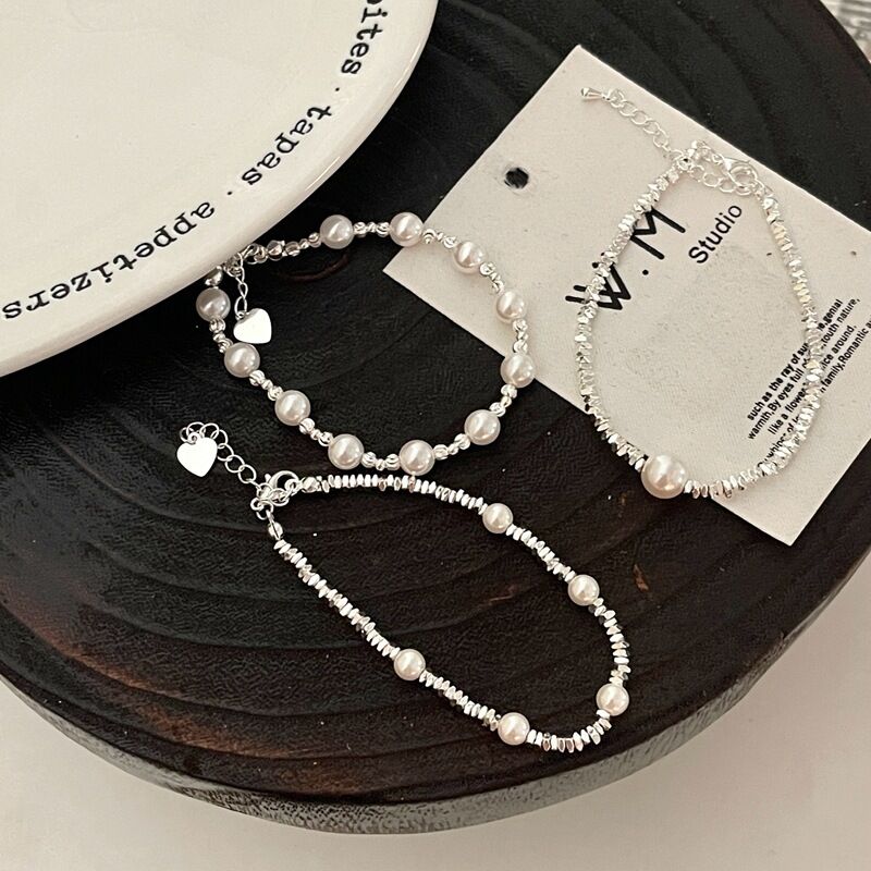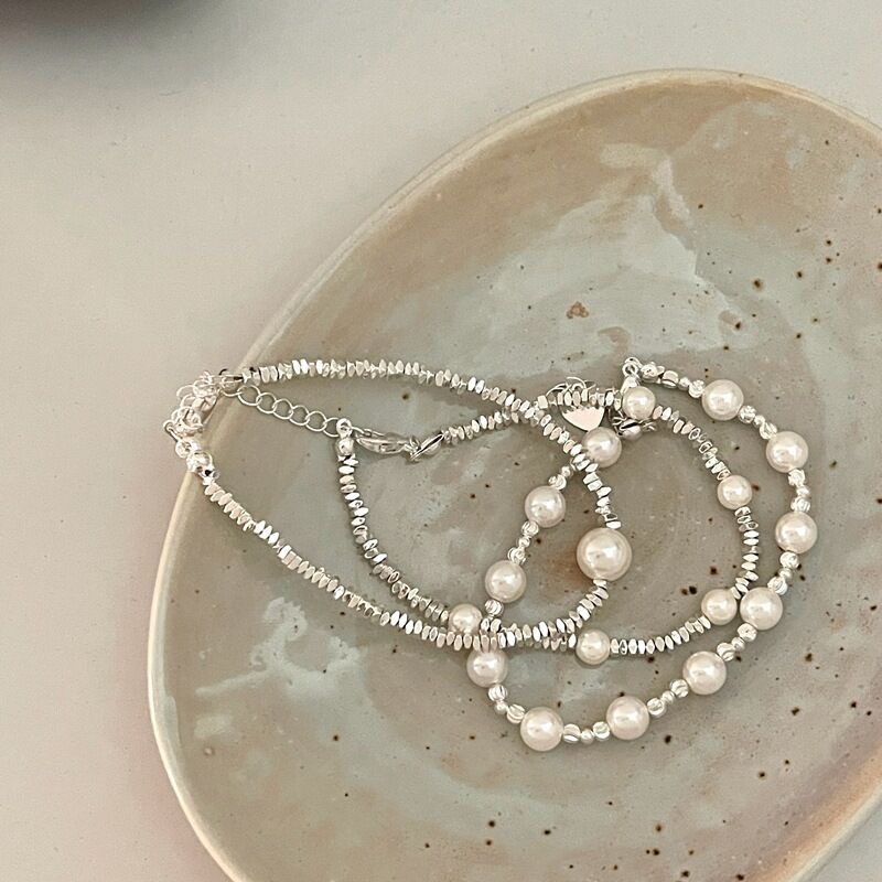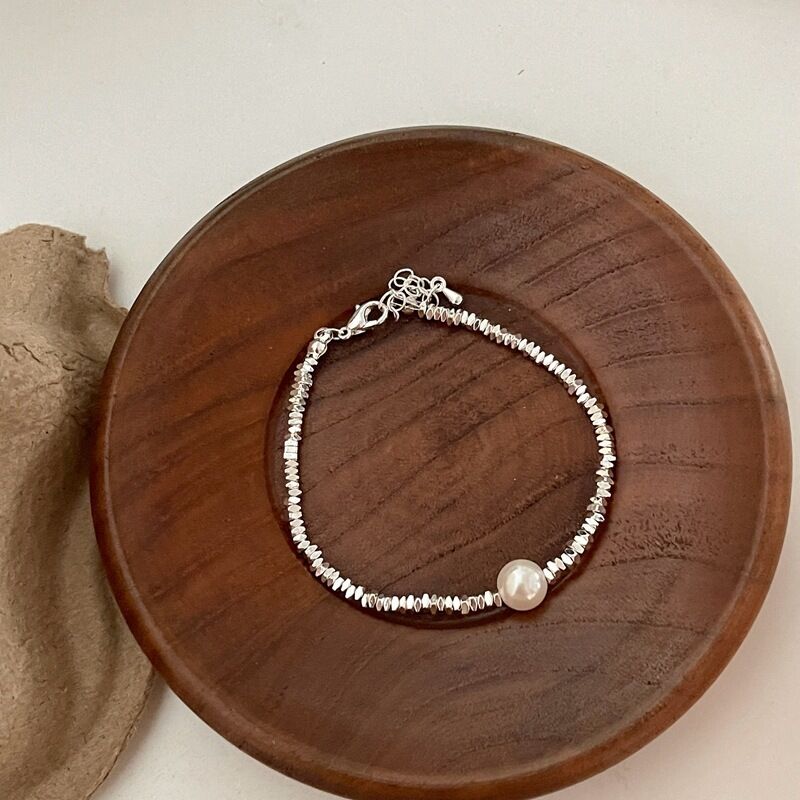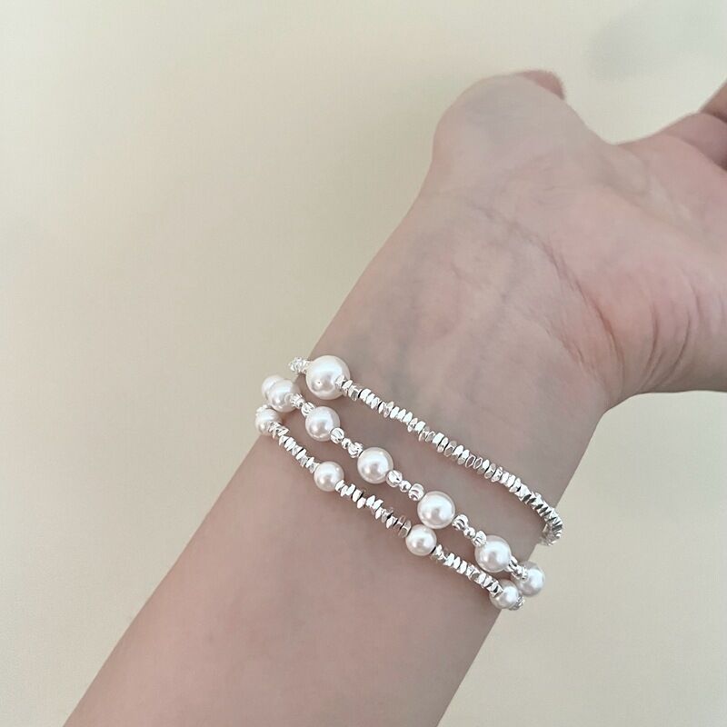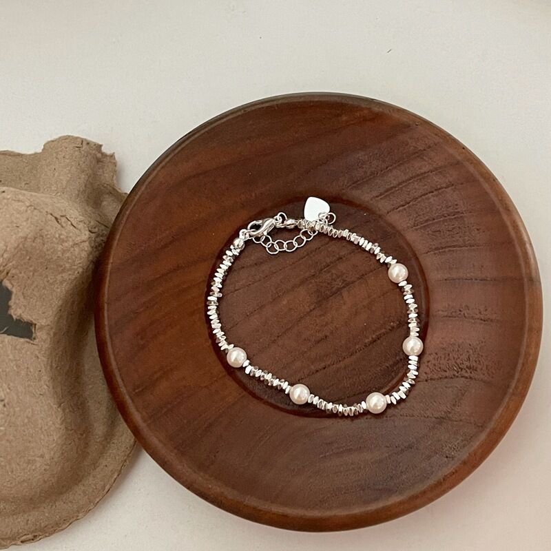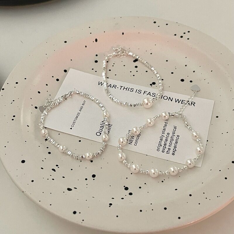手鍊小眾碎銀子拼接珍珠手鏈高級感輕奢風氣質個性簡約百搭手飾手鏈時尚百搭手鏈手環手鐲可調整大小精緻甜美手鍊情侶手繩送禮禮物