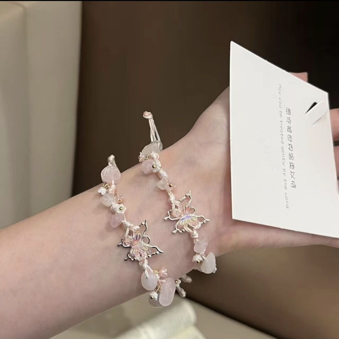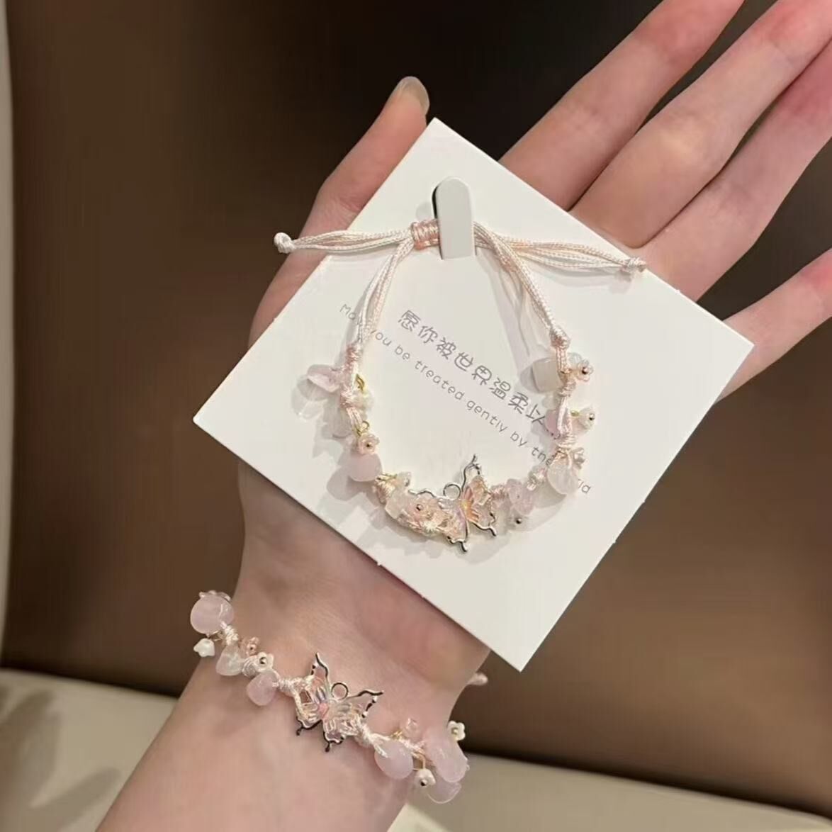 手鍊手工編織手繩蝴蝶新款手編手鏈蝴蝶編織手繩送閨蜜小眾設計手鏈時尚百搭手鏈手環手鐲可調整大小精緻甜美手鍊情侶手繩送禮禮物