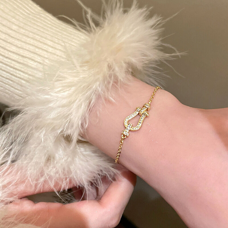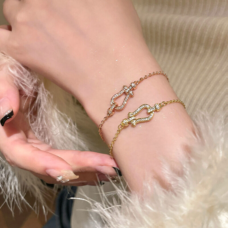手鍊輕奢風馬蹄扣锆石手鏈女小眾設計高級感手飾ins學生閨蜜手鏈時尚百搭手鏈手環手鐲可調整大小精緻甜美手鍊情侶手繩送禮禮物
