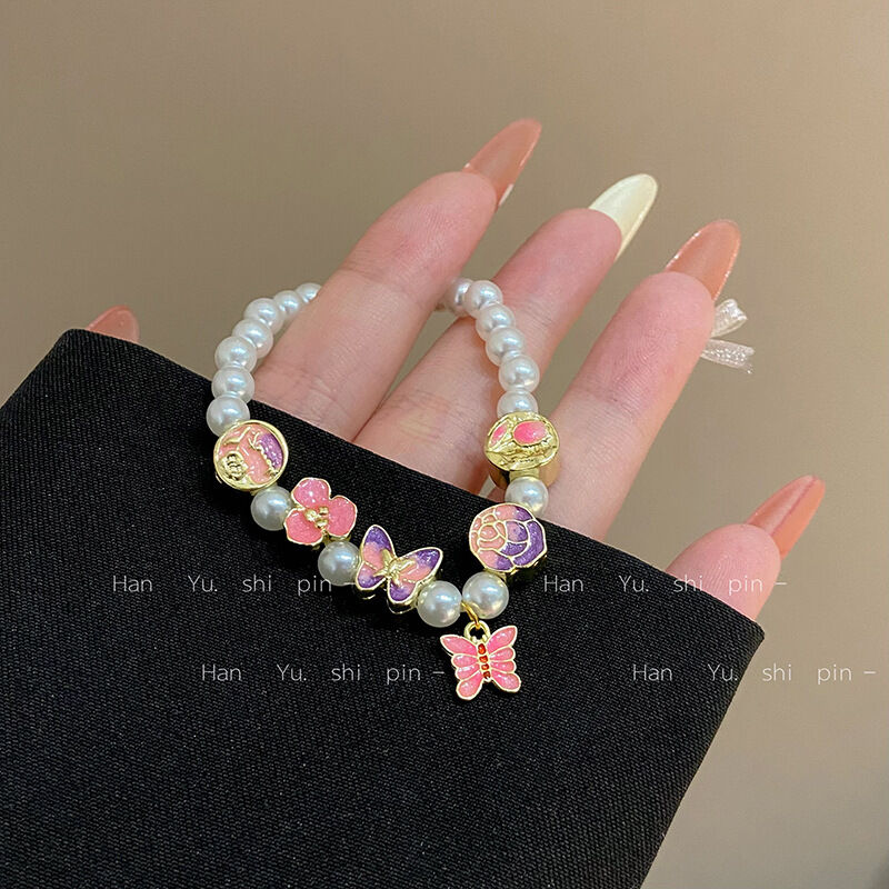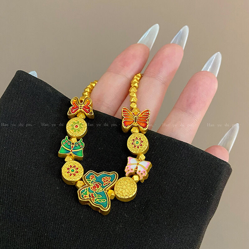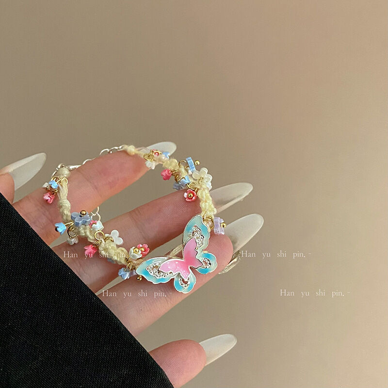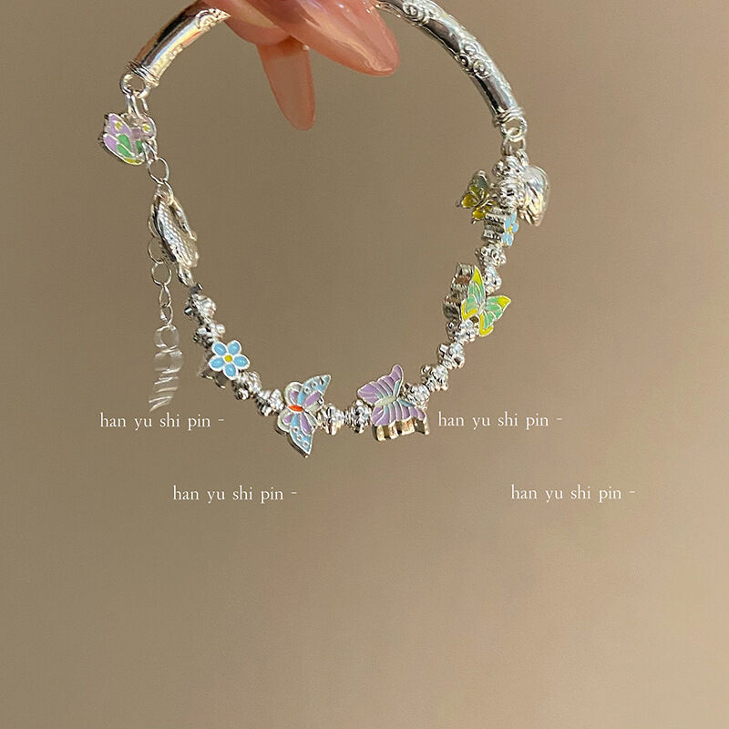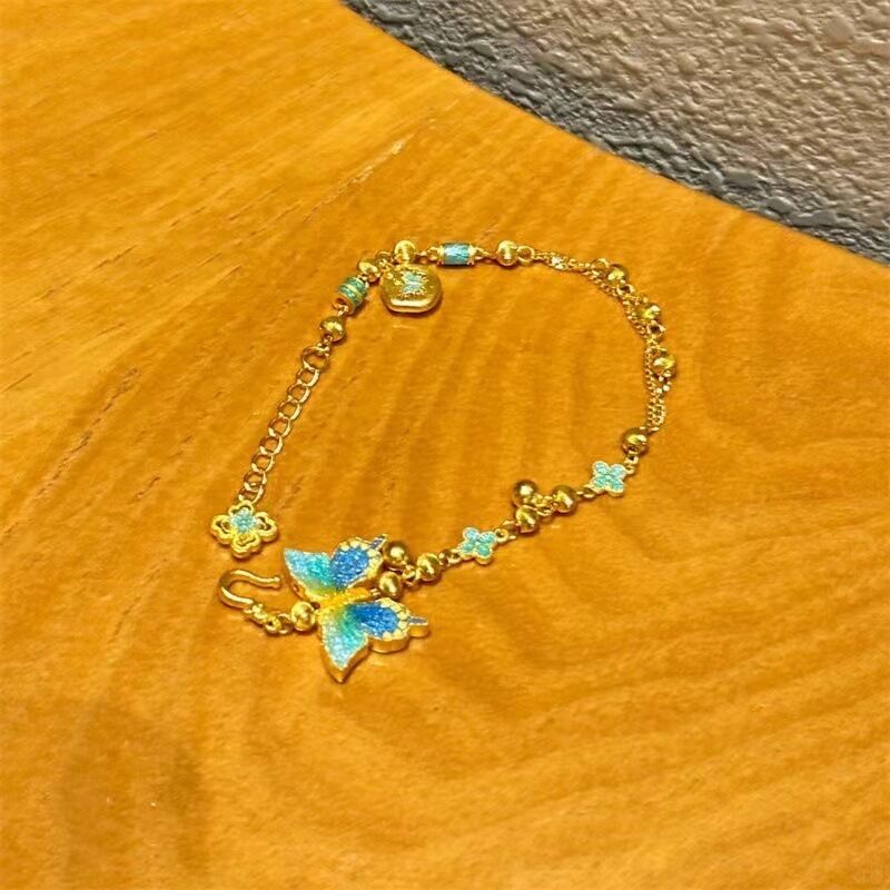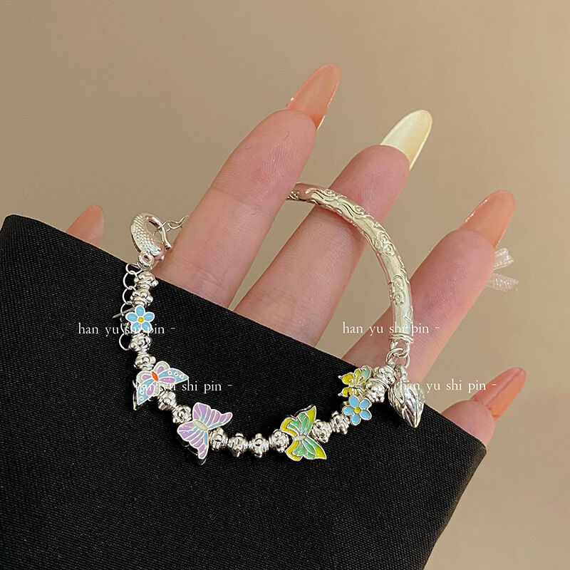 手鍊新中式琺瑯滴油蝴蝶手镯夏季新款甜美彩色花朵半镯手鏈女手鏈時尚百搭手鏈手環手鐲可調整大小精緻甜美手鍊情侶手繩送禮禮物