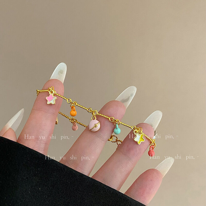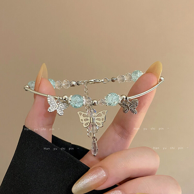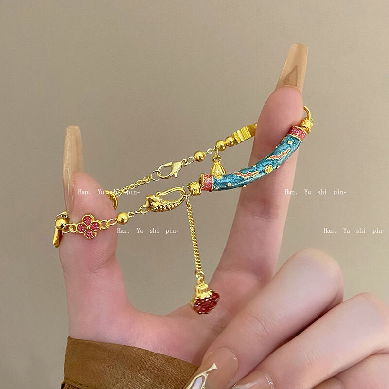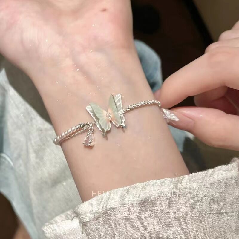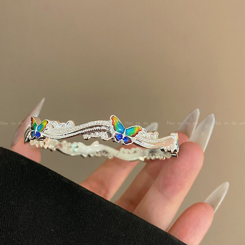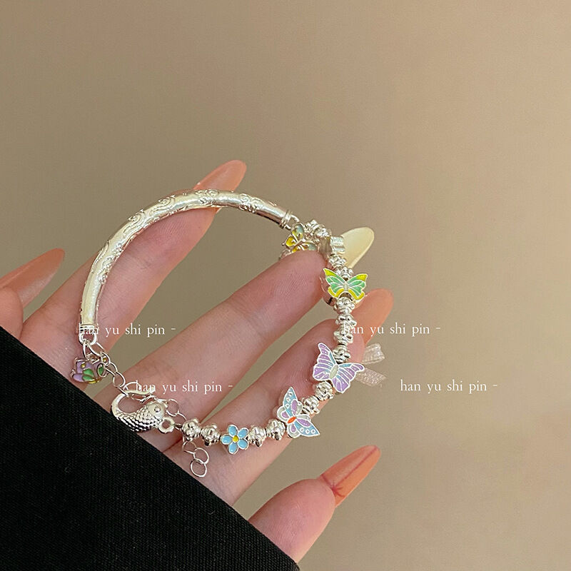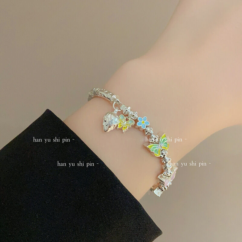 手鍊新中式琺瑯滴油蝴蝶手镯夏季新款甜美彩色花朵半镯手鏈女手鏈時尚百搭手鏈手環手鐲可調整大小精緻甜美手鍊情侶手繩送禮禮物