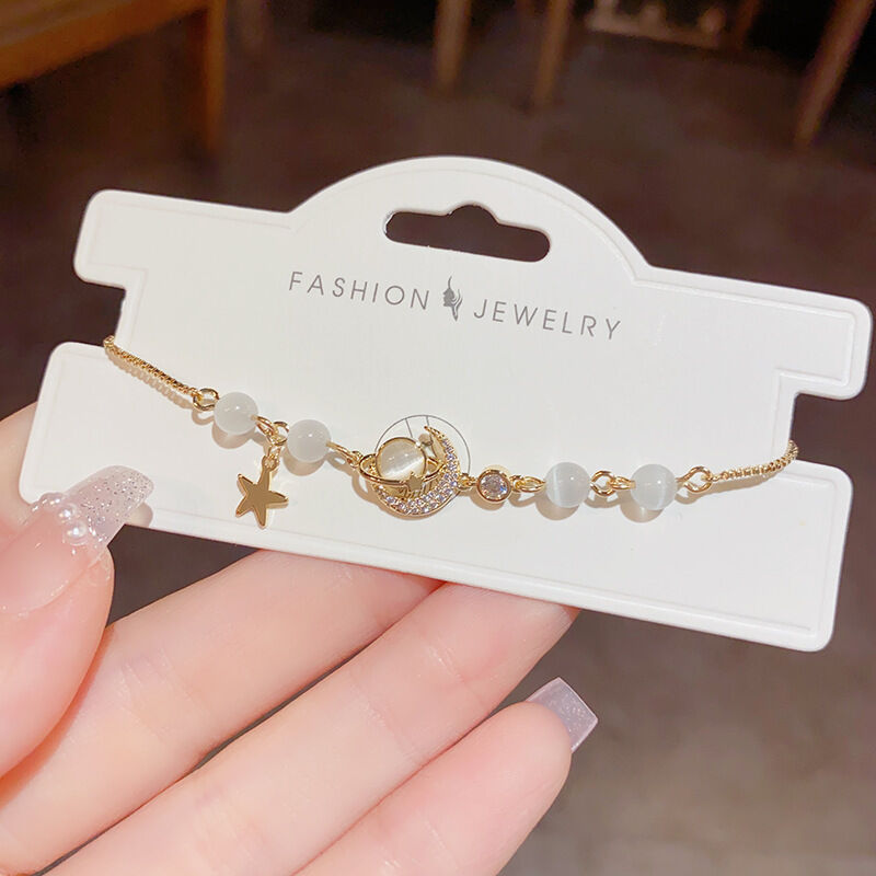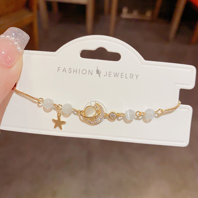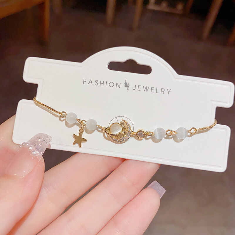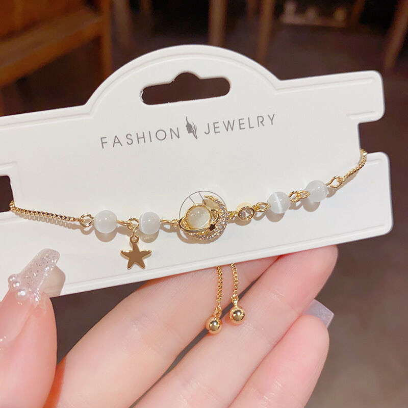 手鍊甜美冷淡風星球月亮貓眼石抽拉式手鏈女 時尚高級感手環 手鏈時尚百搭手鏈手環手鐲可調整大小精緻甜美手鍊情侶手繩送禮禮物
