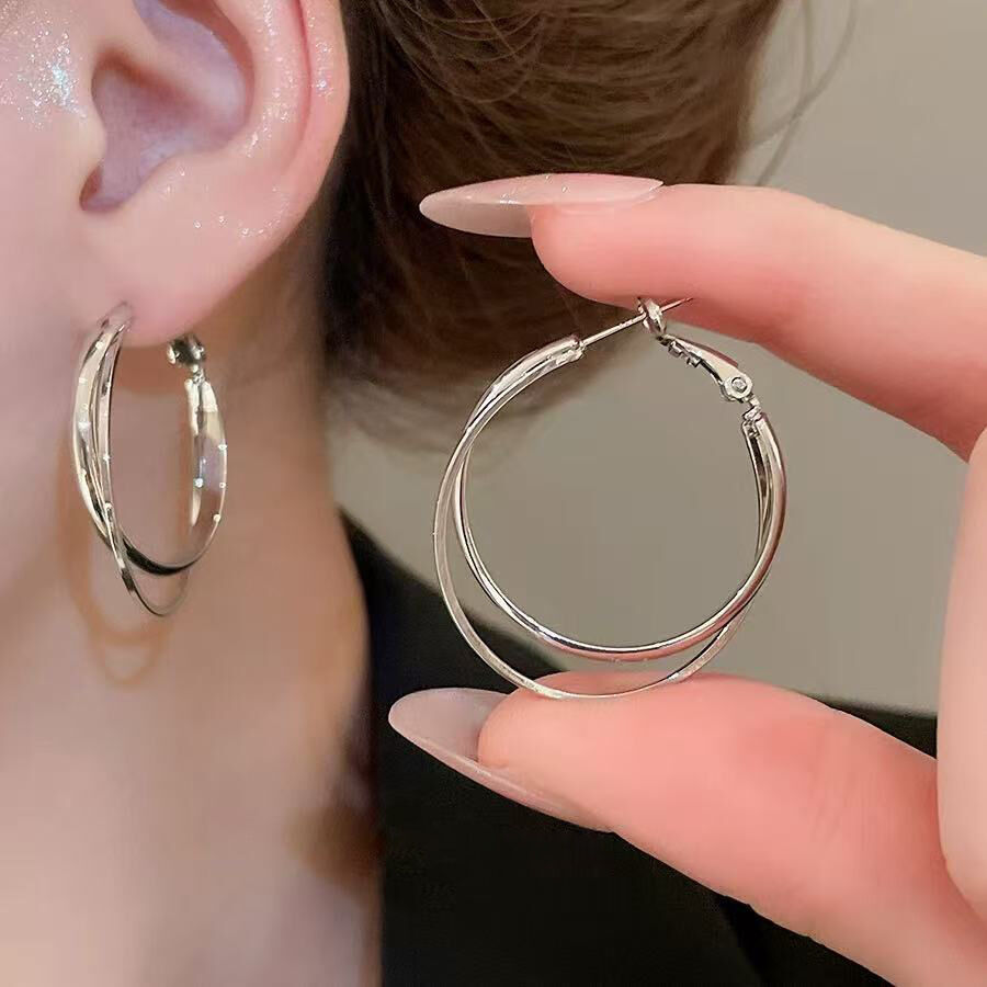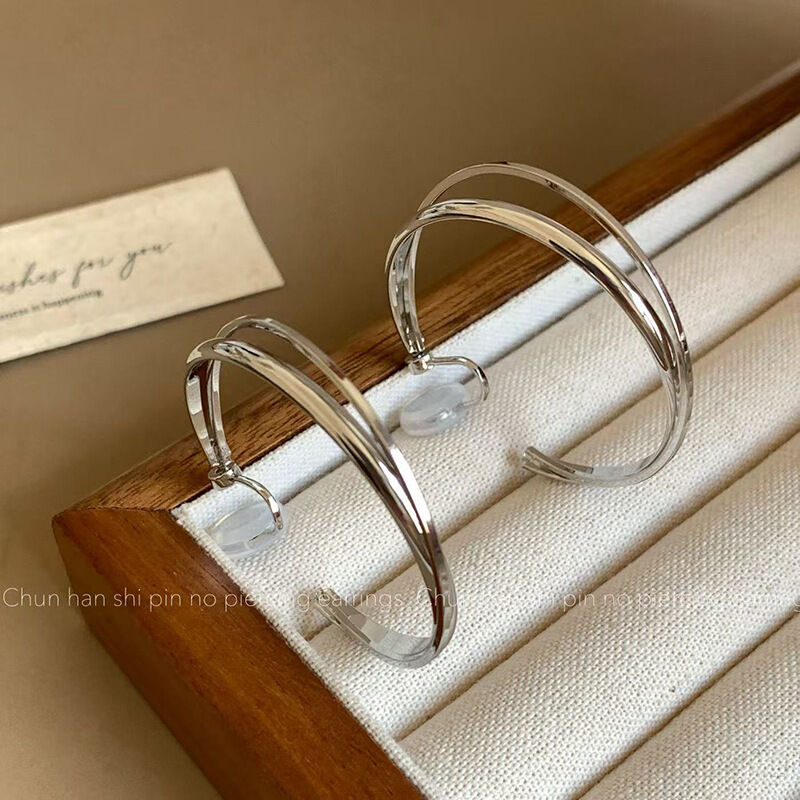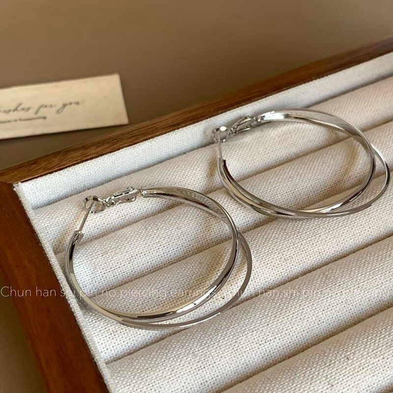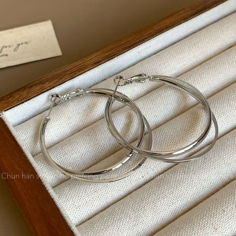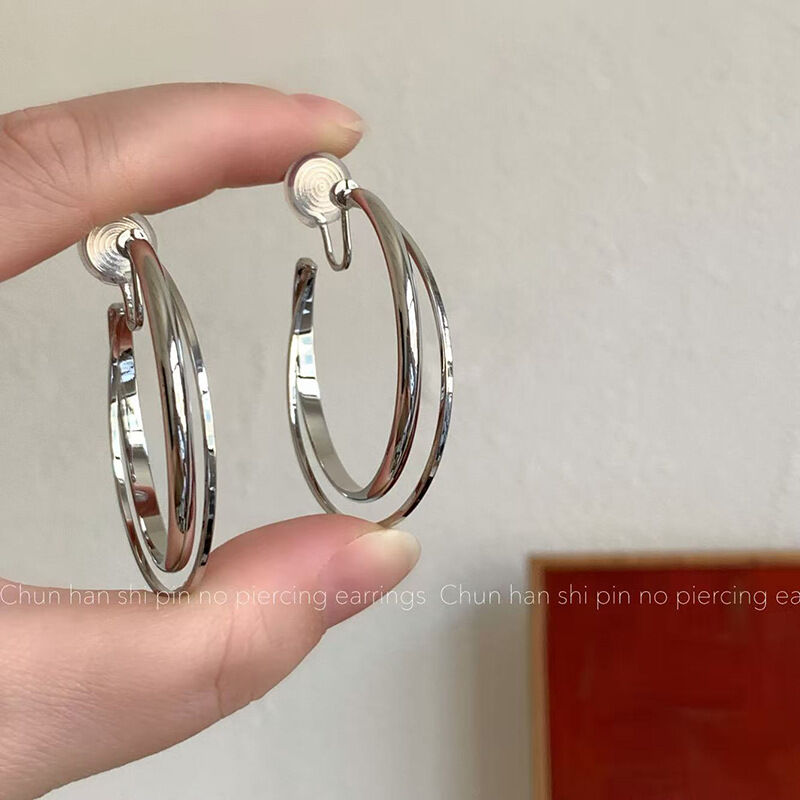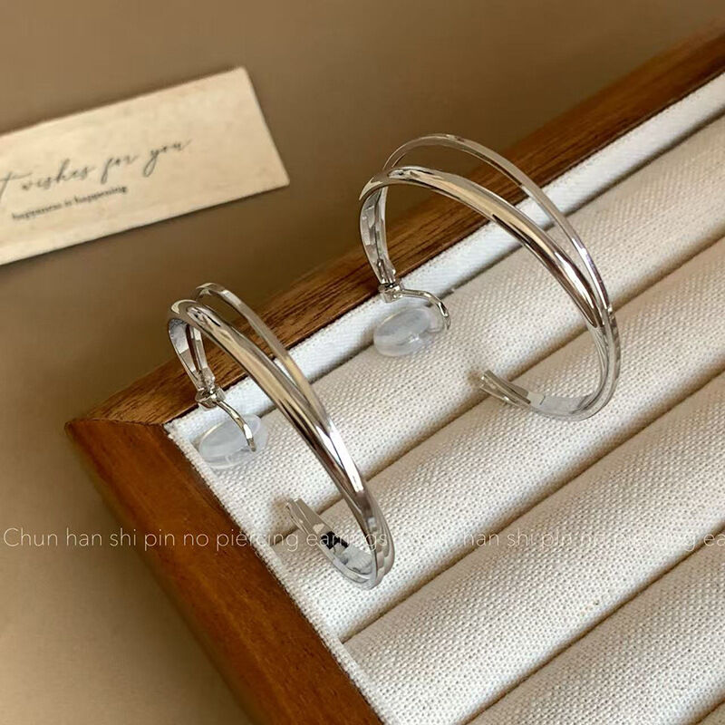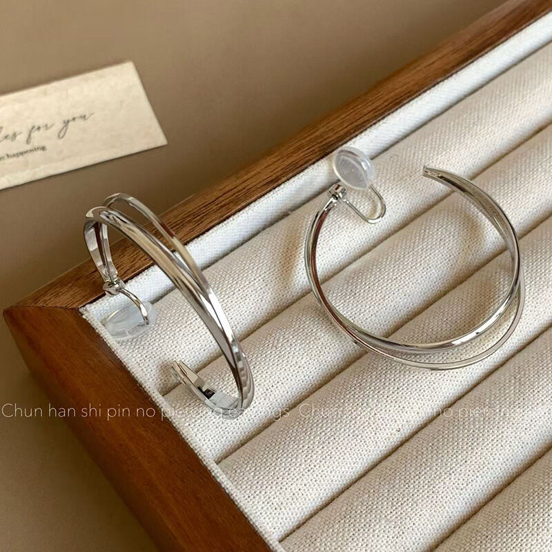 耳環金屬雙層圓圈耳環女輕奢高級感氣質耳圈蚊香盤耳夾無耳洞素圈耳飾耳環耳釘耳飾女生耳環法式耳環流行百搭耳釘生日禮物貼耳耳環