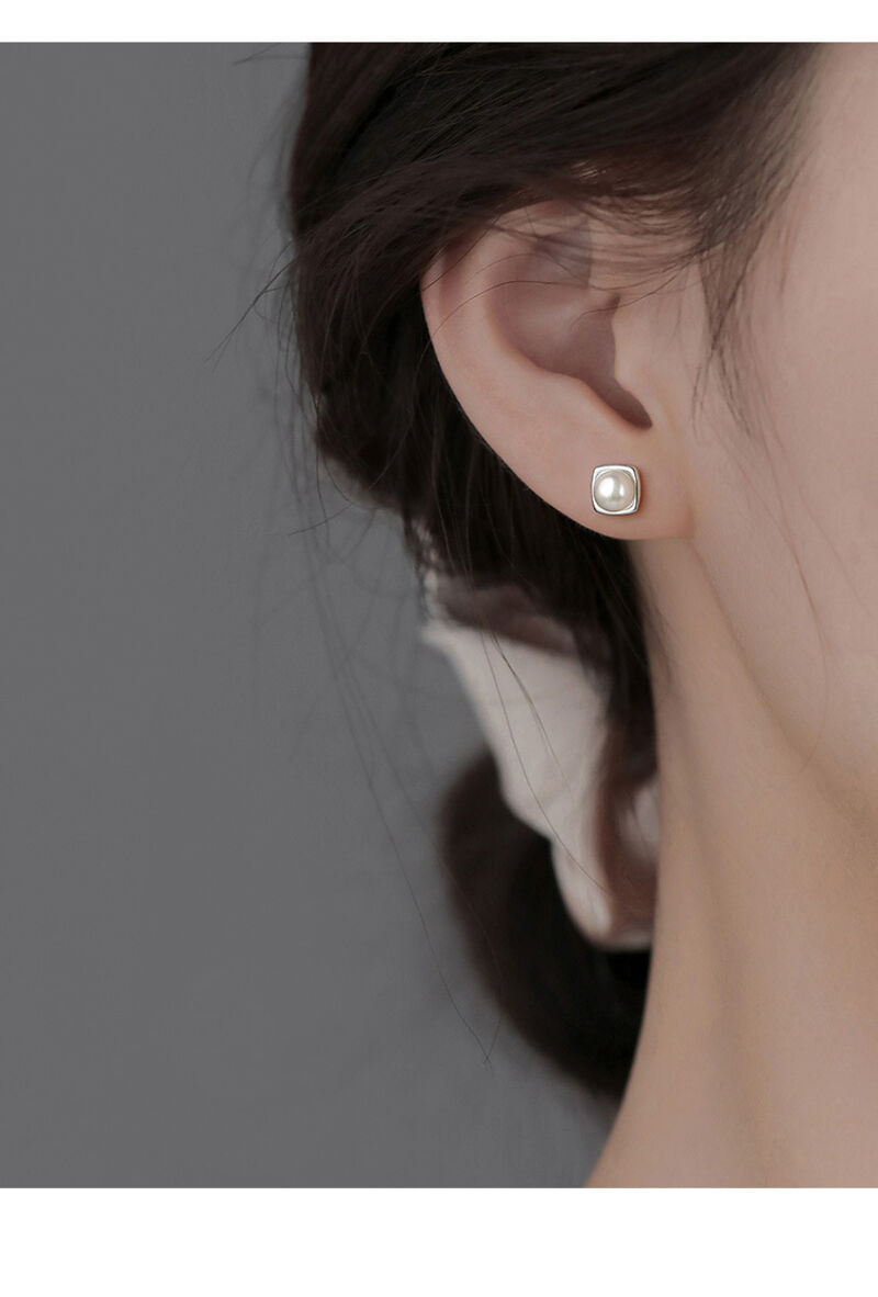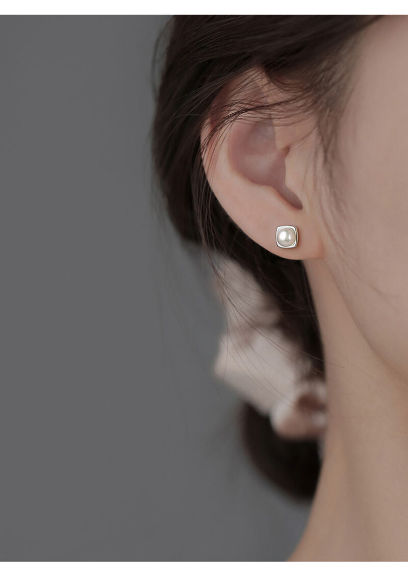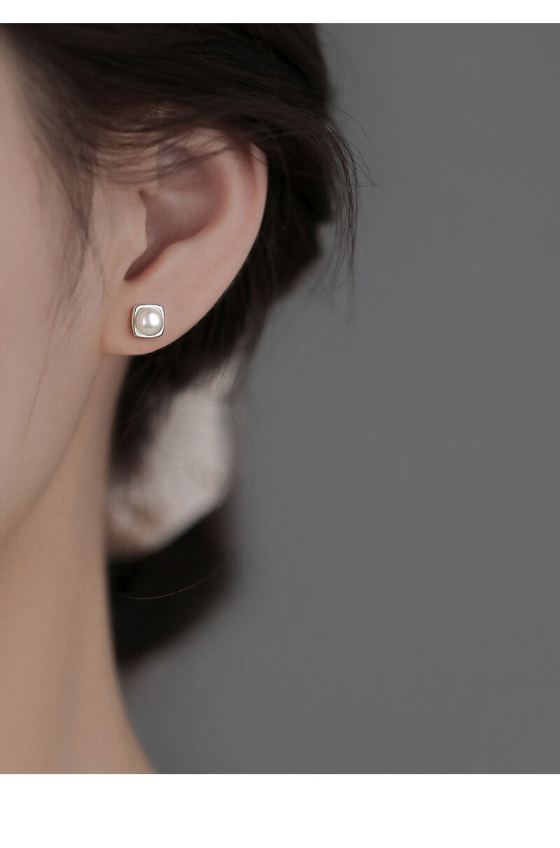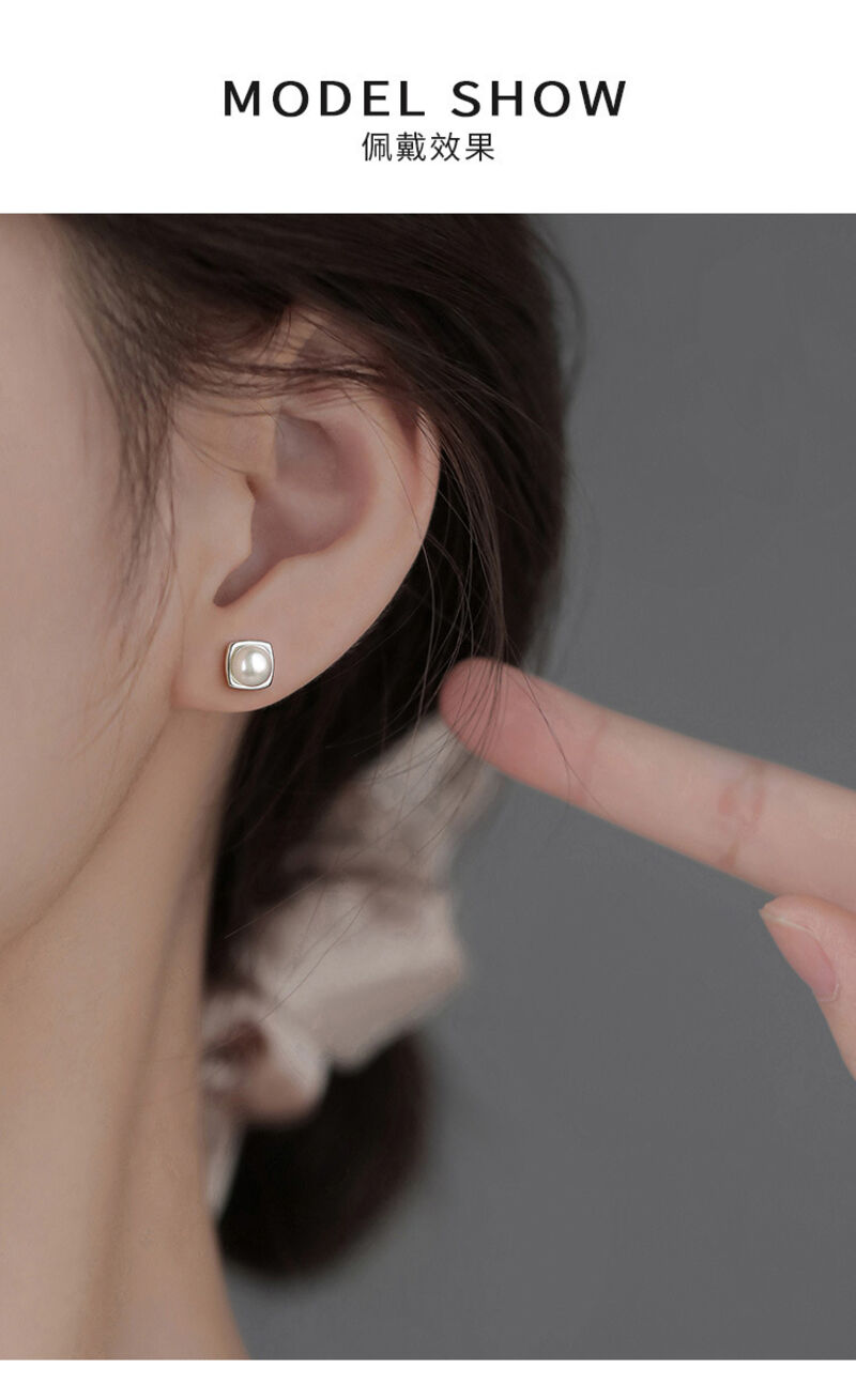 耳環純銀珍珠耳釘新款方形耳環小眾輕奢高級感女耳飾 耳環耳釘耳飾女生耳環法式耳環流行百搭耳釘生日禮物貼耳耳環