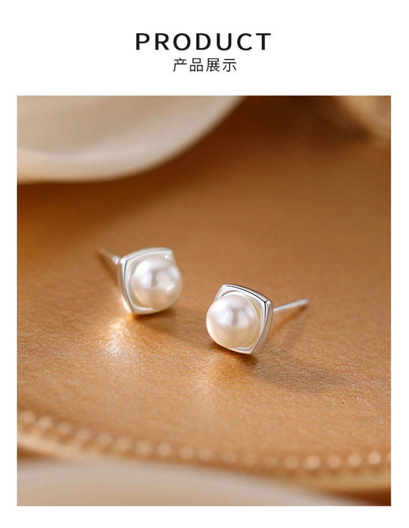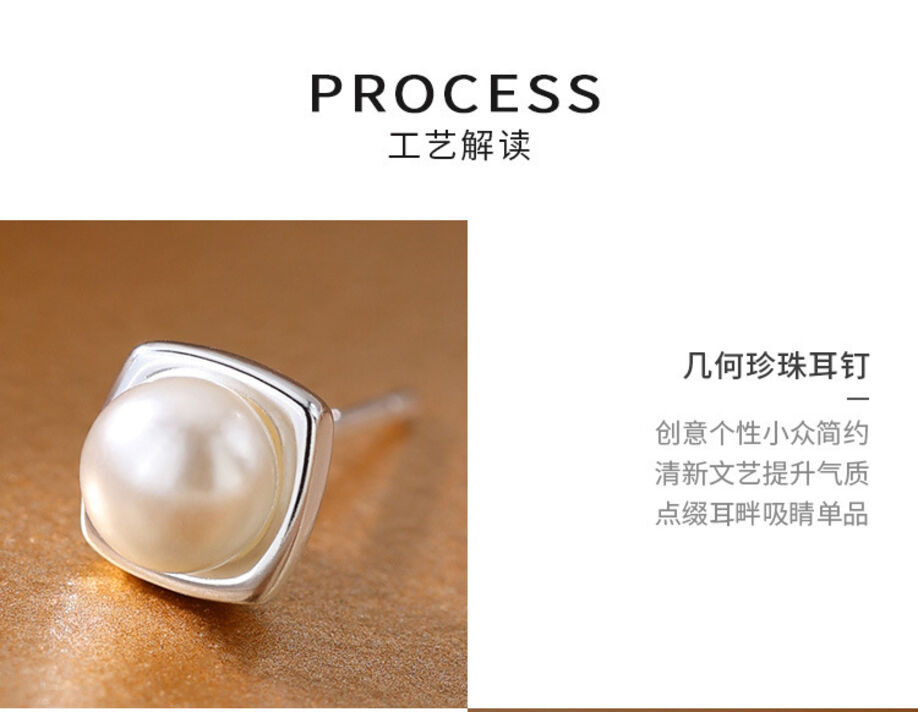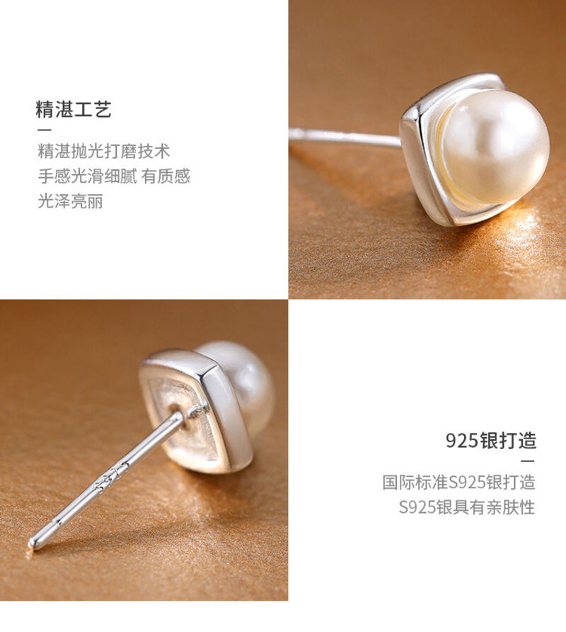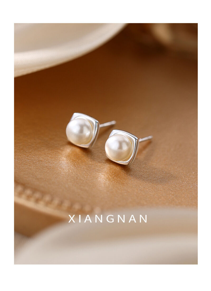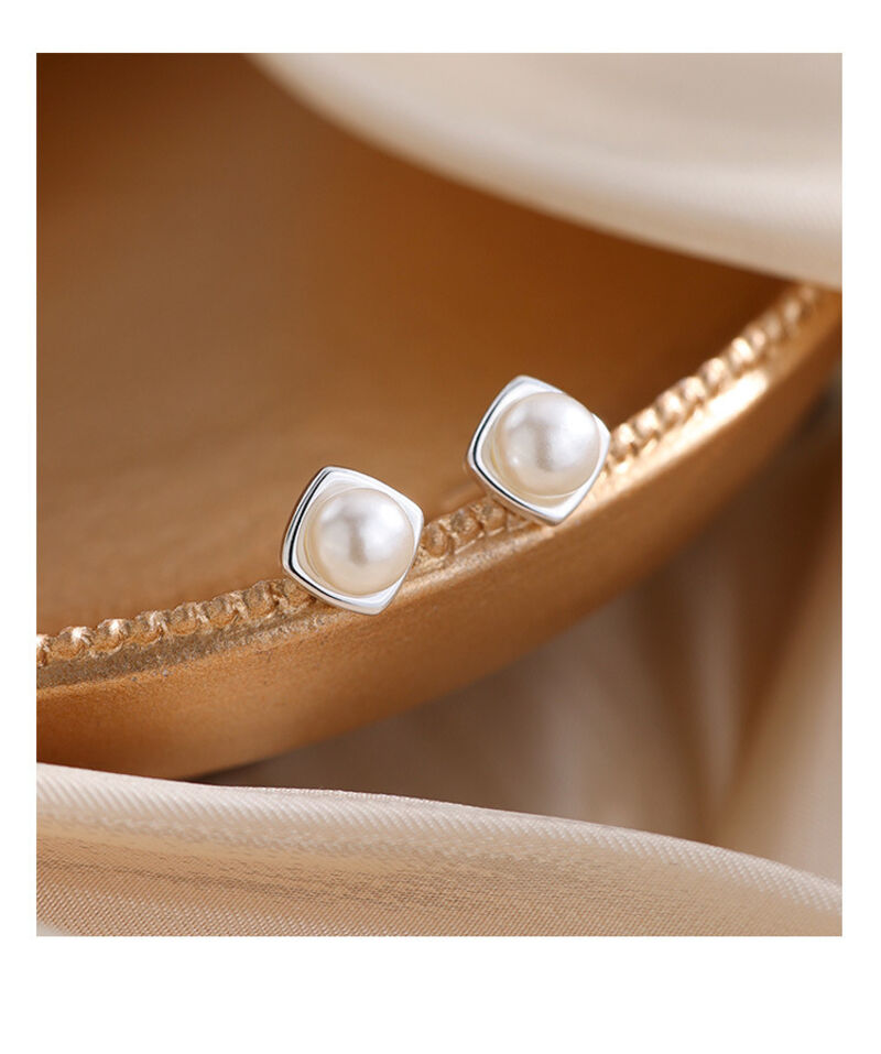 耳環純銀珍珠耳釘新款方形耳環小眾輕奢高級感女耳飾 耳環耳釘耳飾女生耳環法式耳環流行百搭耳釘生日禮物貼耳耳環