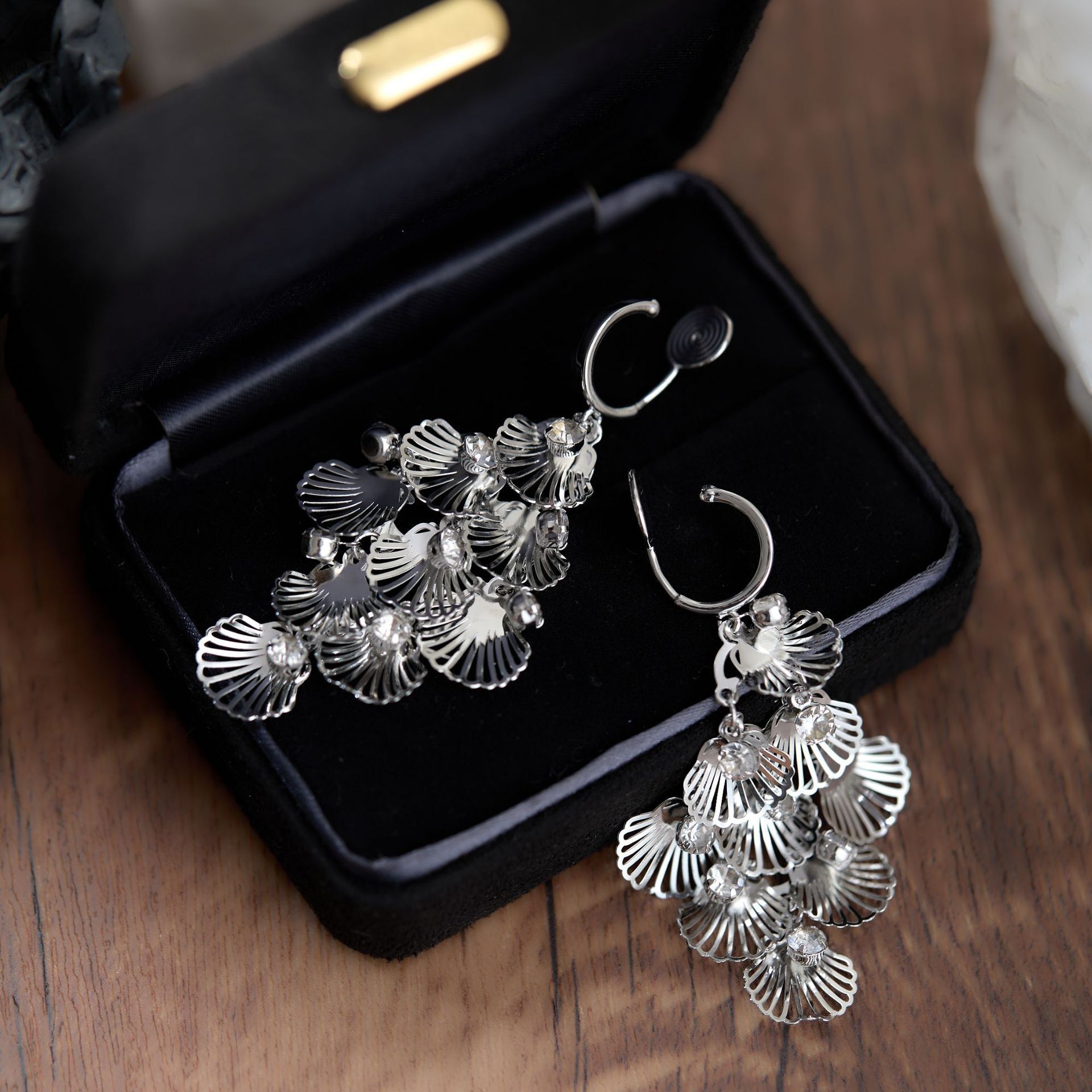 耳環火樹銀花法式浪漫貝殼輕奢氣質精致小眾耳環耳釘無耳洞耳夾女耳環耳釘耳飾女生耳環法式耳環流行百搭耳釘生日禮物貼耳耳環