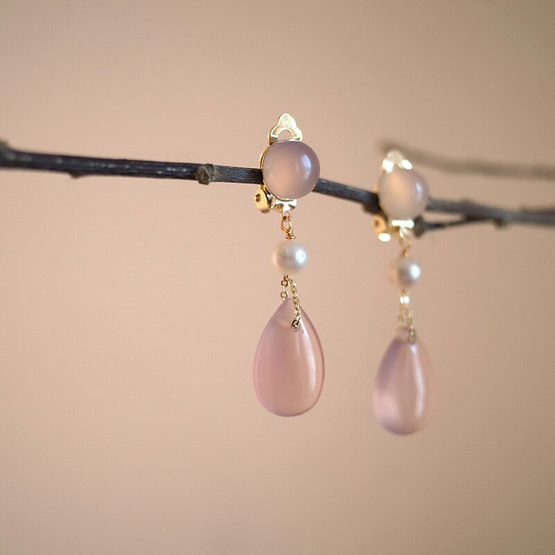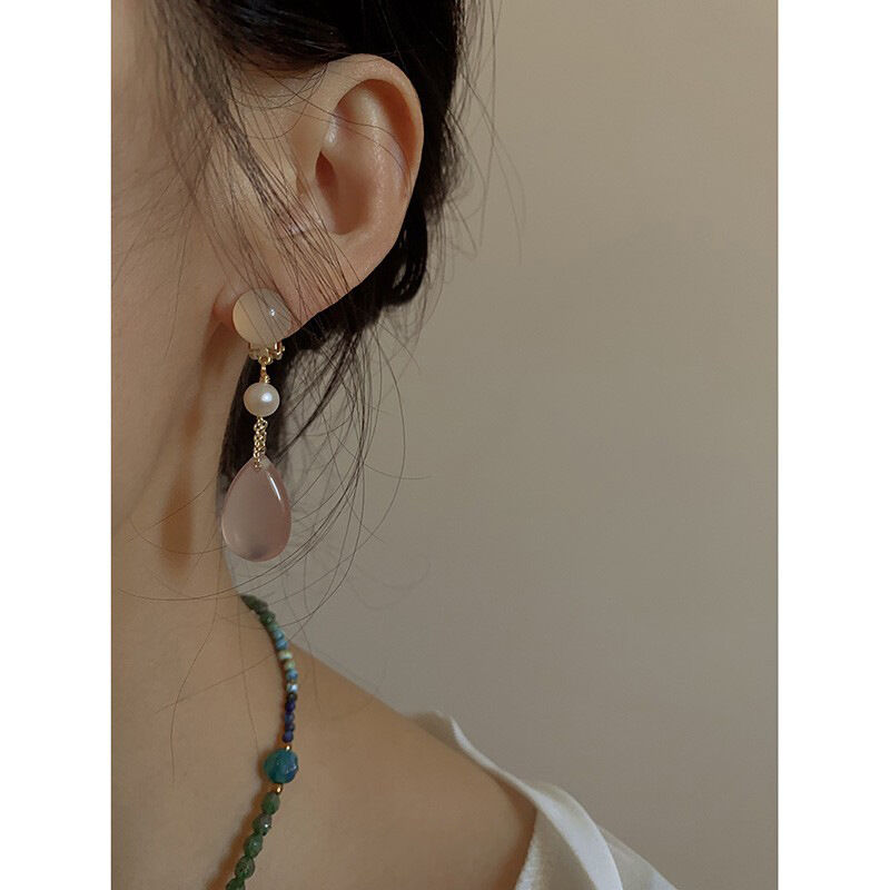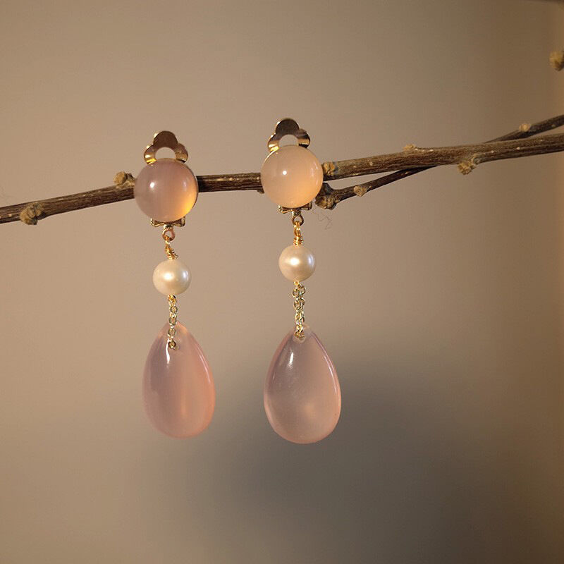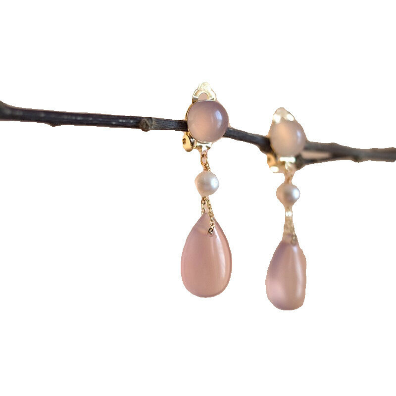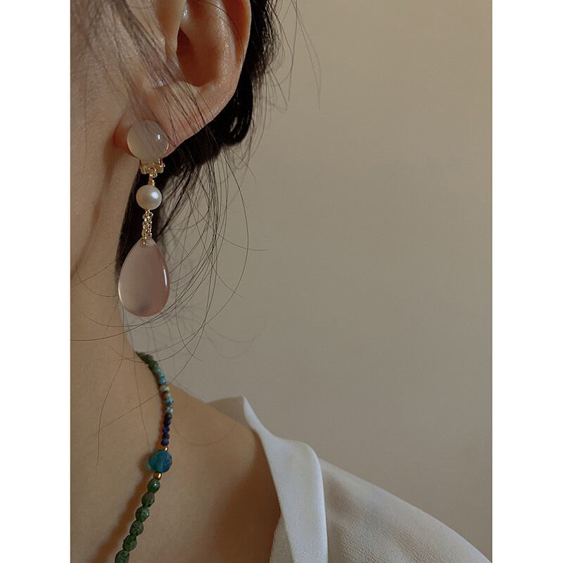 耳環胭脂新中式氣質中國風粉色水滴溫柔耳環耳夾漢服旗袍配飾耳環耳釘耳飾女生耳環法式耳環流行百搭耳釘生日禮物貼耳耳環