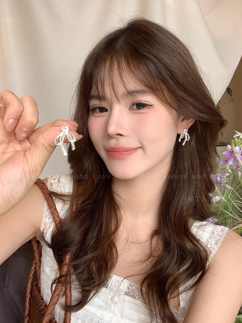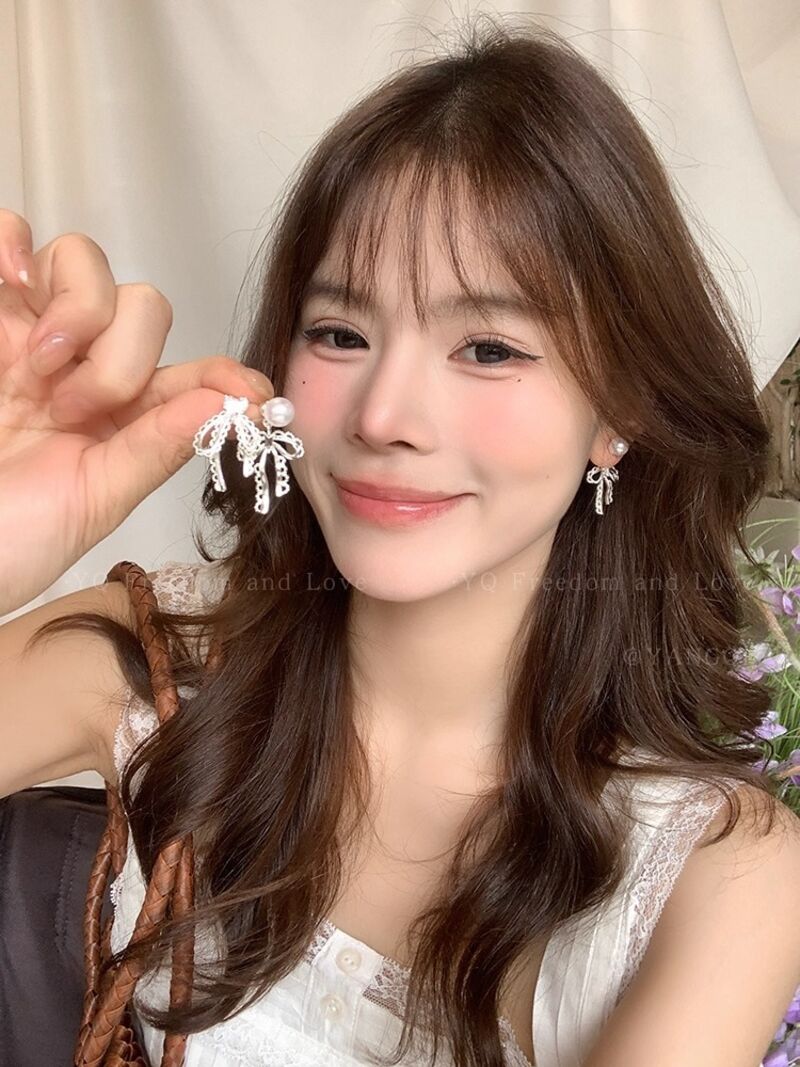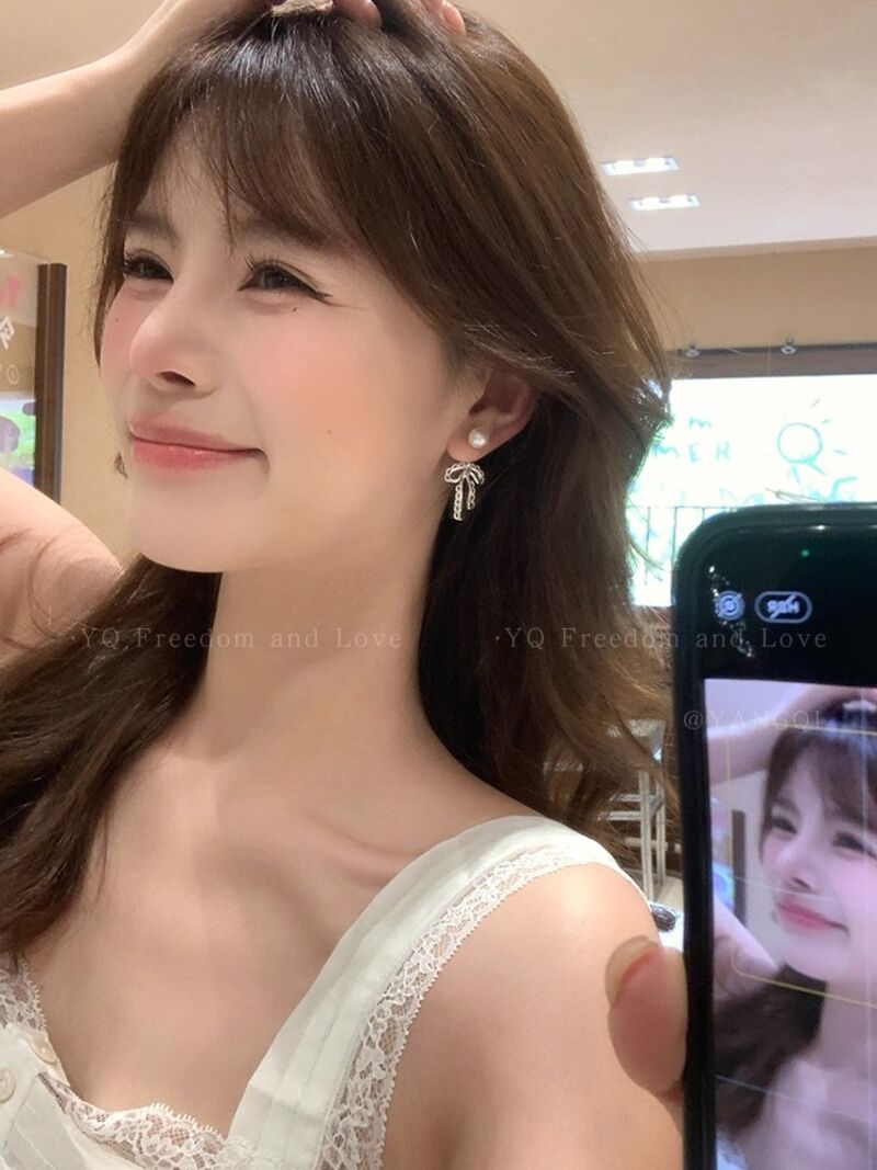 耳環蕾絲花邊蝴蝶結珍珠耳環女輕奢高級感銀針耳釘後掛式小眾精致耳飾耳環耳釘耳飾女生耳環法式耳環流行百搭耳釘生日禮物貼耳耳環