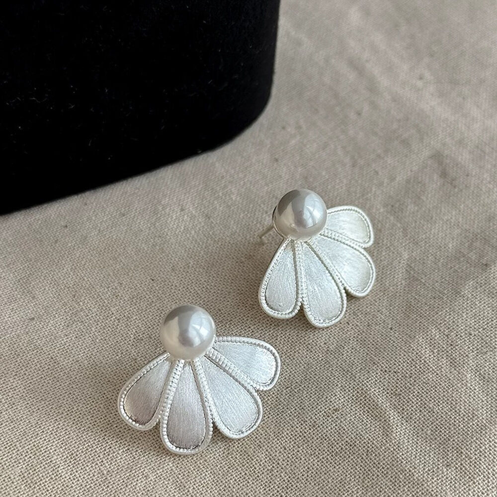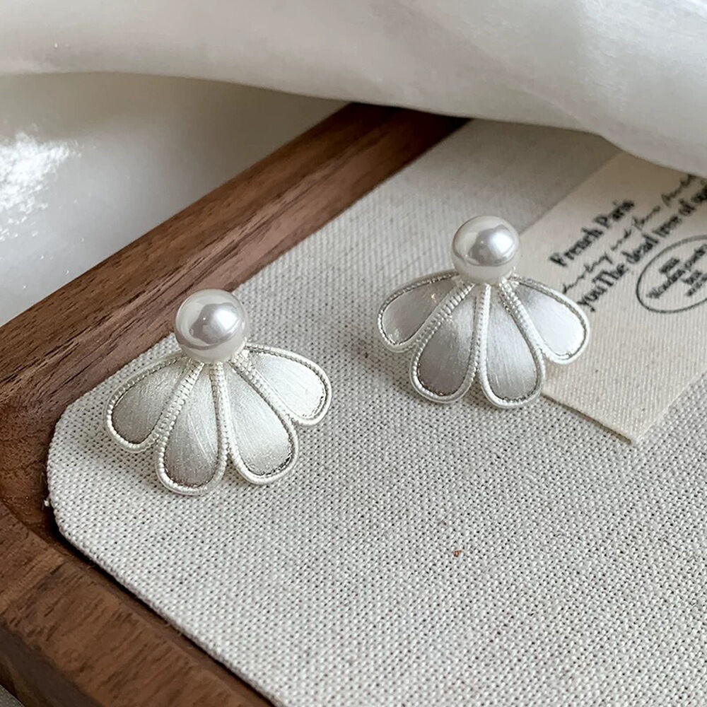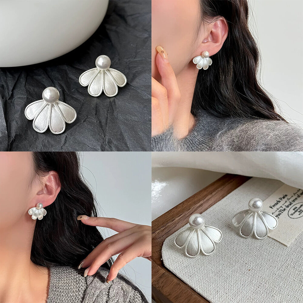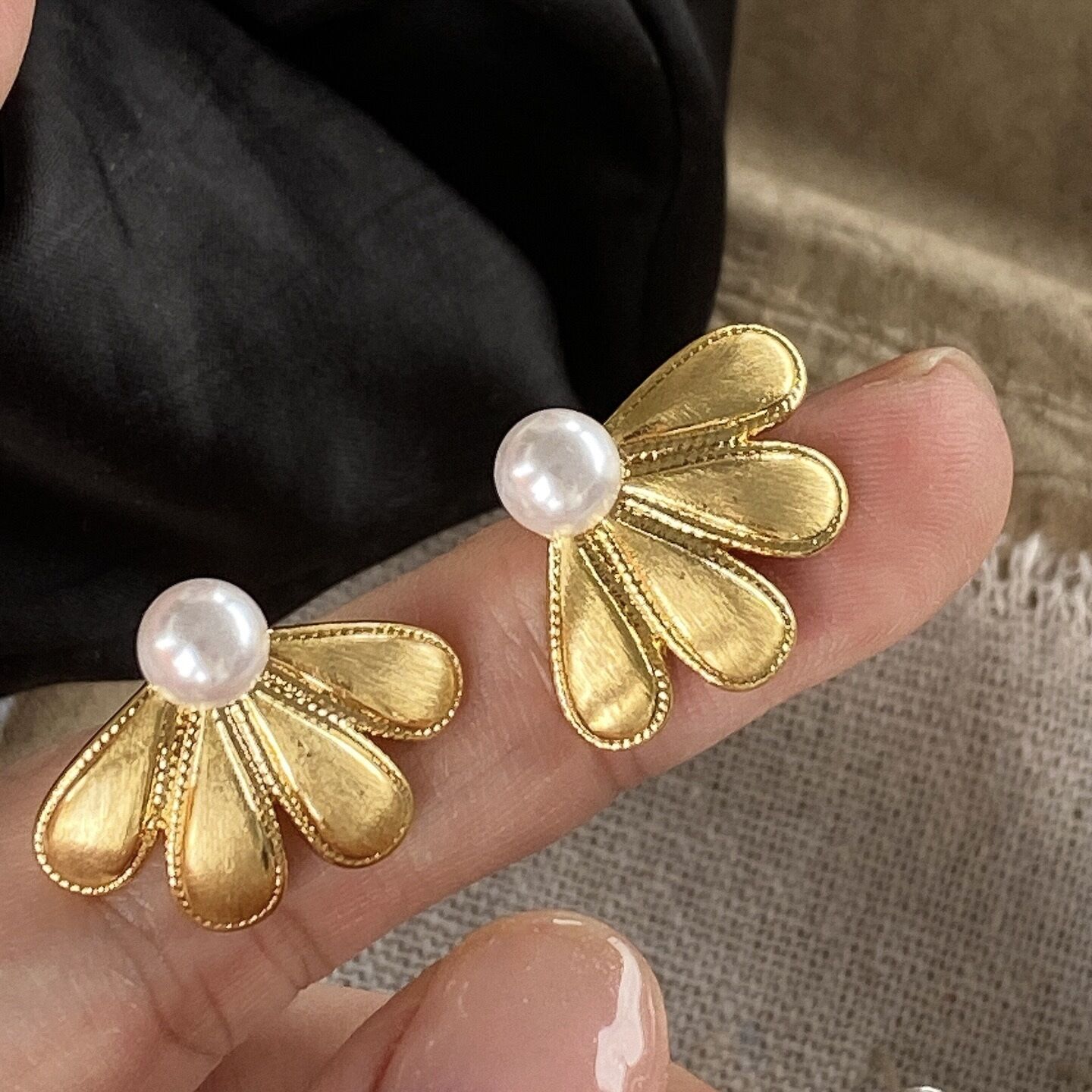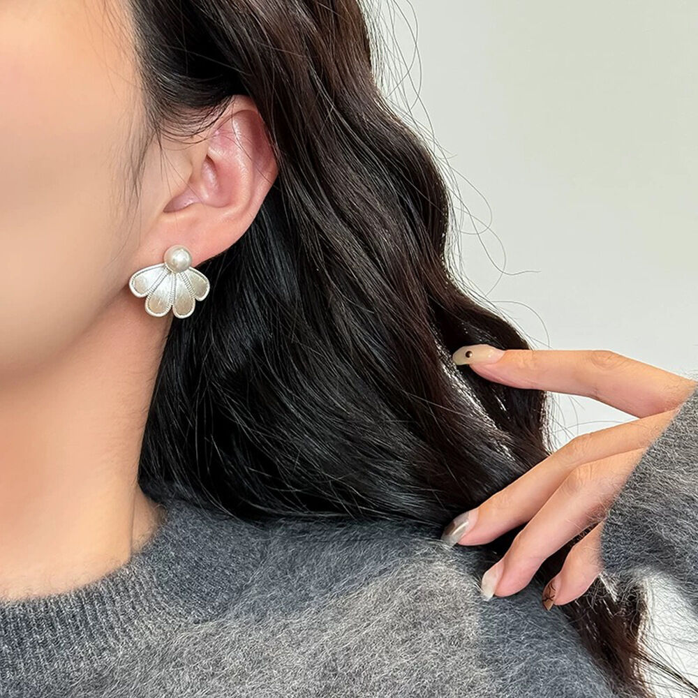買一送一耳環新中式簡約百搭高級感輕奢氣質拉絲花瓣耳釘小眾設計感珍珠耳釘耳飾女生耳環法式耳環流行百搭耳釘生日禮物貼耳耳環