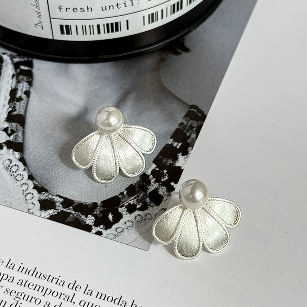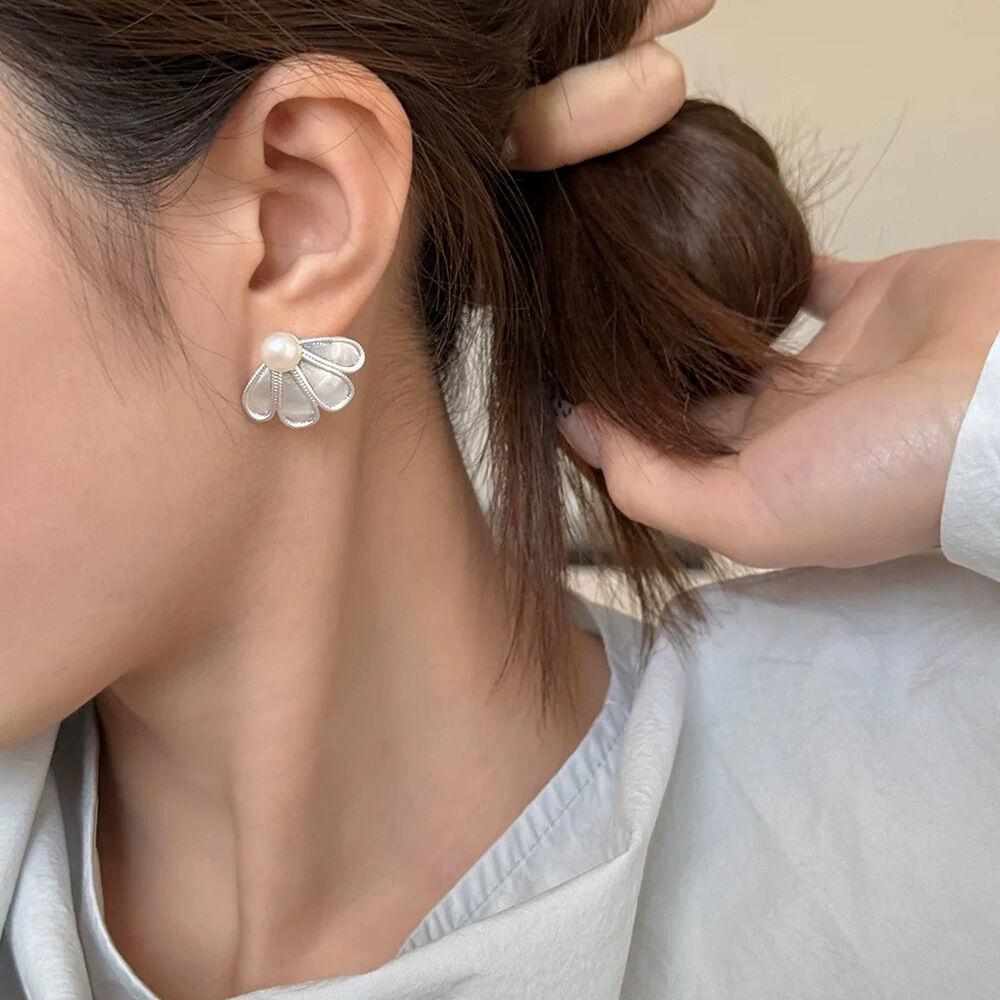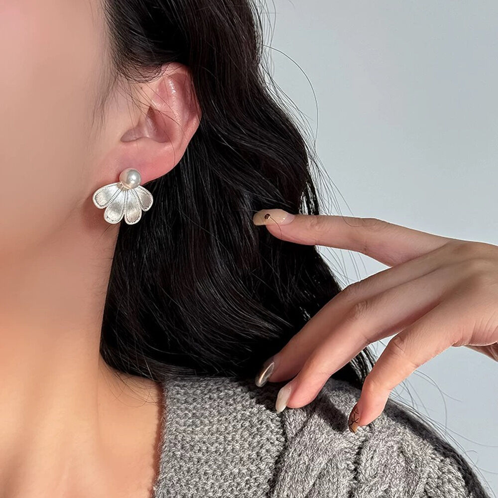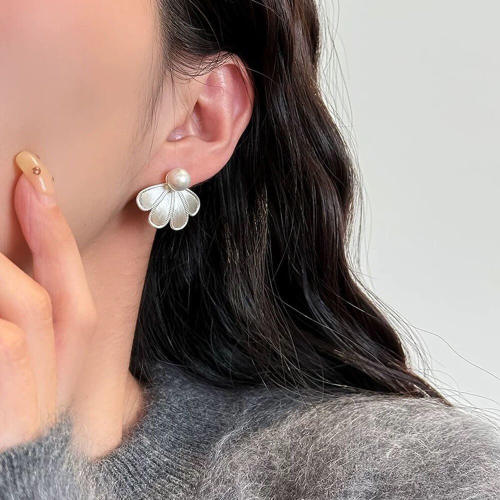 買一送一耳環新中式簡約百搭高級感輕奢氣質拉絲花瓣耳釘小眾設計感珍珠耳釘耳飾女生耳環法式耳環流行百搭耳釘生日禮物貼耳耳環