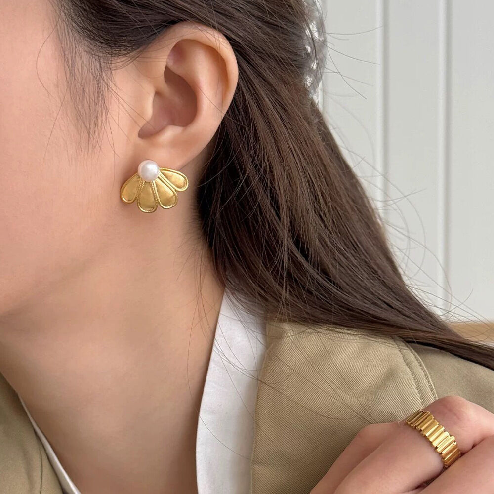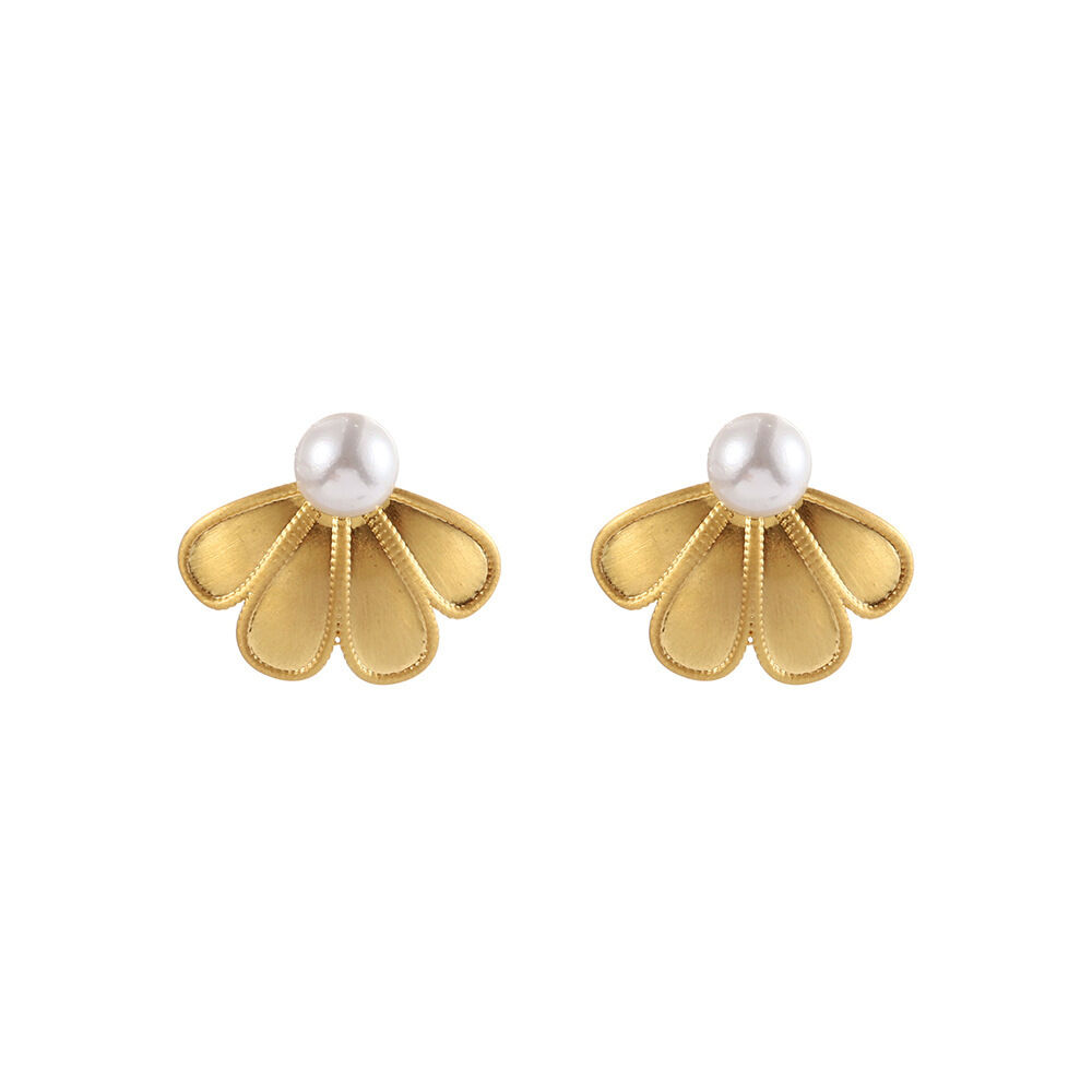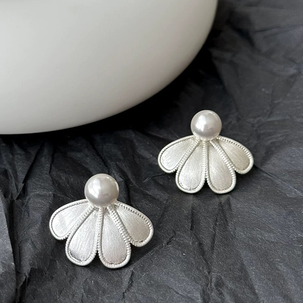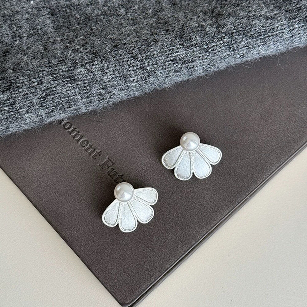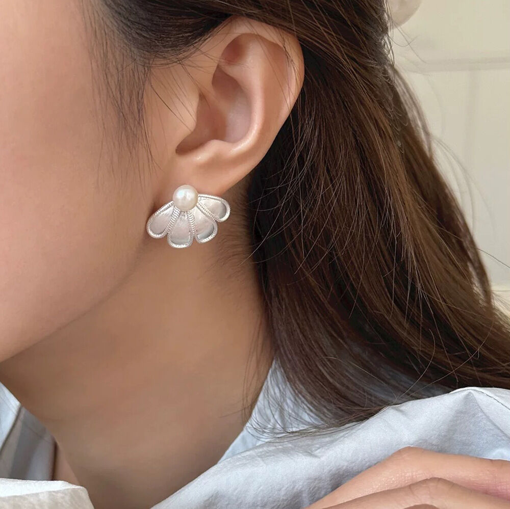 買一送一耳環新中式簡約百搭高級感輕奢氣質拉絲花瓣耳釘小眾設計感珍珠耳釘耳飾女生耳環法式耳環流行百搭耳釘生日禮物貼耳耳環