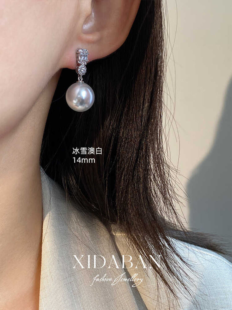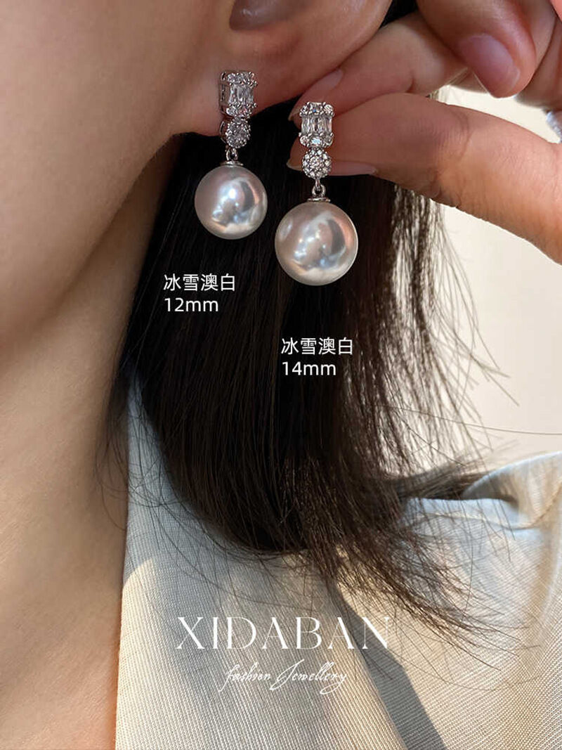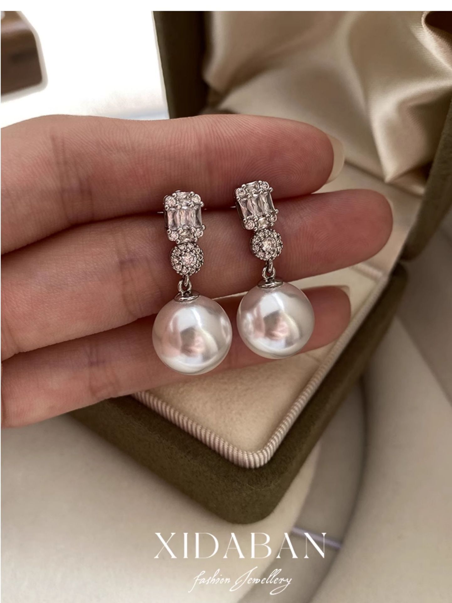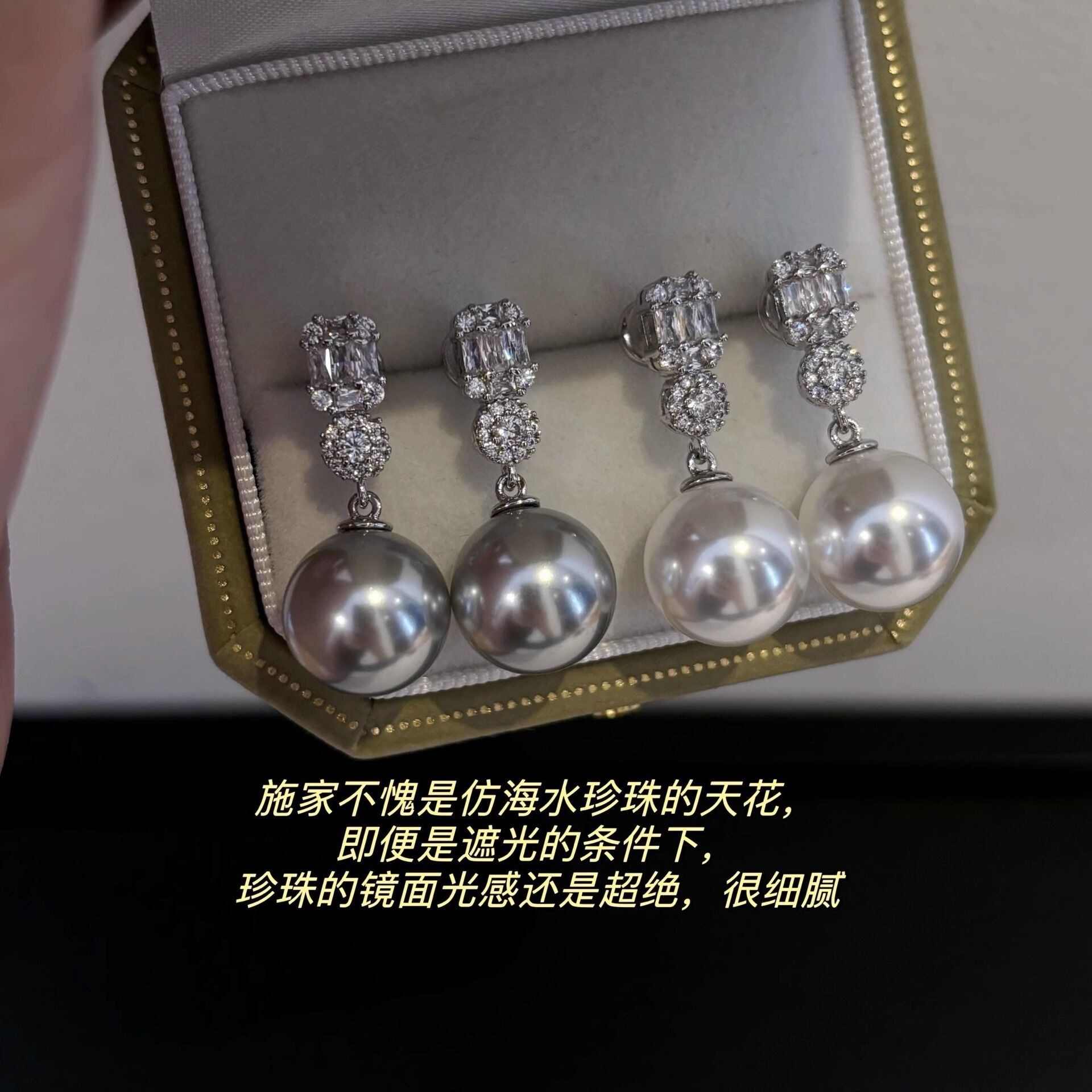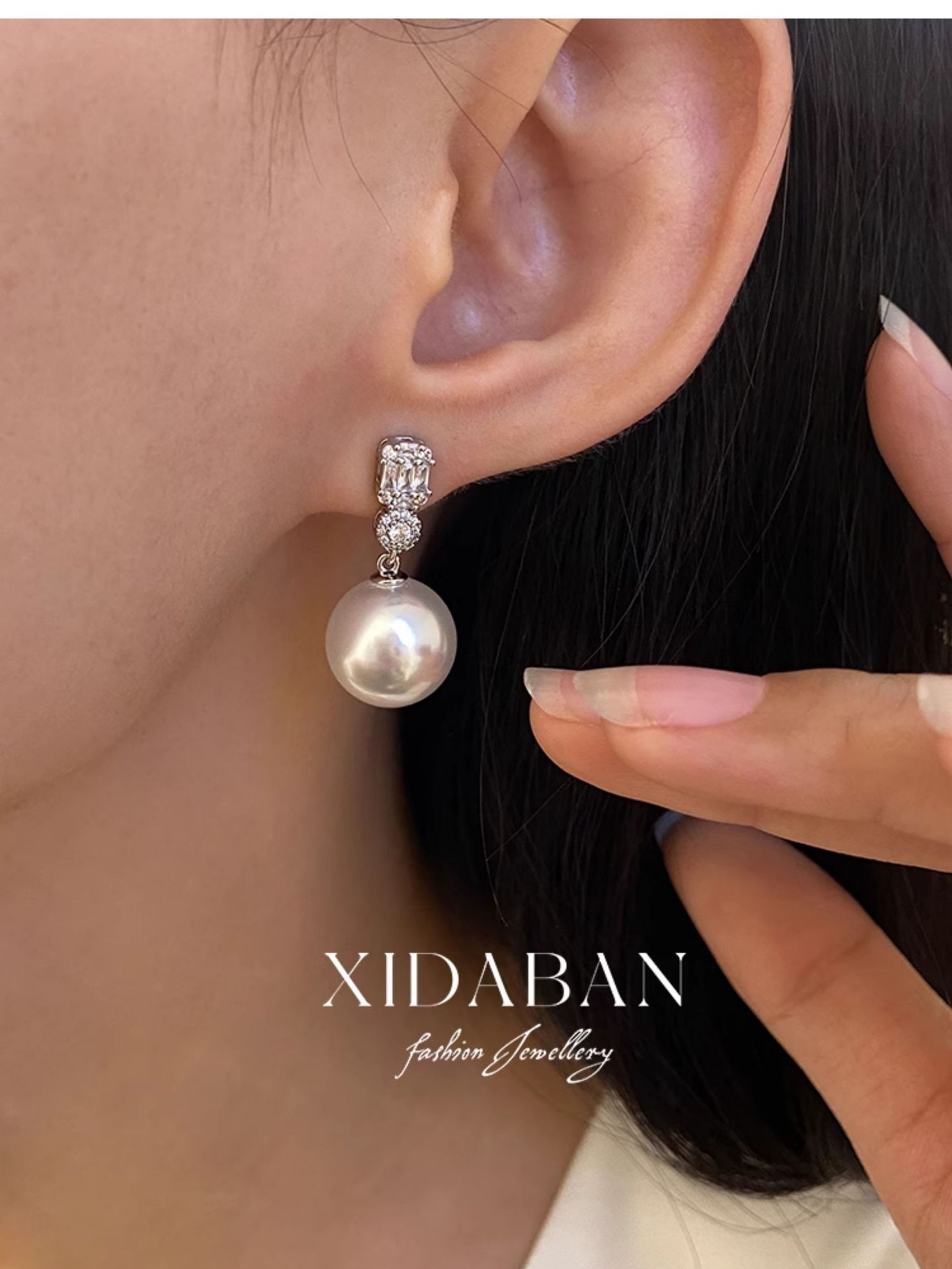 耳環戴妃款施家珍珠s銀耳釘女輕奢高級感人造澳白珍珠耳飾耳環耳釘耳飾女生耳環法式耳環流行百搭耳釘生日禮物貼耳耳環