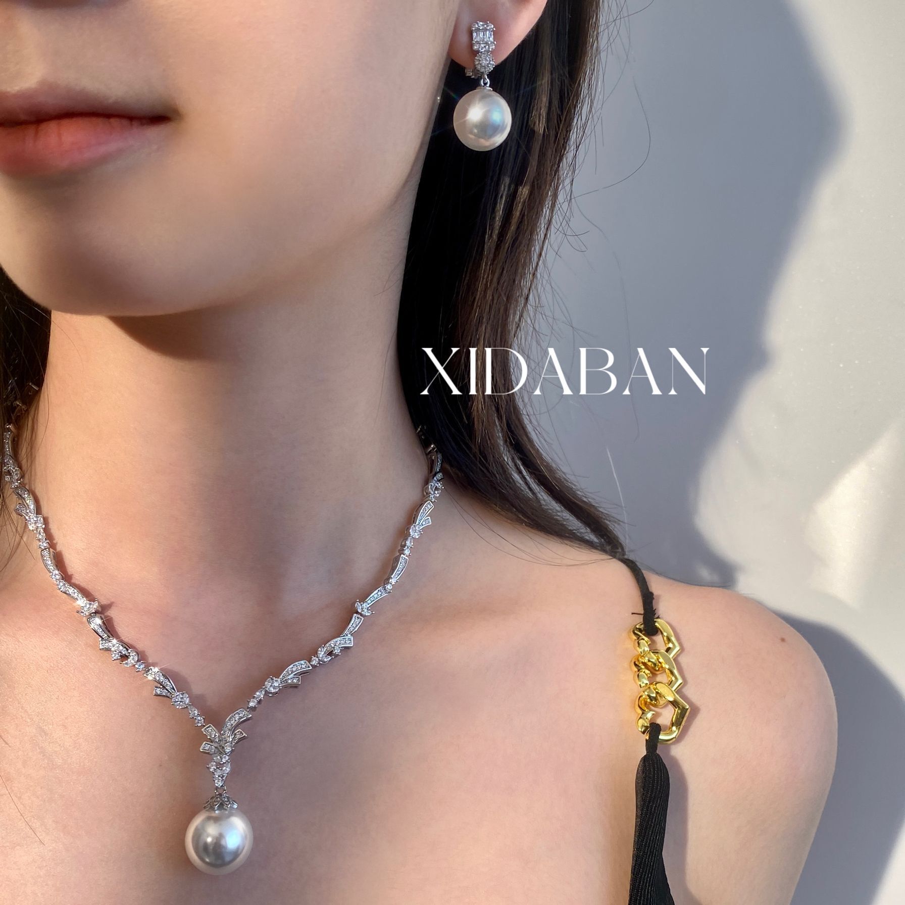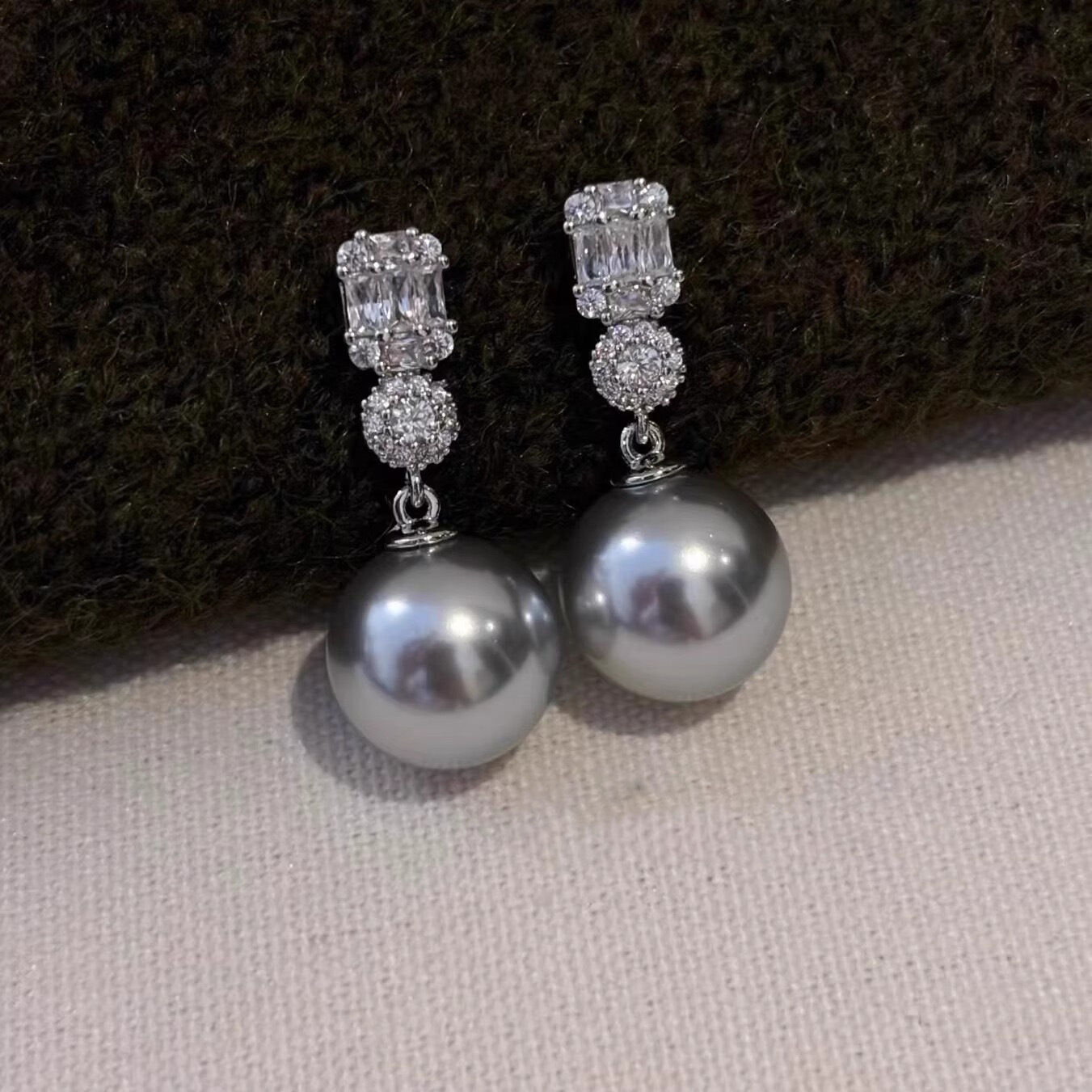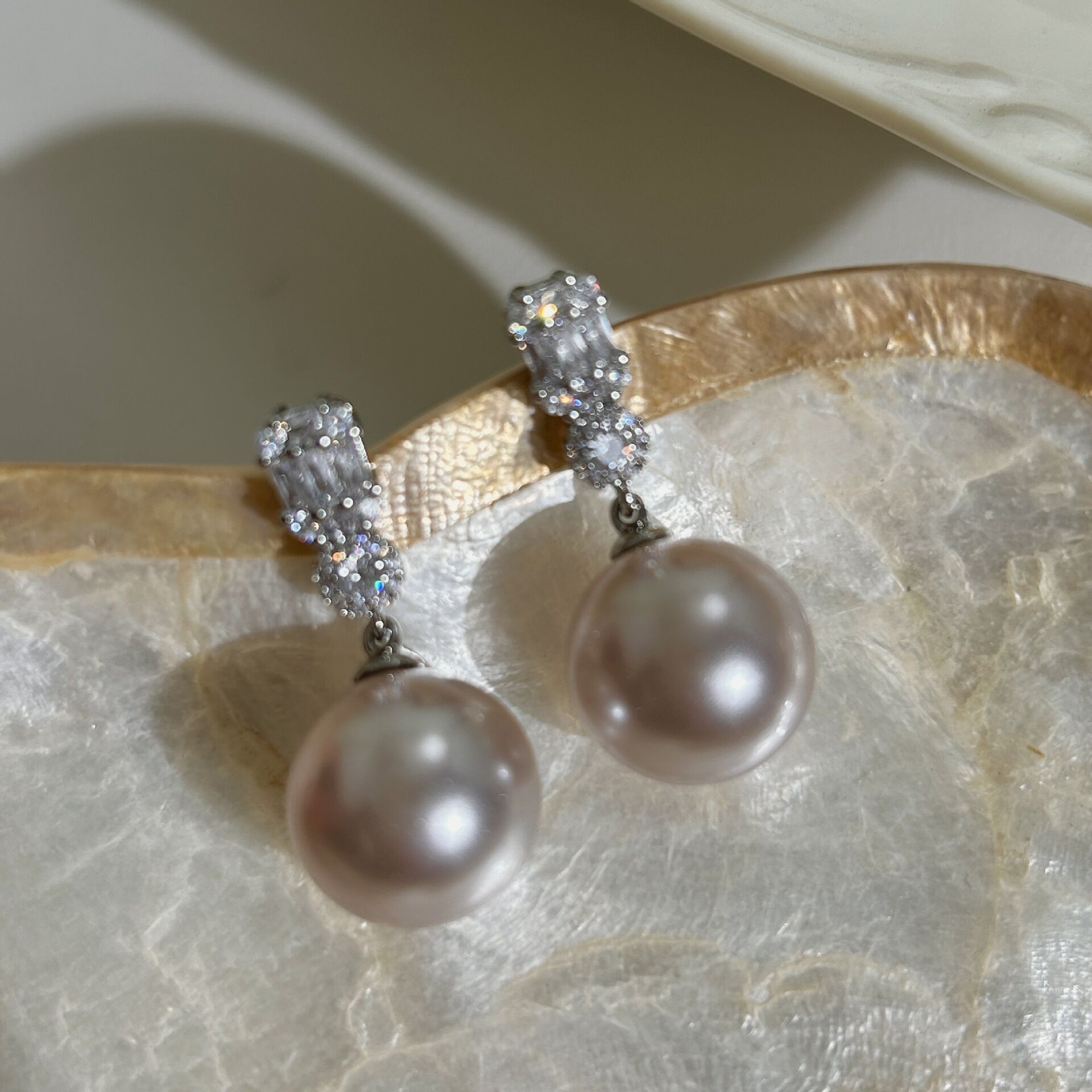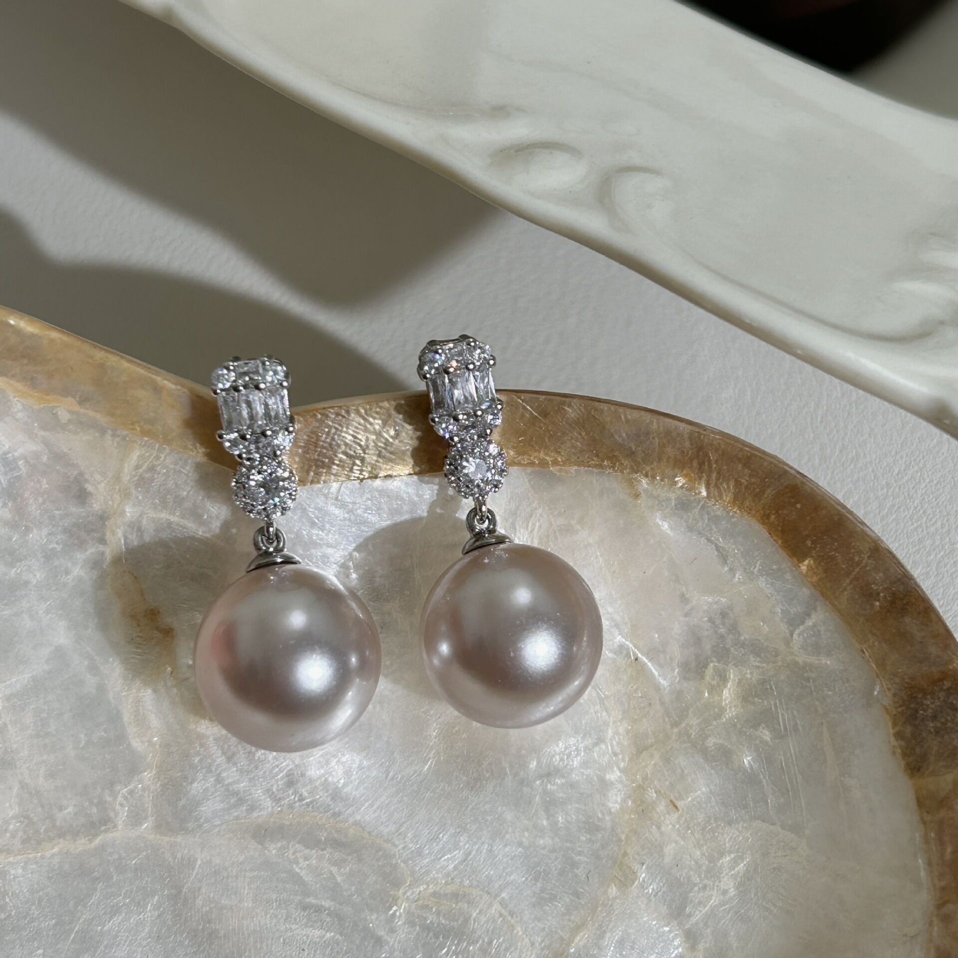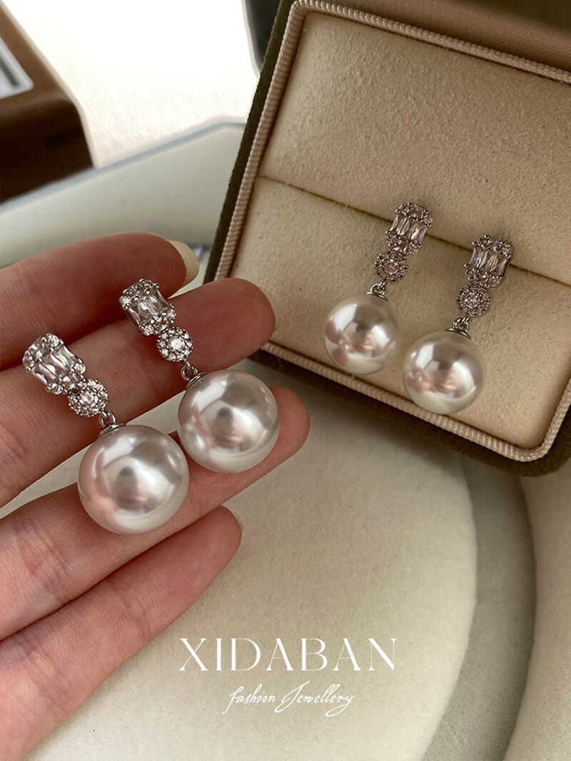 耳環戴妃款施家珍珠s銀耳釘女輕奢高級感人造澳白珍珠耳飾耳環耳釘耳飾女生耳環法式耳環流行百搭耳釘生日禮物貼耳耳環