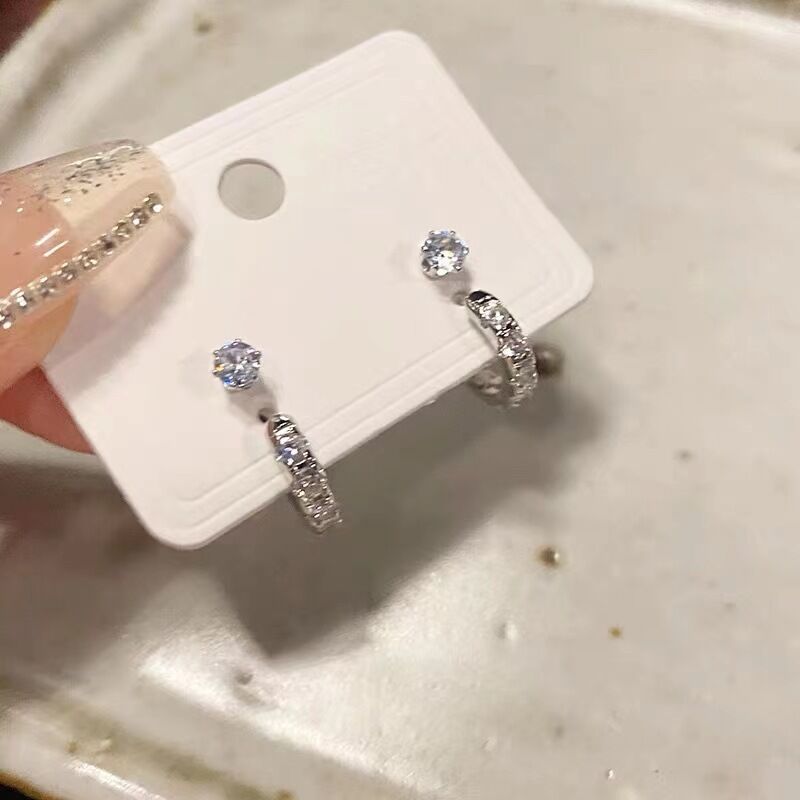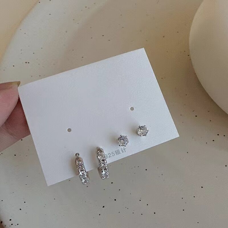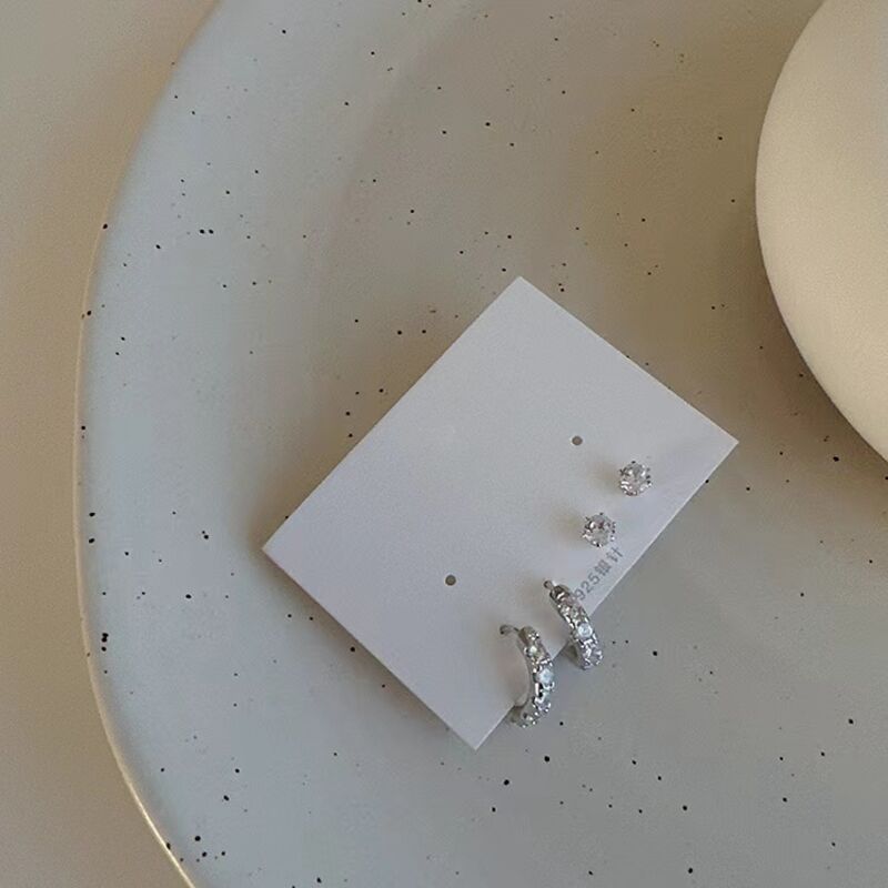 耳環新中式295锆石套裝耳環女簡約日常百搭耳簡約個性新款氣質耳釘耳環耳釘耳飾女生耳環法式耳環流行百搭耳釘生日禮物貼耳耳環