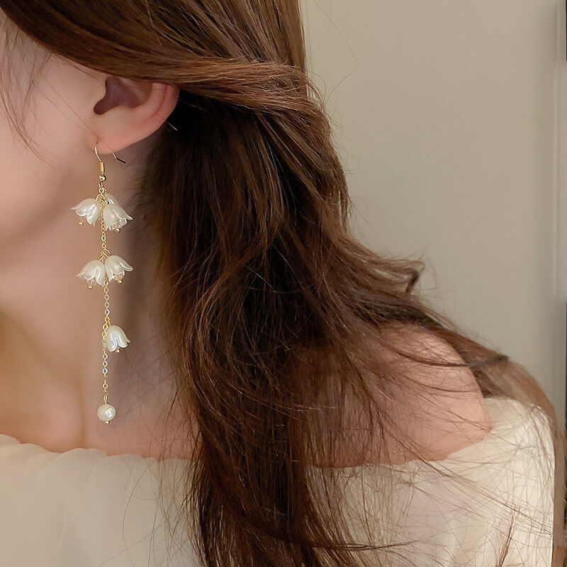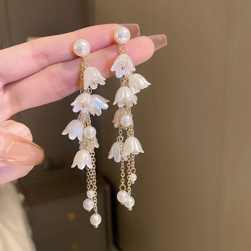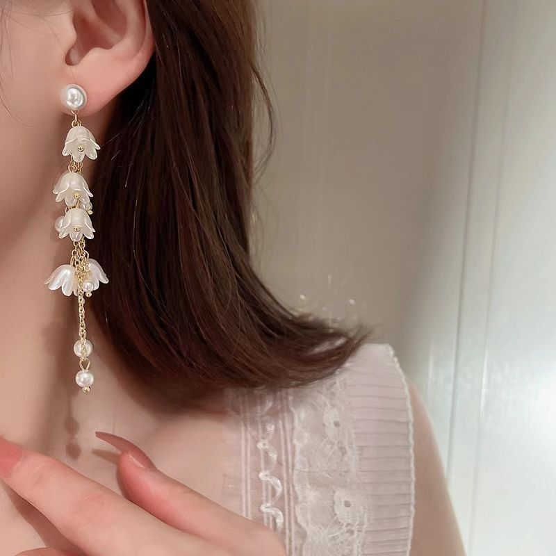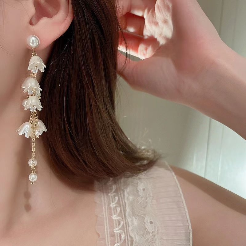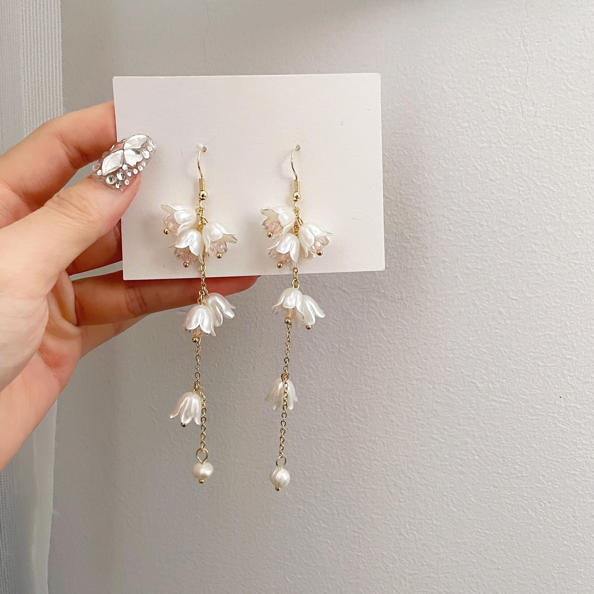 耳環新款清新甜美水晶鈴蘭花流蘇耳鉤女韓國高級氣質優雅顯瘦珍珠耳飾耳環耳釘耳飾女生耳環法式耳環流行百搭耳釘生日禮物貼耳耳環