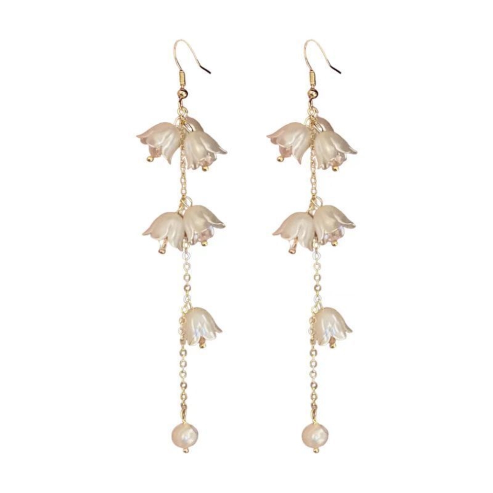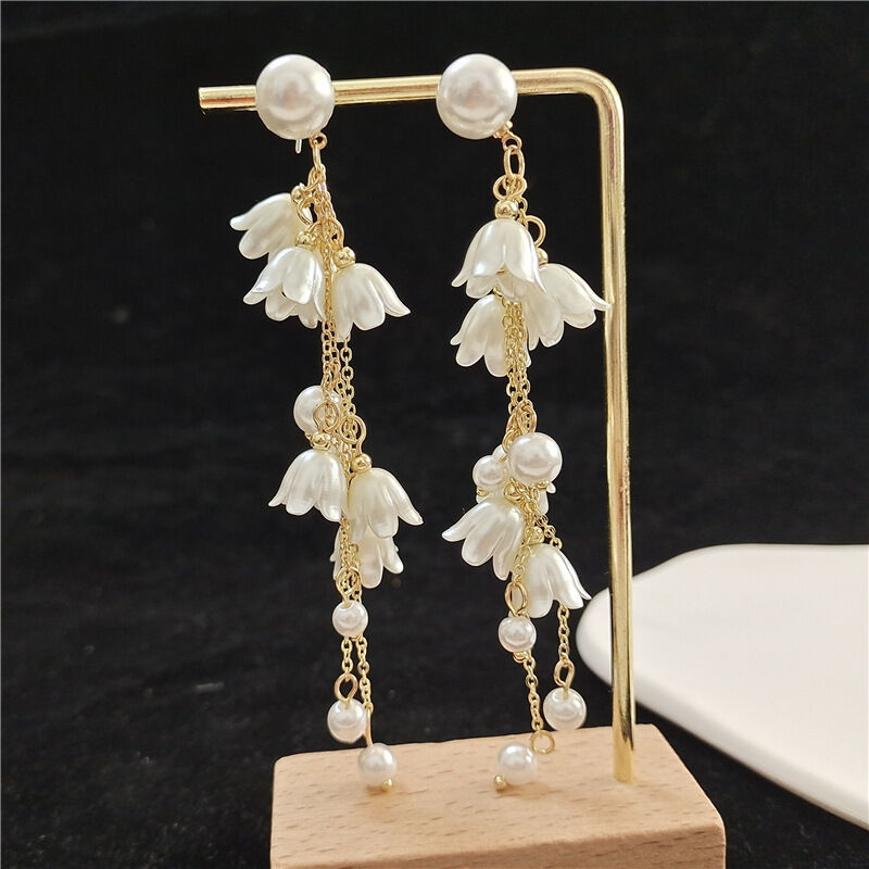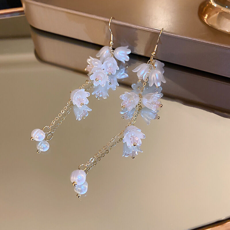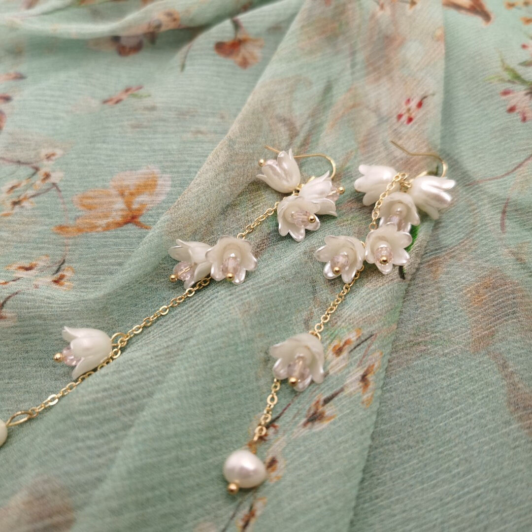 耳環新款清新甜美水晶鈴蘭花流蘇耳鉤女韓國高級氣質優雅顯瘦珍珠耳飾耳環耳釘耳飾女生耳環法式耳環流行百搭耳釘生日禮物貼耳耳環