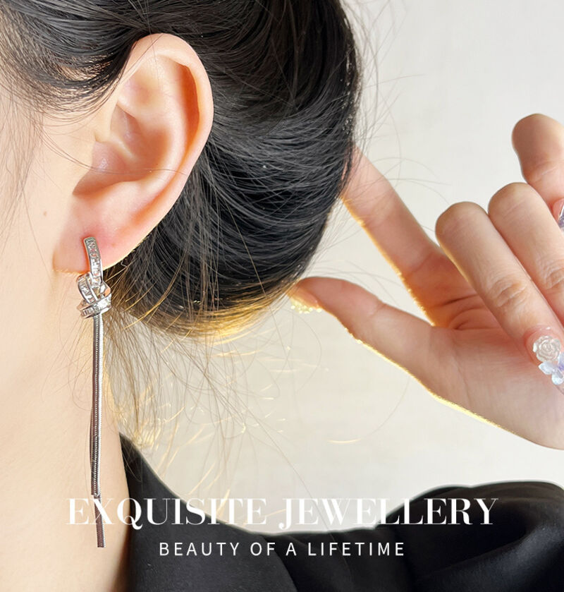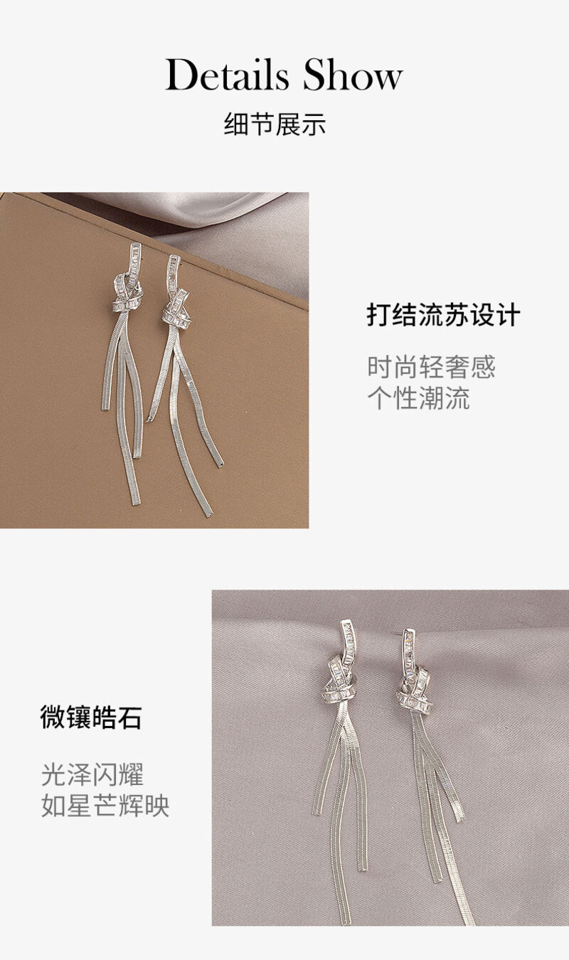 耳環銀針锆石打結流蘇耳環輕奢高級感耳釘個性小眾百搭耳墜耳飾品耳環耳釘耳飾女生耳環法式耳環流行百搭耳釘生日禮物貼耳耳環