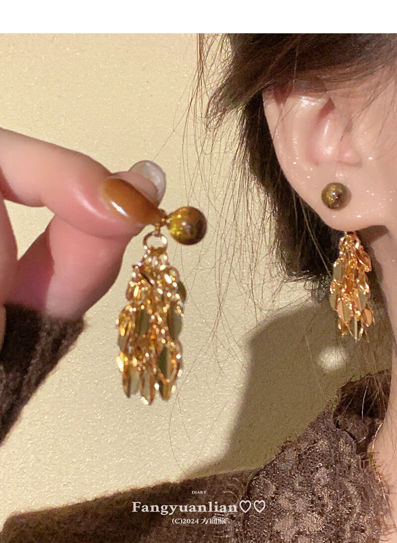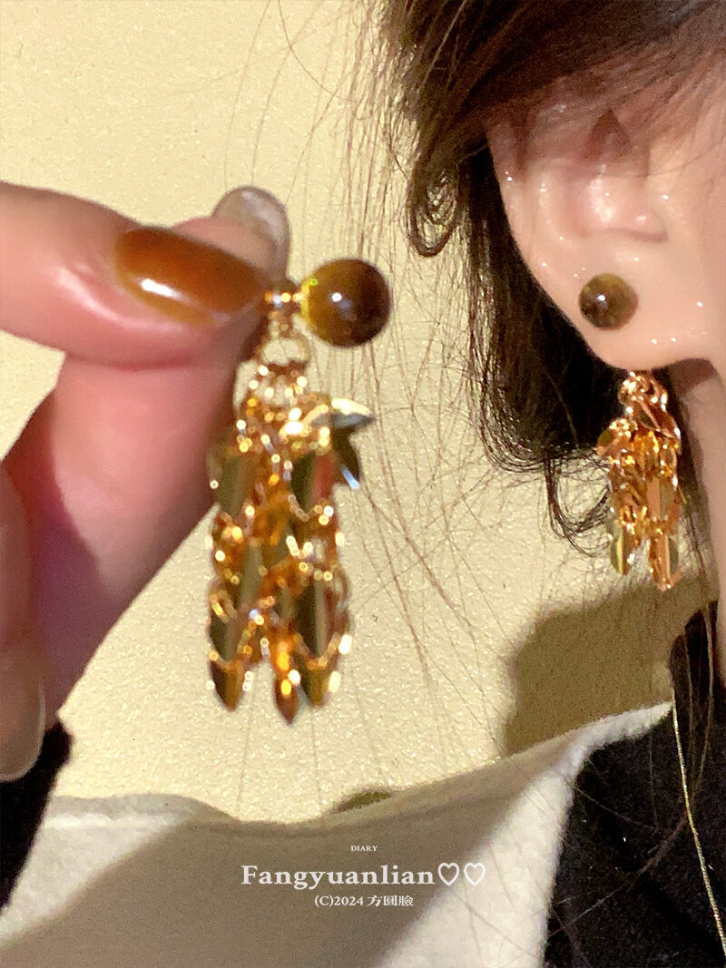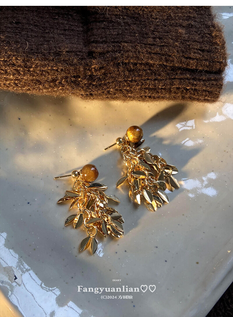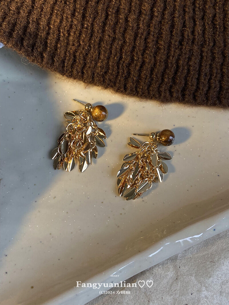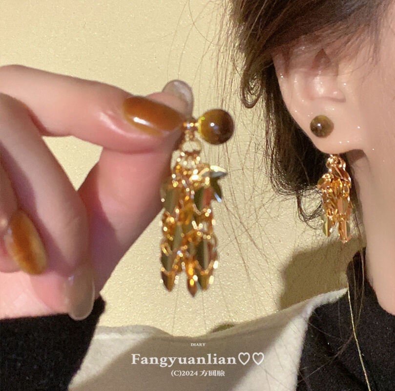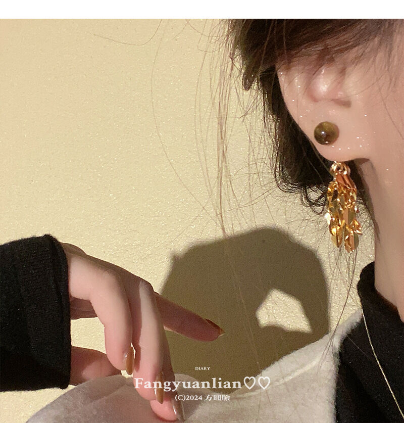 耳環金色羽翼~美拉德虎眼麥穗流蘇耳環女春夏高級感耳釘方圓臉耳飾 耳環耳釘耳飾女生耳環法式耳環流行百搭耳釘生日禮物貼耳耳環