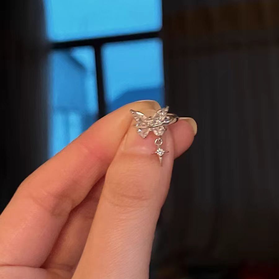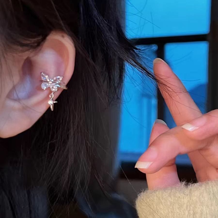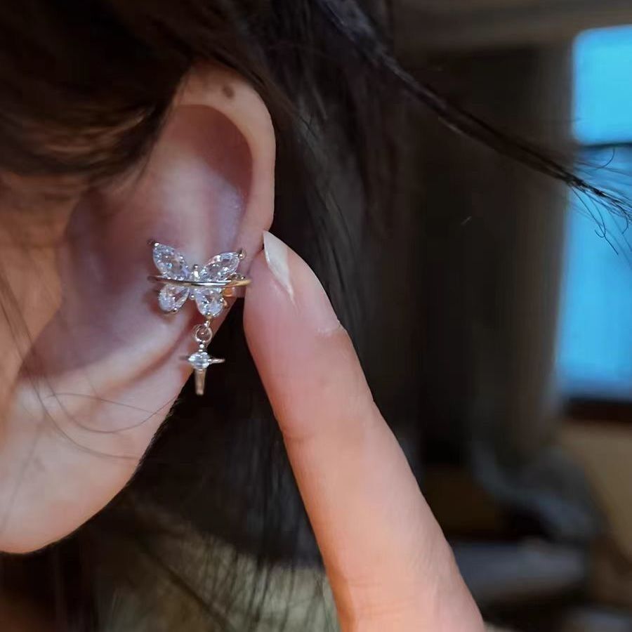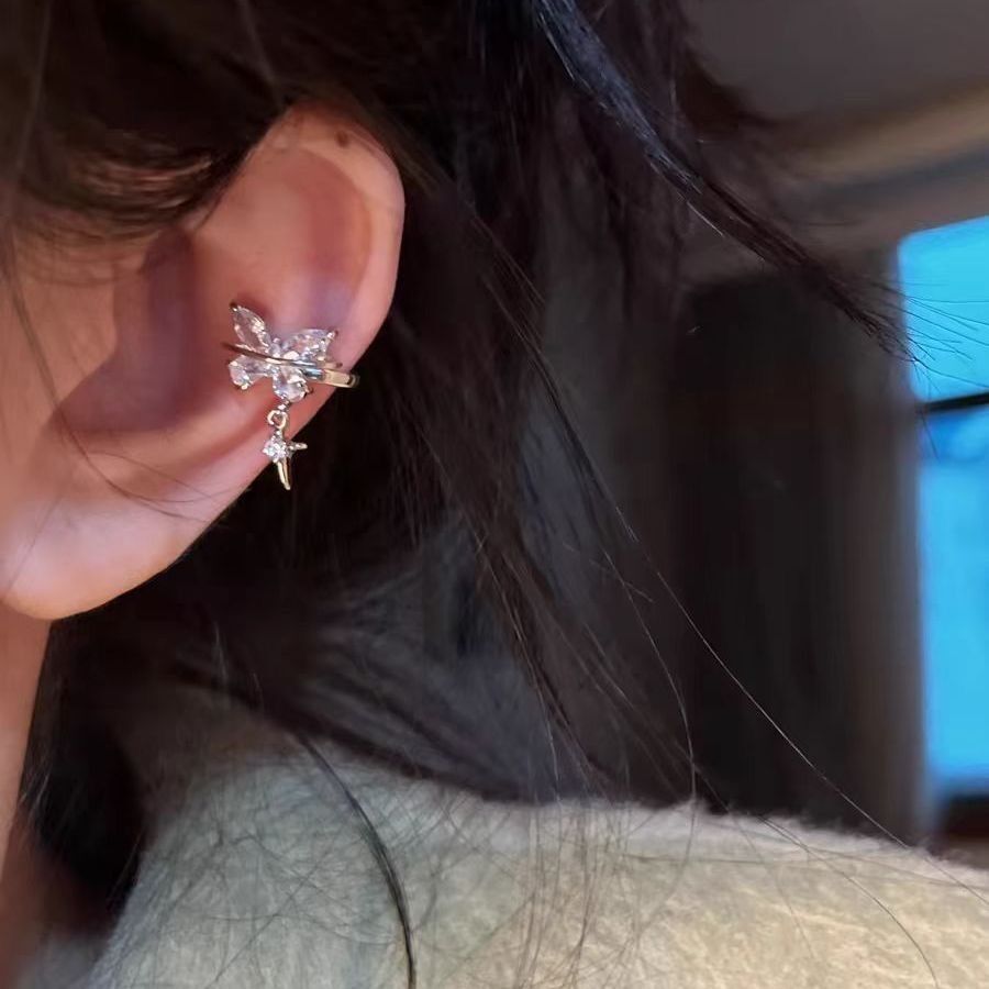 耳環女純欲锆石蝴蝶無耳洞耳夾女芒星耳環新款小眾設計氣質感耳骨夾女耳環耳釘耳飾女生耳環法式耳環流行百搭耳釘生日禮物貼耳耳環