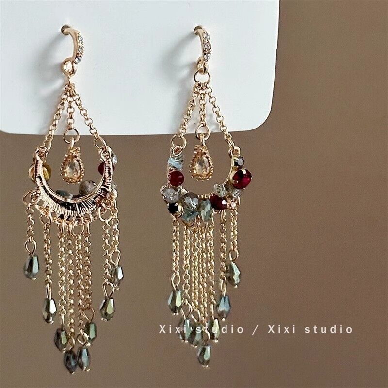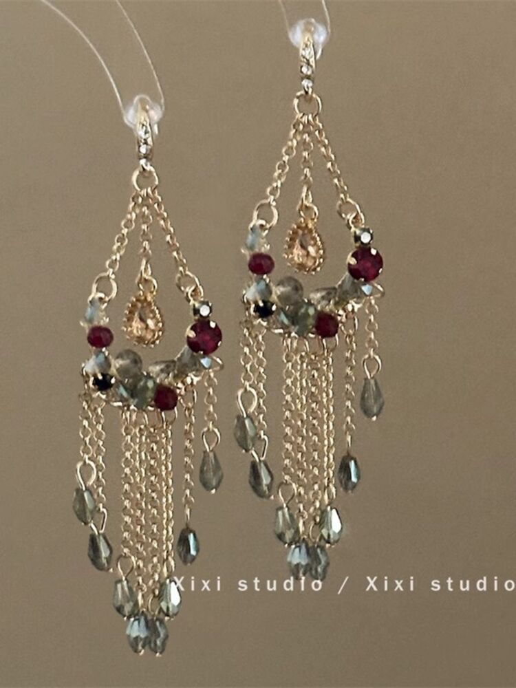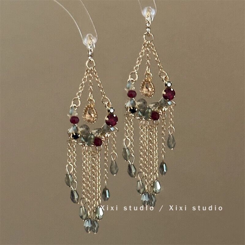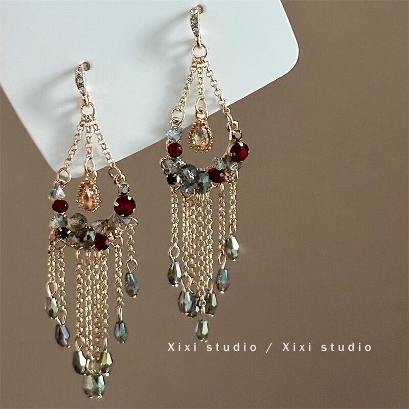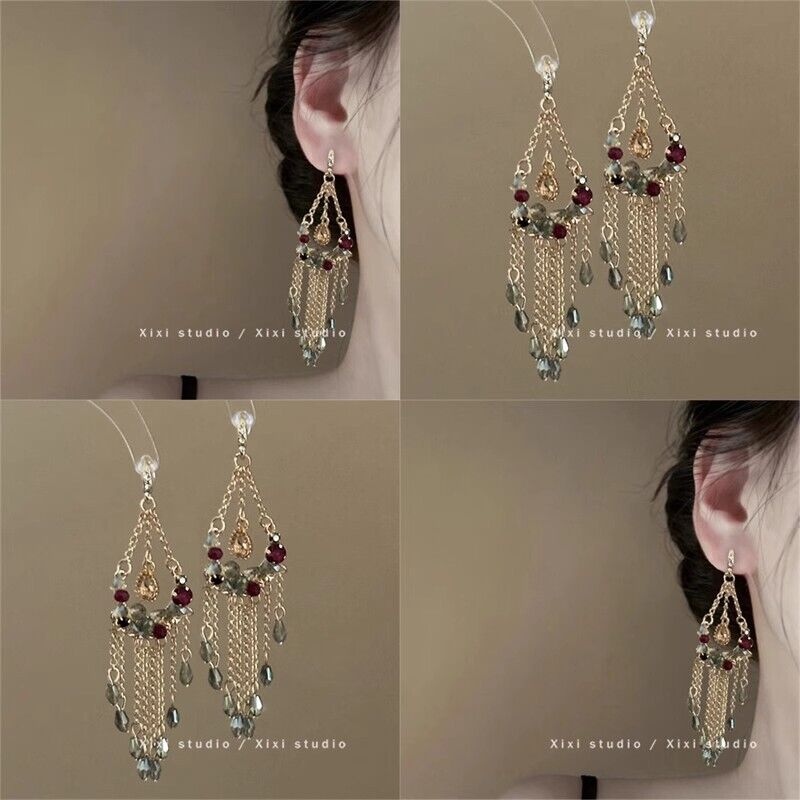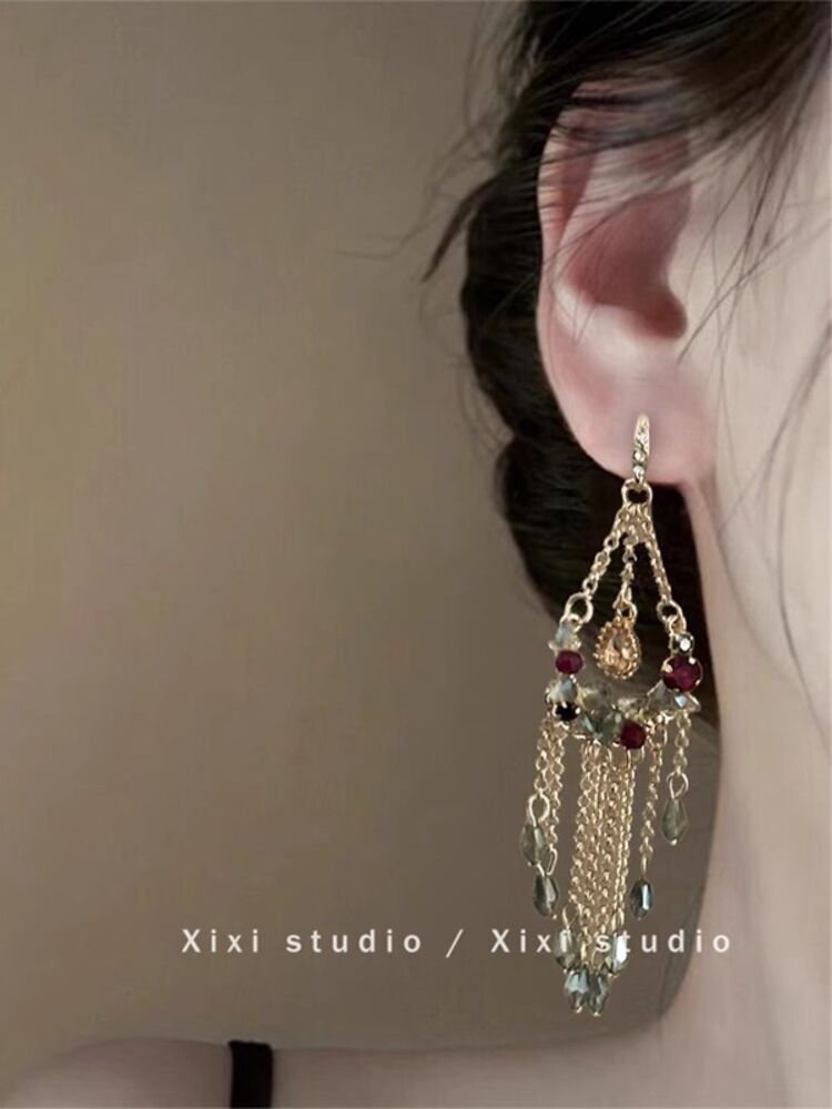 耳環女民族風耳釘流蘇水滴镂空花朵耳環輕奢高級感彩色長款耳飾女生耳環耳釘耳飾女生耳環法式耳環流行百搭耳釘生日禮物貼耳耳環