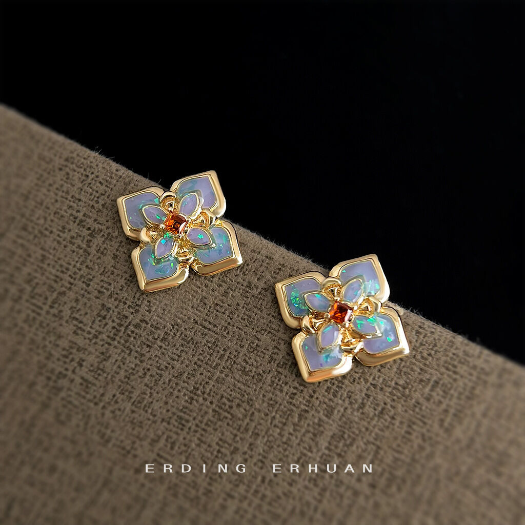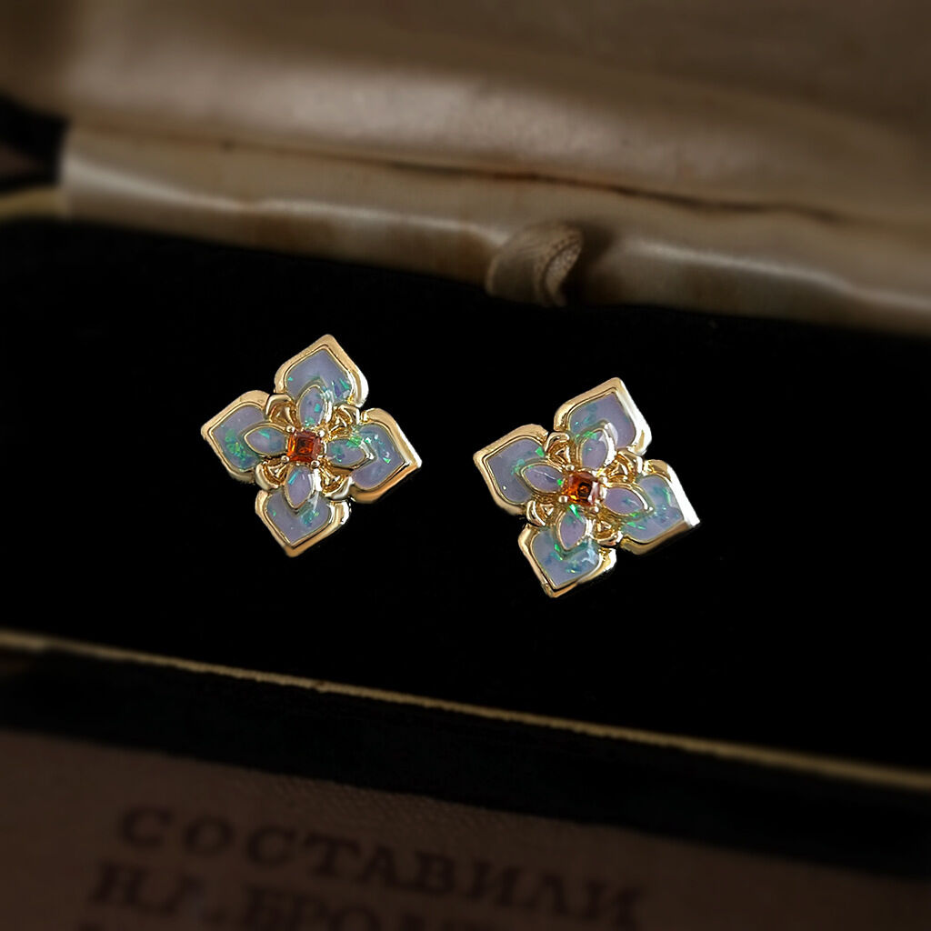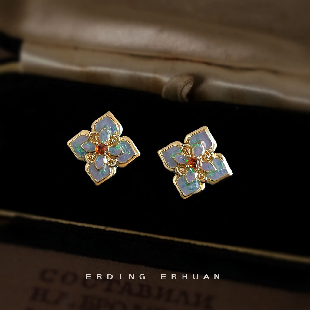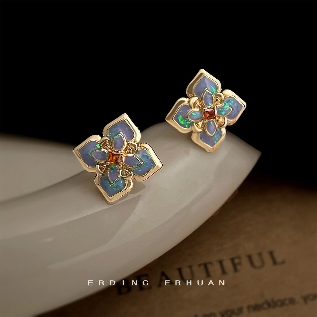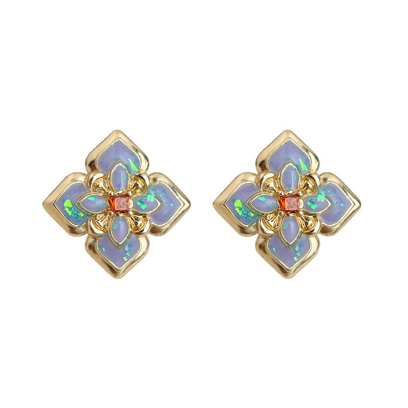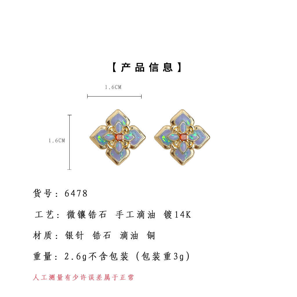 耳環女生時尚高級感琺瑯滴釉彩繪銀針通勤耳飾女士輕奢風耳釘飾品方形耳環耳釘耳飾女生耳環法式耳環流行百搭耳釘生日禮物貼耳耳環