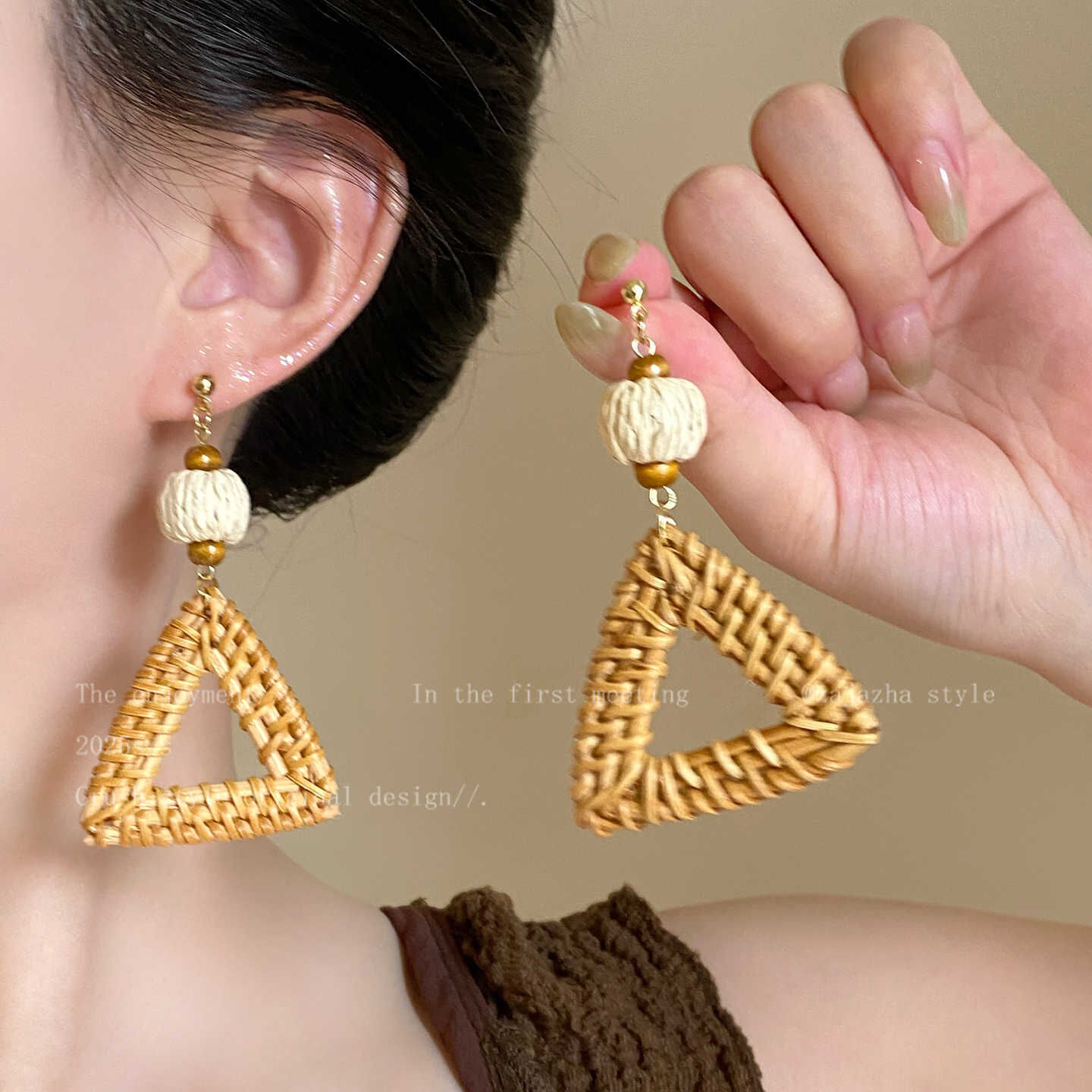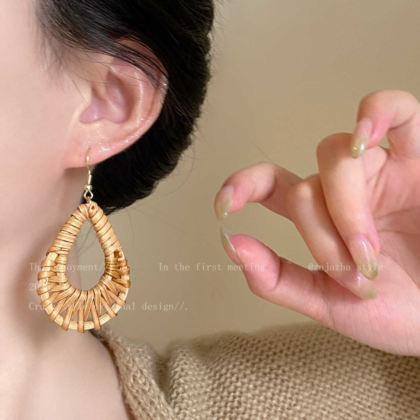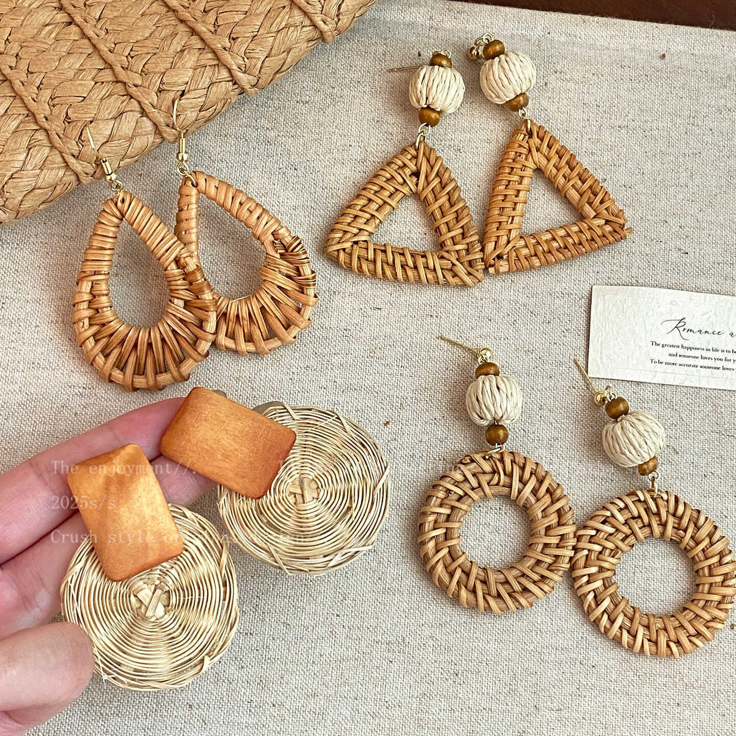 耳環木質藤草編耳圈女新款波西米亞度假風耳環誇張顯臉小耳釘耳飾耳環耳釘耳飾女生耳環法式耳環流行百搭耳釘生日禮物貼耳耳環