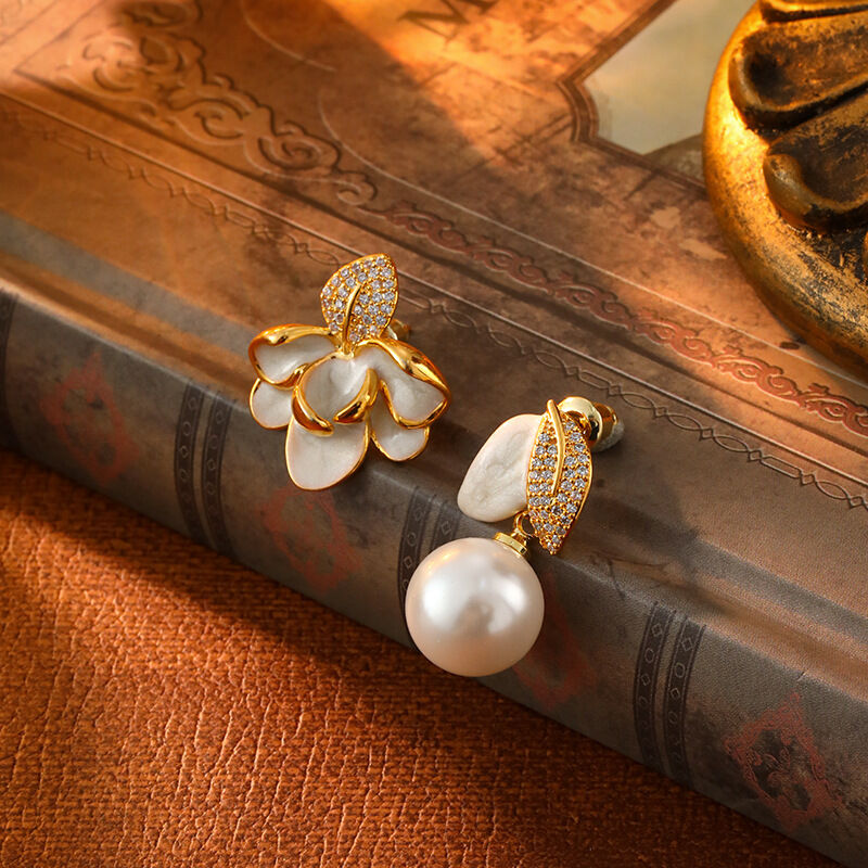 耳環真金電鍍銀針滴油花瓣珍珠耳釘法式宮廷風耳環輕奢高級感耳飾耳環耳釘耳飾女生耳環法式耳環流行百搭耳釘生日禮物貼耳耳環