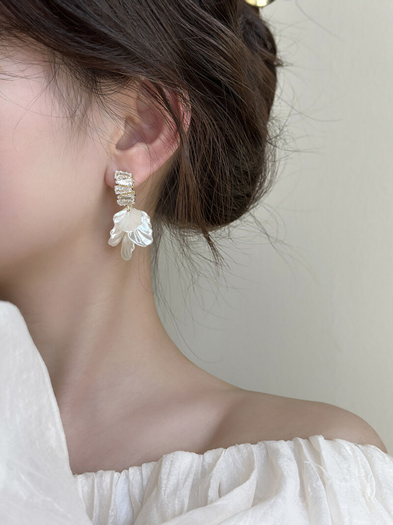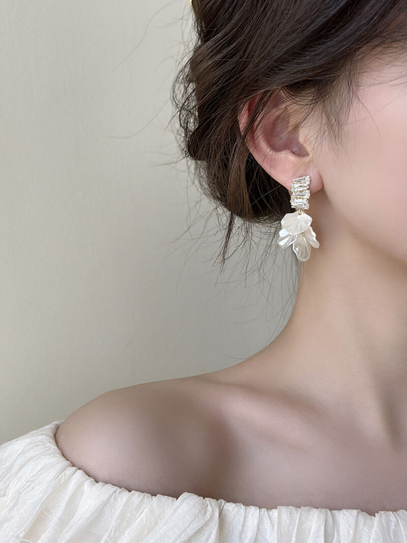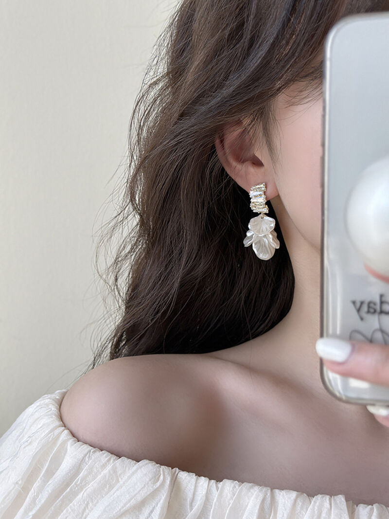 耳環流蘇貝殼花朵耳環小眾設計感高級耳墜女夏季新款耳飾耳釘 耳環耳釘耳飾女生耳環法式耳環流行百搭耳釘生日禮物貼耳耳環