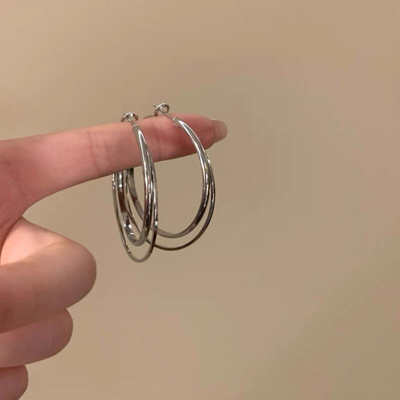 耳環銀色雙層圈圈耳環女輕奢高級感氣質大耳圈圓圈耳釘素圈耳夾耳飾耳環耳釘耳飾女生耳環法式耳環流行百搭耳釘生日禮物貼耳耳環