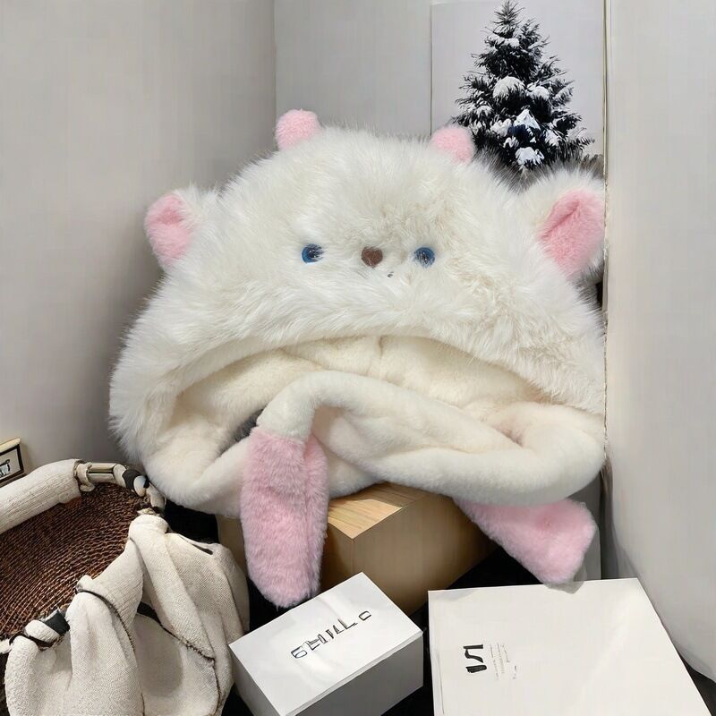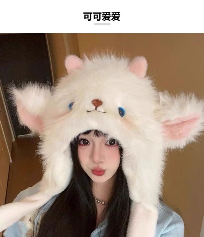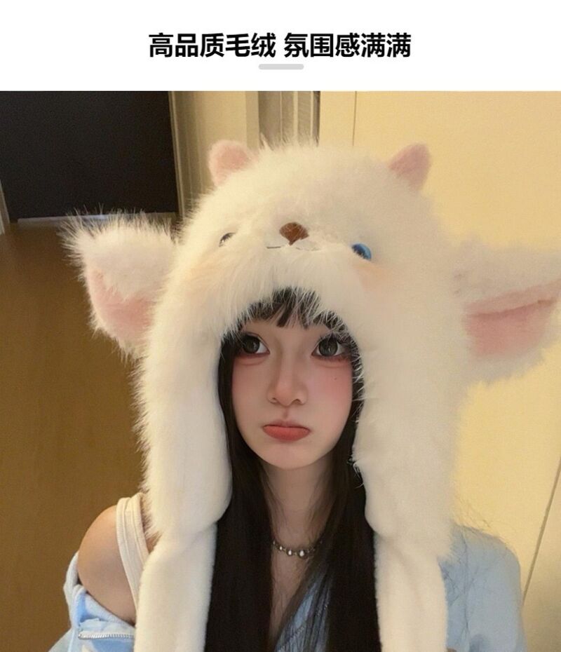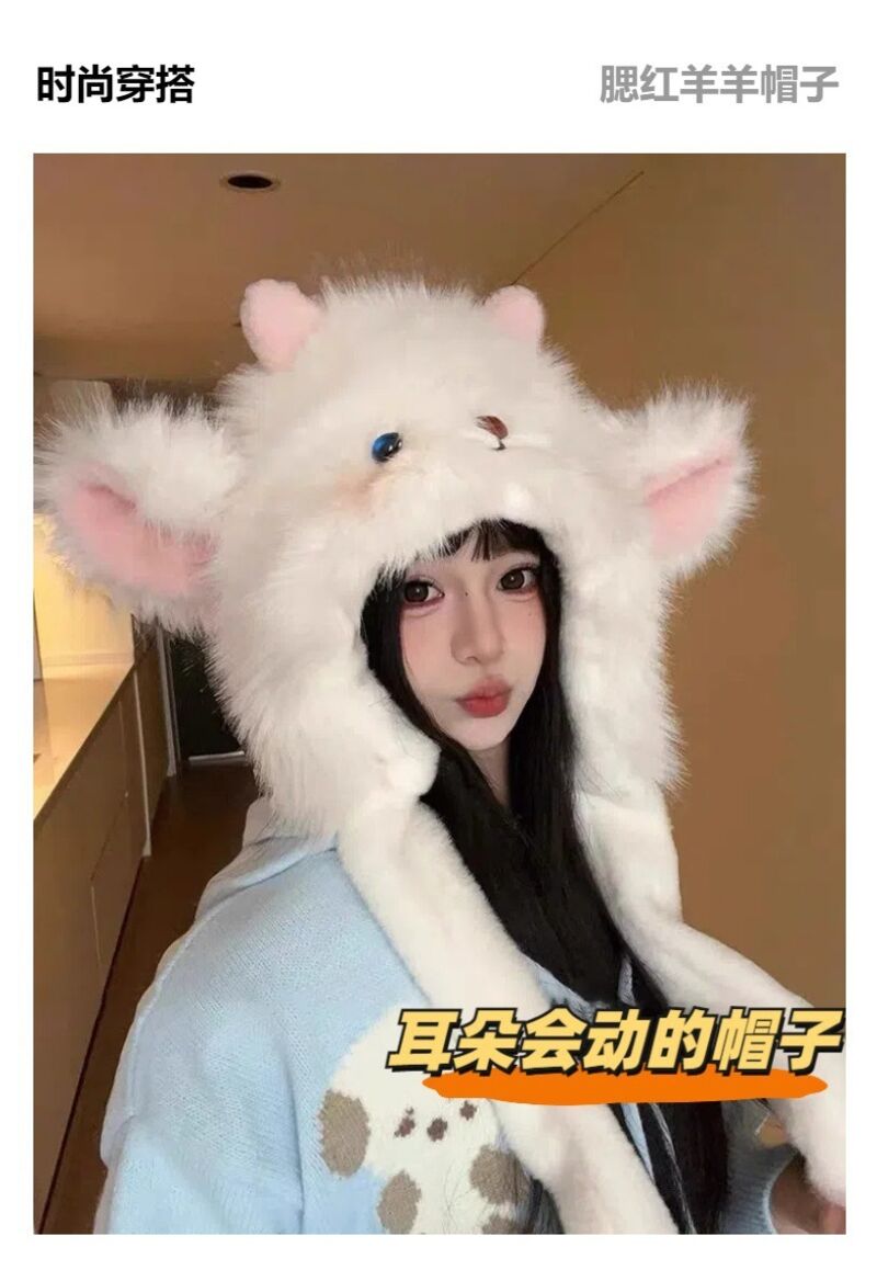 毛帽小綿羊毛絨帽女冬季新款防寒保暖帽子圍巾一體加厚護耳帽毛絨帽套頭帽護耳帽保暖帽秋冬遮耳防寒保暖套頭帽顯臉小防寒防風韓版