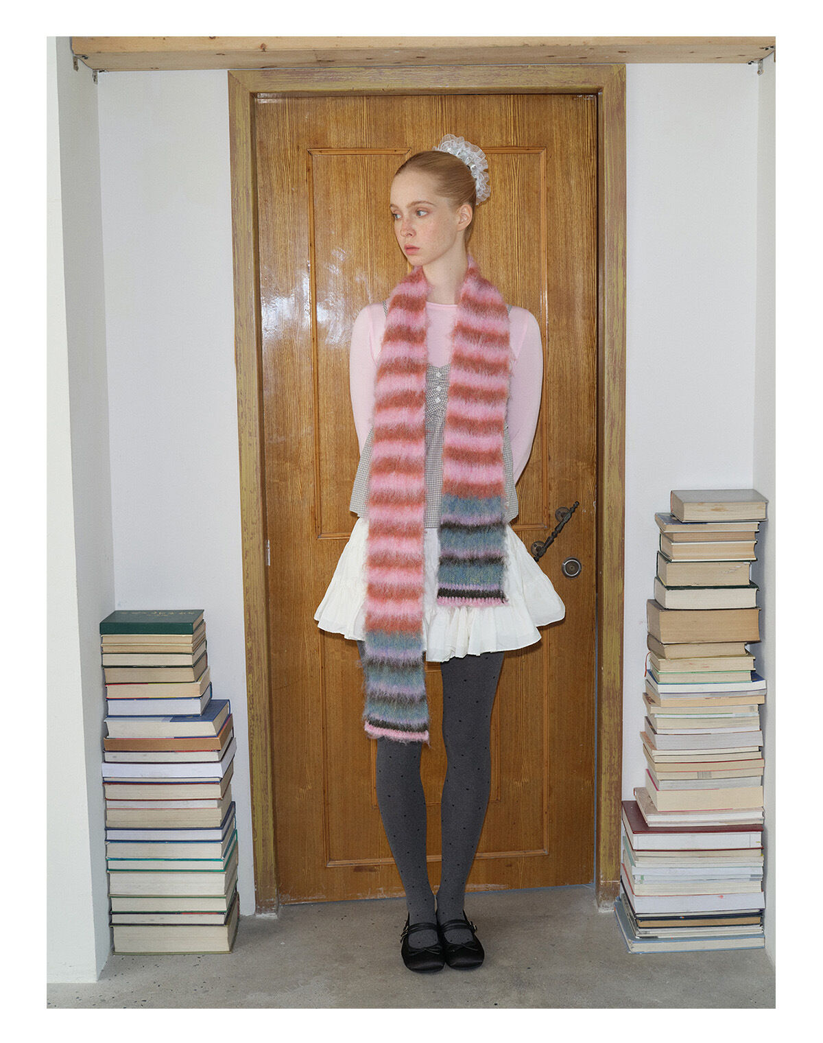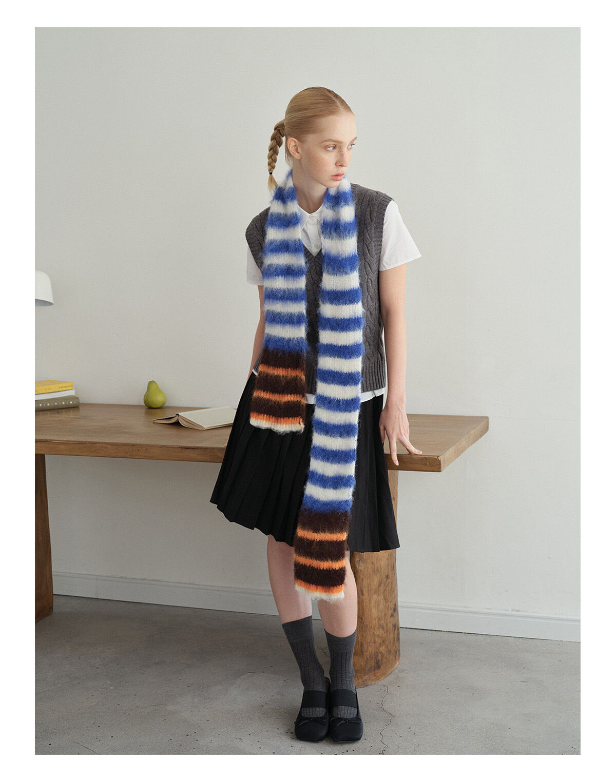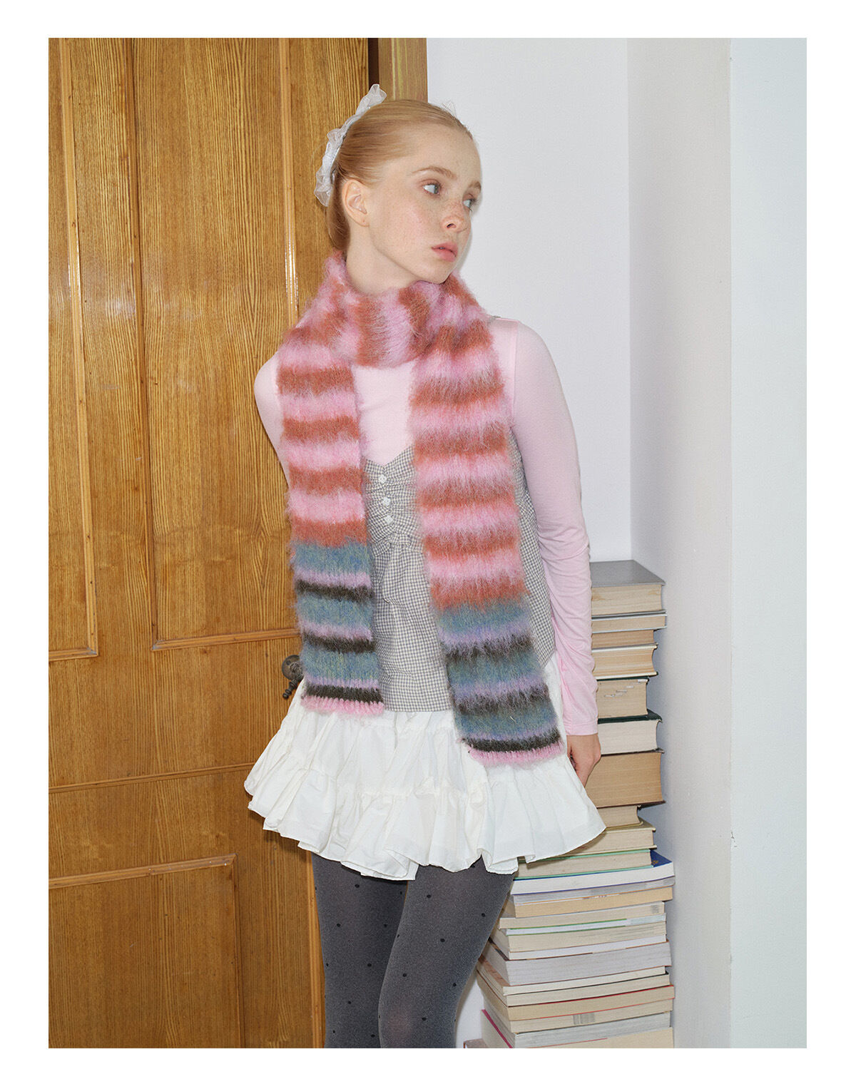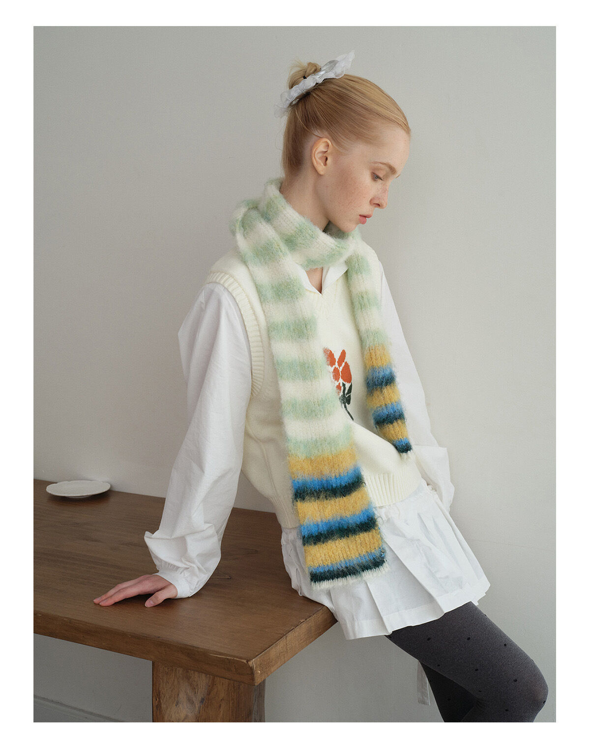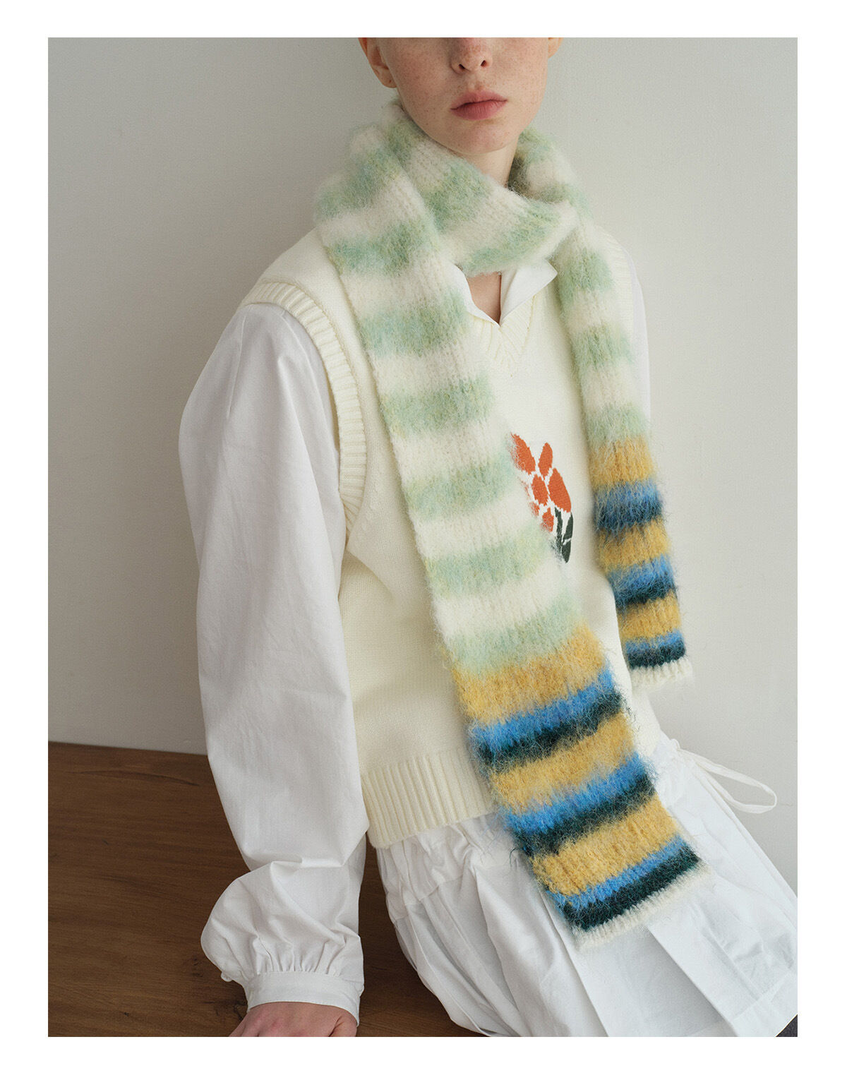 圍巾女韓國設計師款撞色條紋針織圍巾秋冬季小眾細窄軟糯毛線圍脖保暖披肩圍巾質感圍巾冷氣披肩空調百搭保暖圍脖防風圍脖韓版圍巾