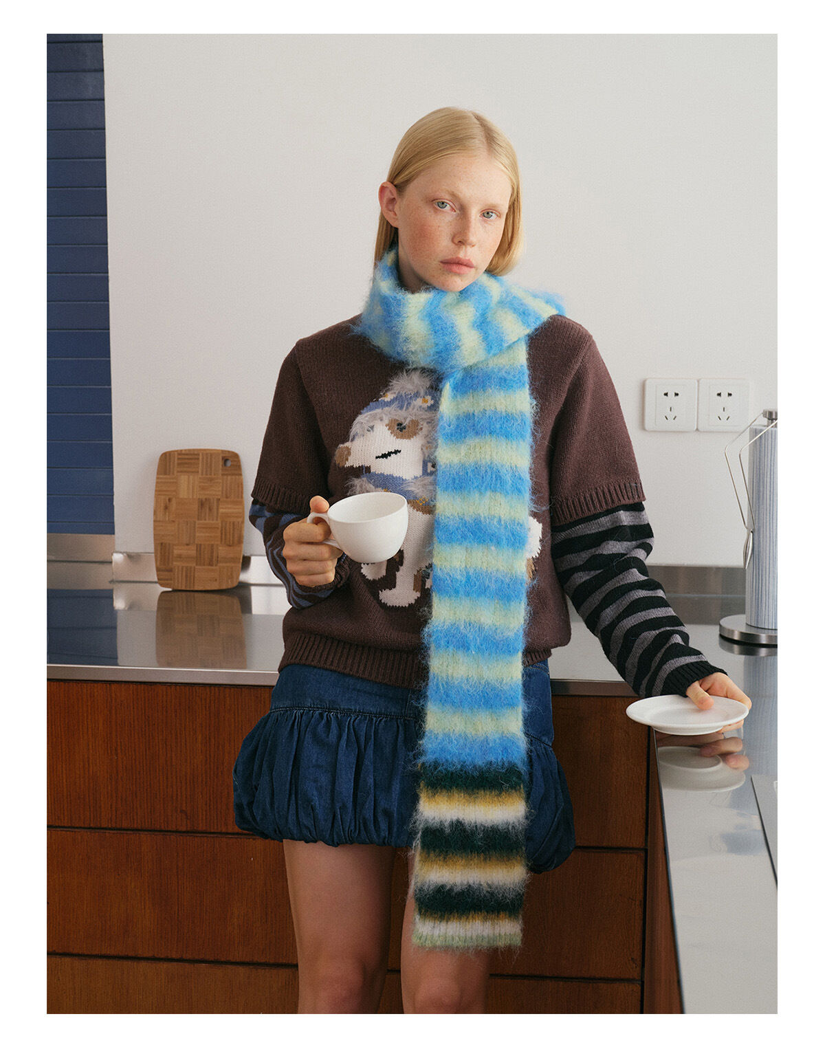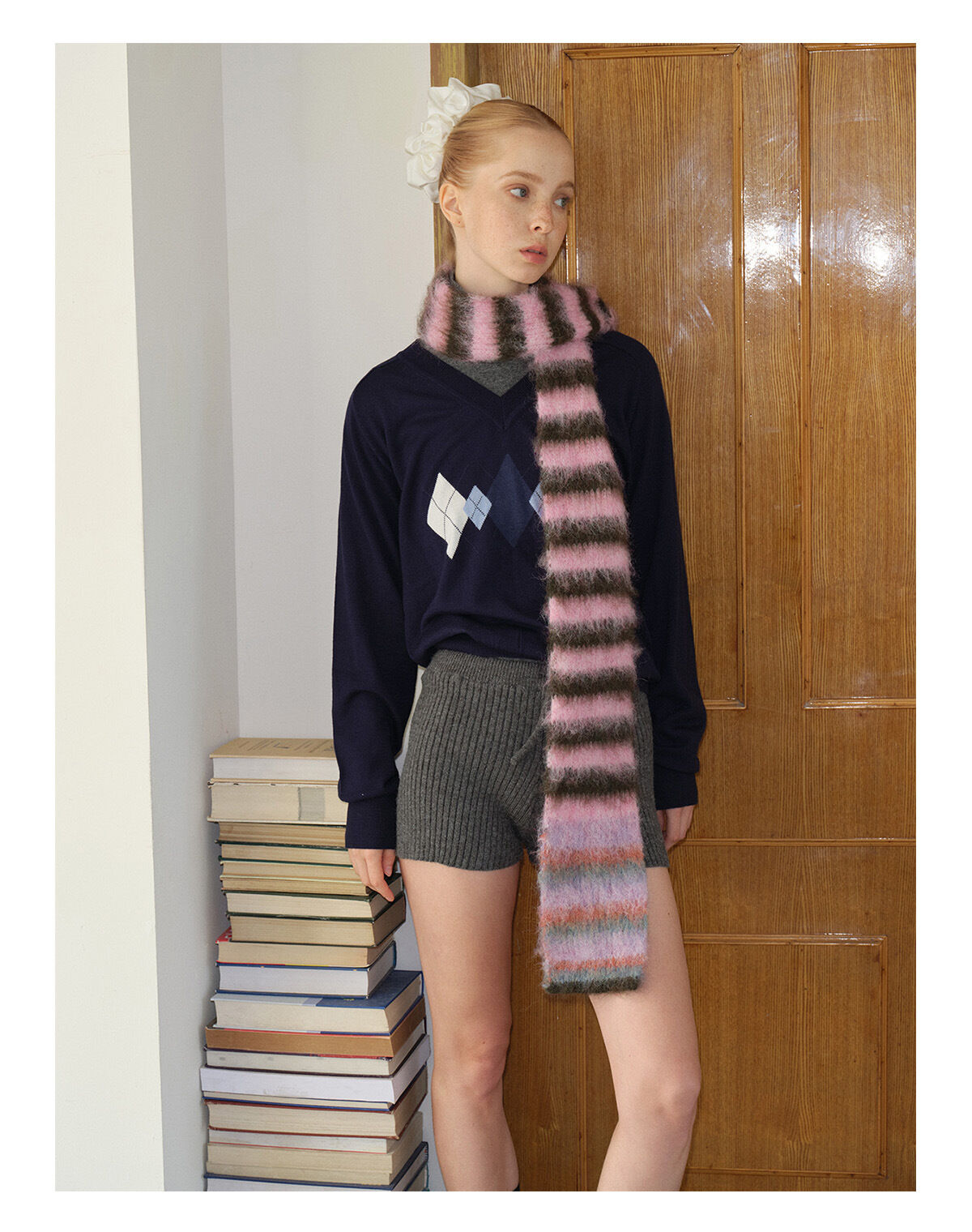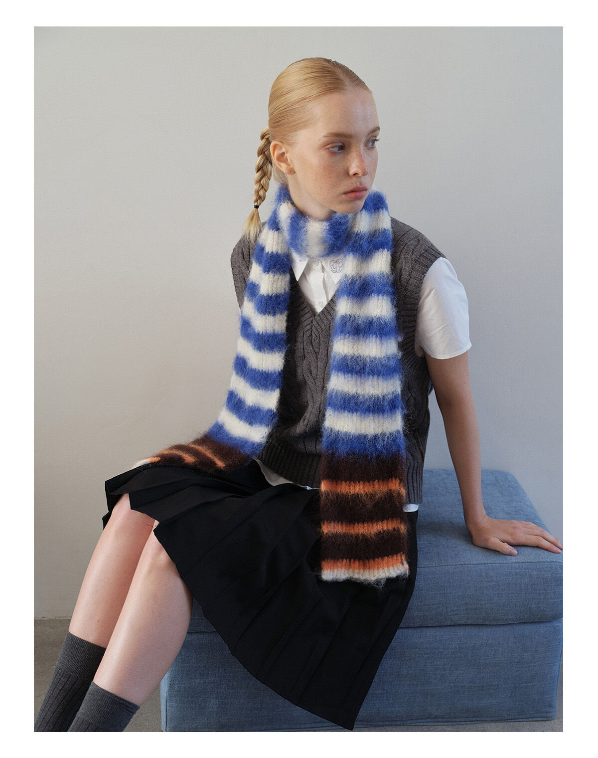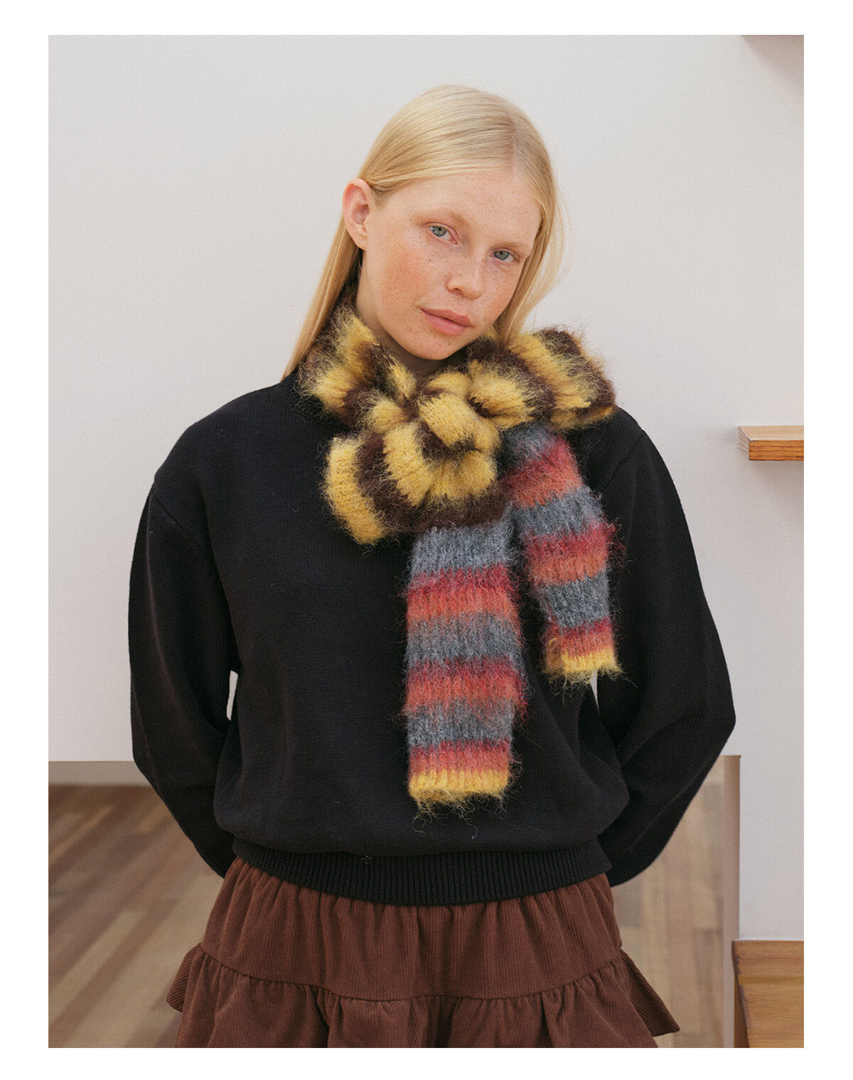 圍巾女韓國設計師款撞色條紋針織圍巾秋冬季小眾細窄軟糯毛線圍脖保暖披肩圍巾質感圍巾冷氣披肩空調百搭保暖圍脖防風圍脖韓版圍巾