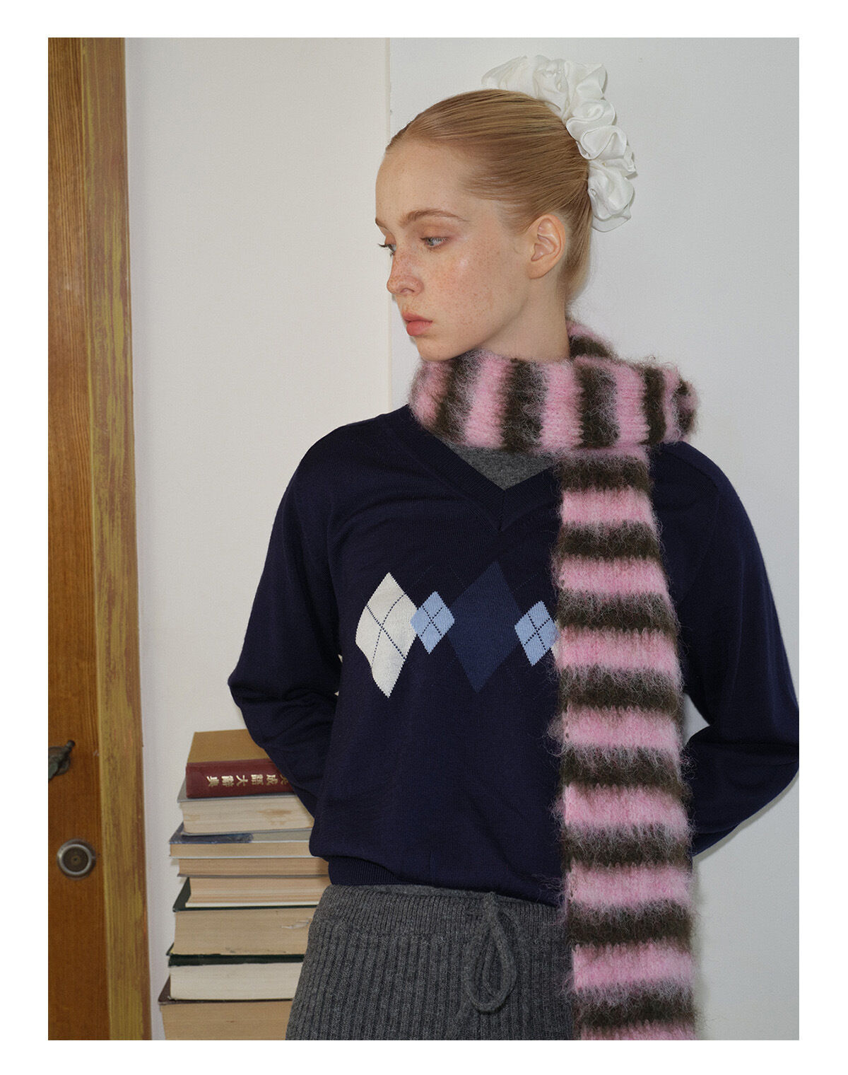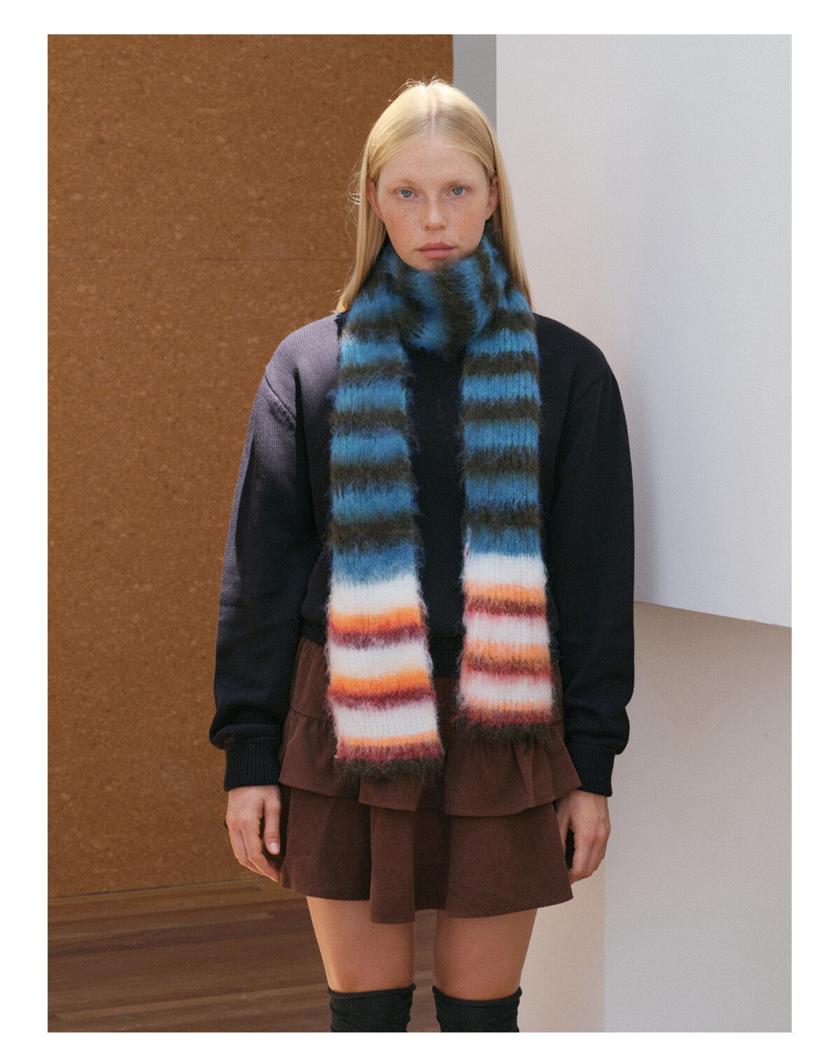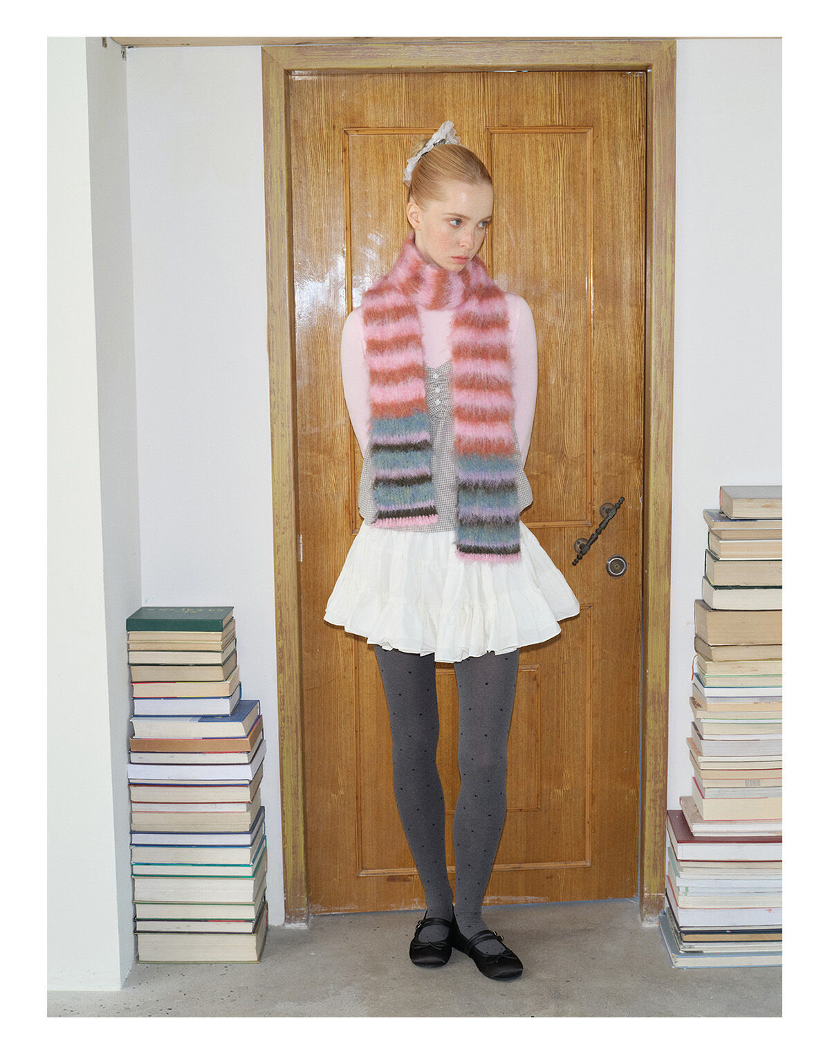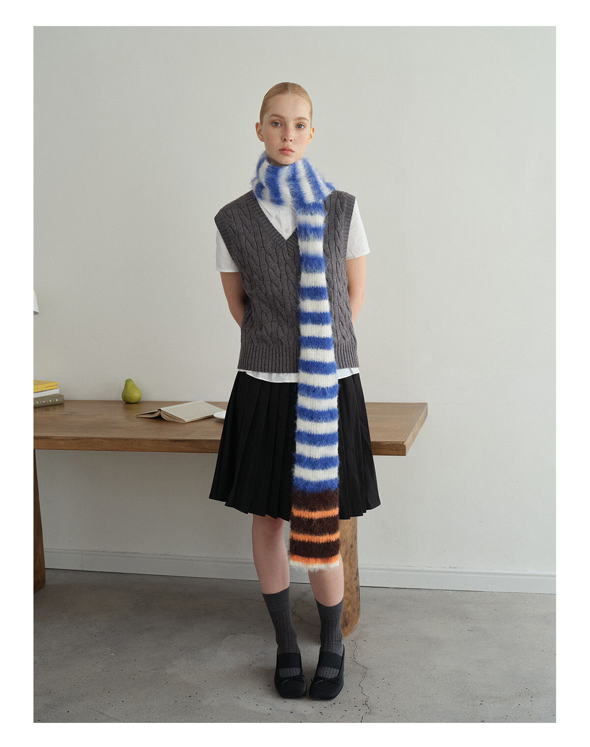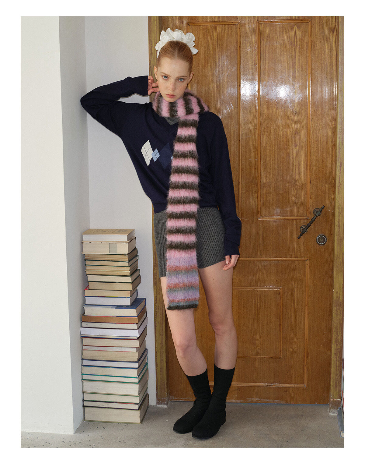 圍巾女韓國設計師款撞色條紋針織圍巾秋冬季小眾細窄軟糯毛線圍脖保暖披肩圍巾質感圍巾冷氣披肩空調百搭保暖圍脖防風圍脖韓版圍巾