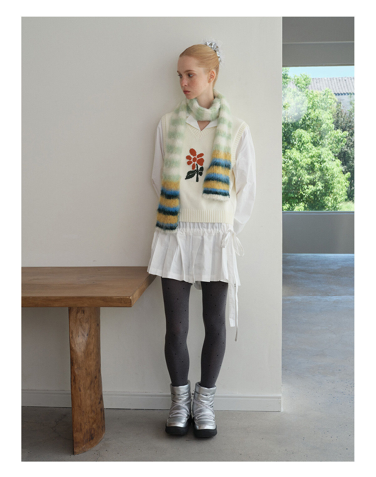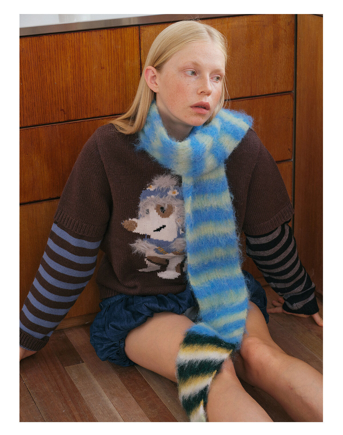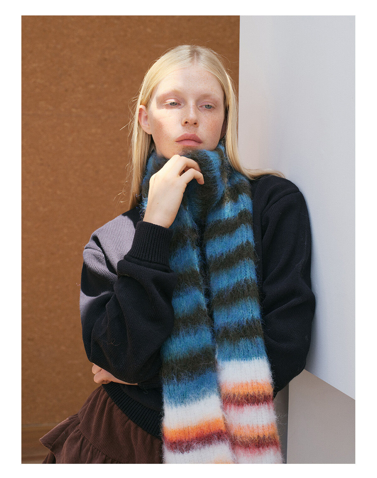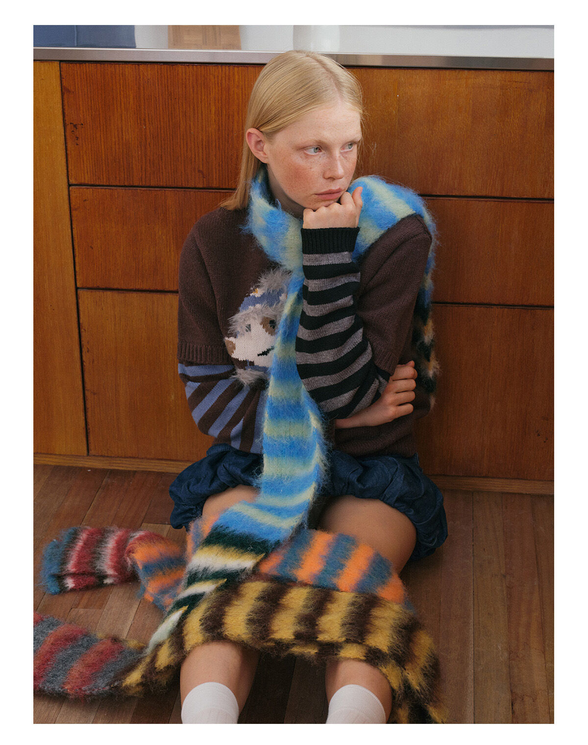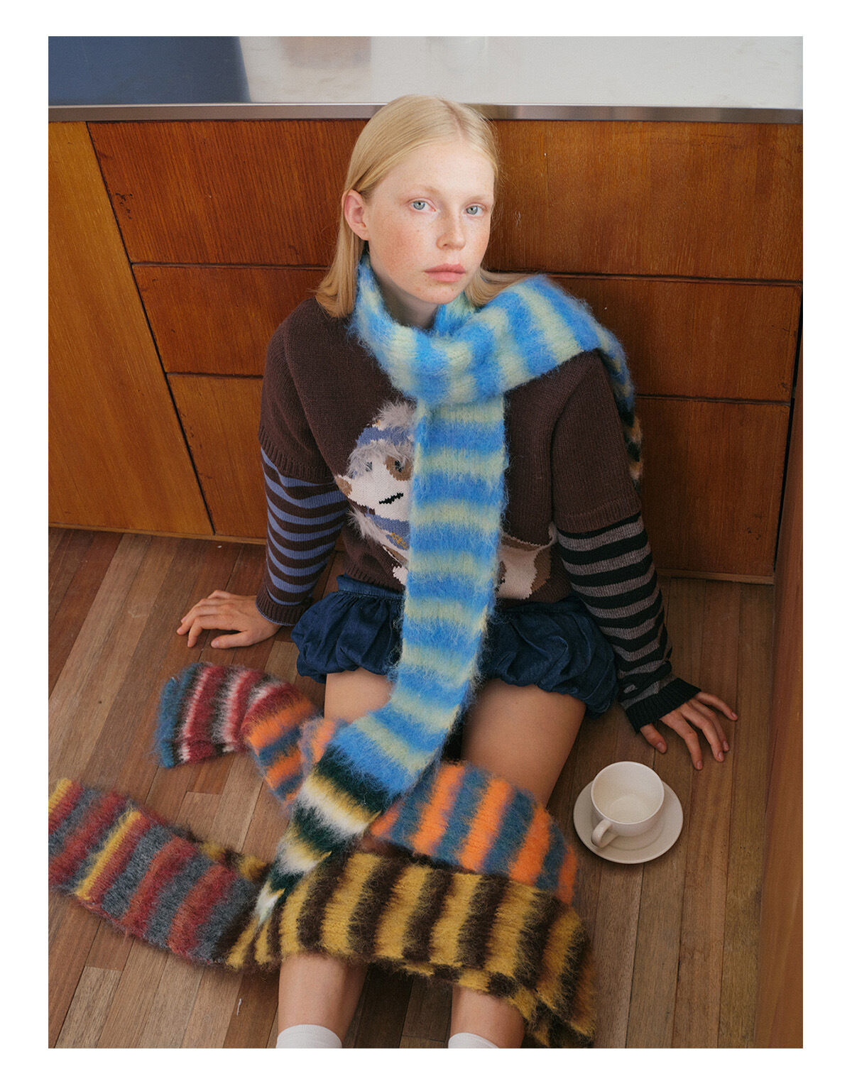 圍巾女韓國設計師款撞色條紋針織圍巾秋冬季小眾細窄軟糯毛線圍脖保暖披肩圍巾質感圍巾冷氣披肩空調百搭保暖圍脖防風圍脖韓版圍巾