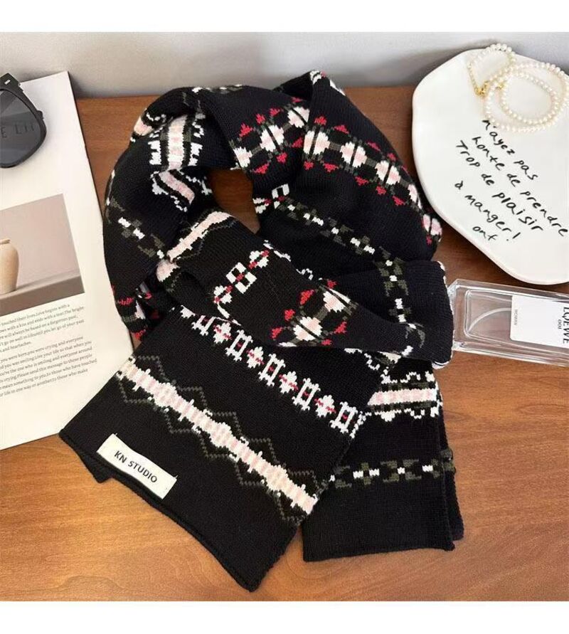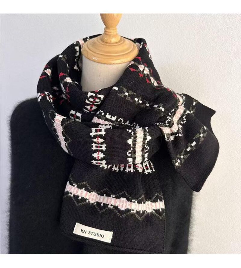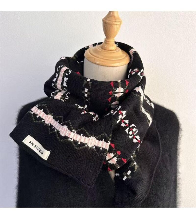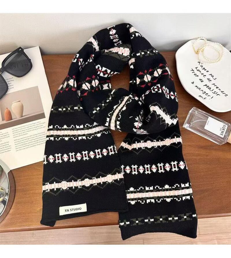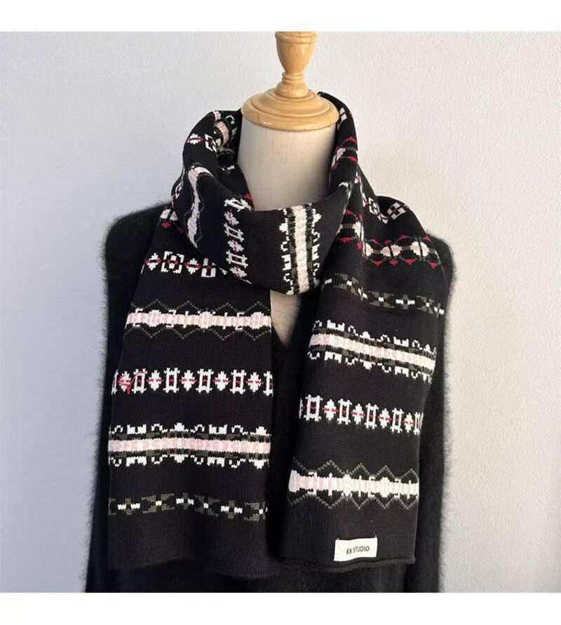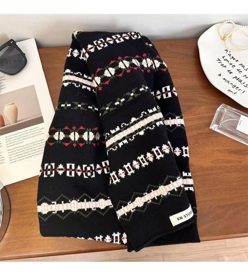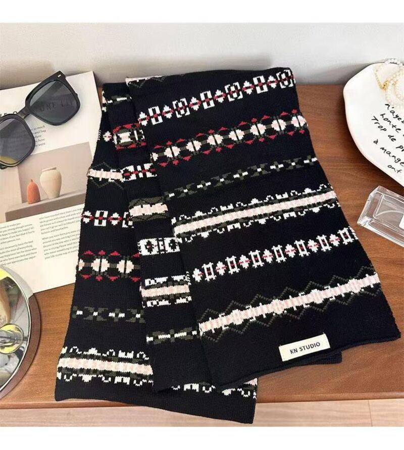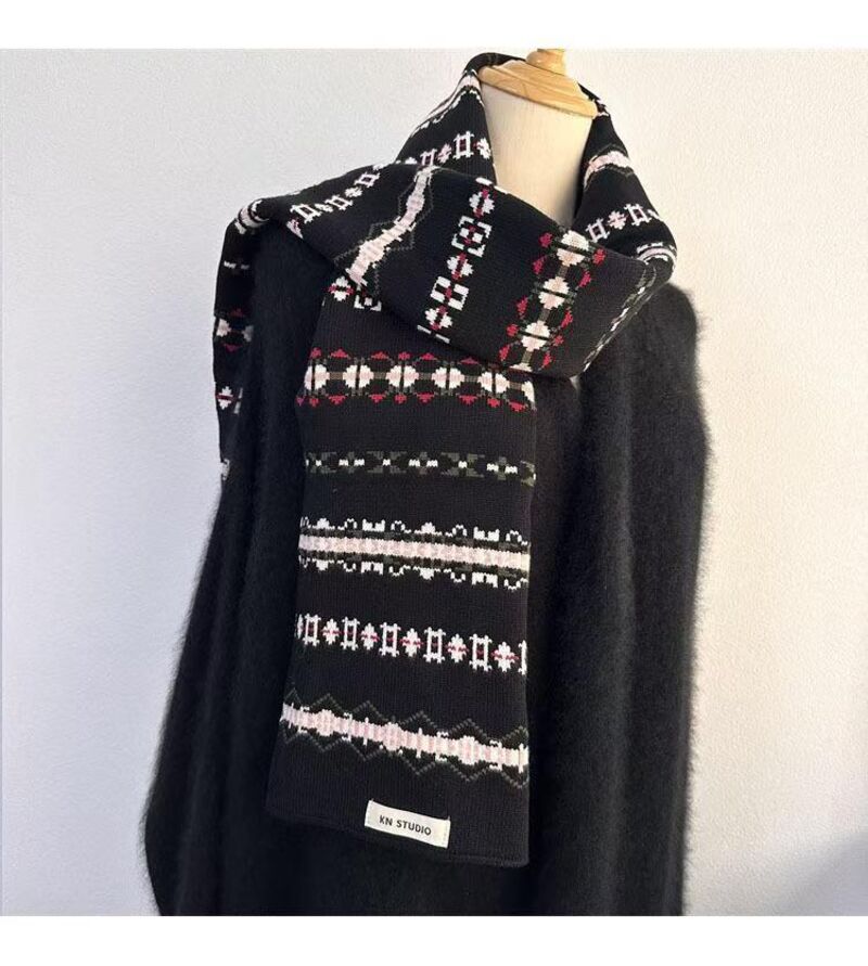 圍巾女氛圍感冰島風條紋針織圍巾女秋冬百搭保暖美式小眾圍脖保暖披肩圍巾質感圍巾冷氣披肩空調百搭保暖圍脖防風圍脖韓版圍巾