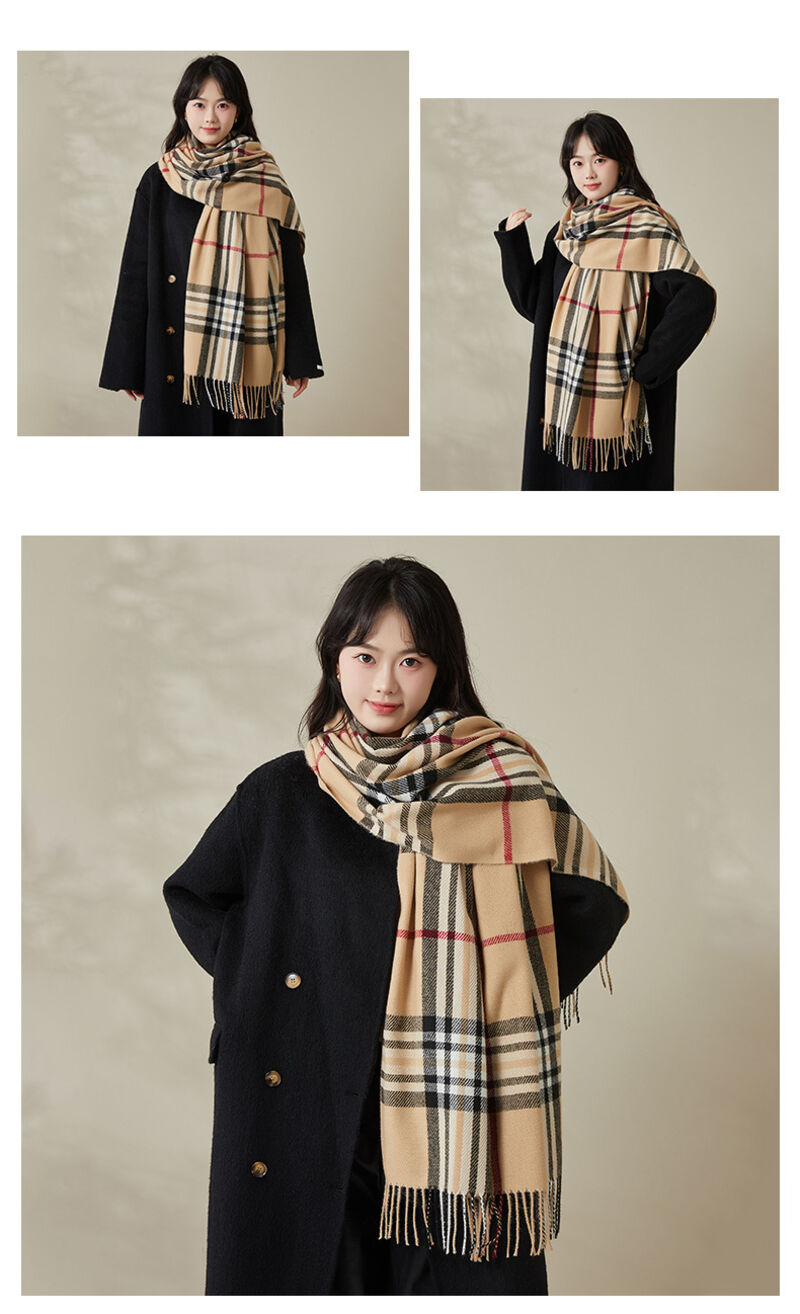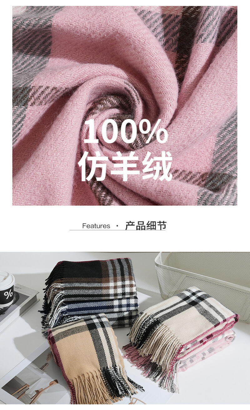 圍巾女拼色英倫格子圍巾秋冬保暖圍脖披肩兩用新款仿羊絨流蘇圍巾保暖披肩圍巾質感圍巾冷氣披肩空調百搭保暖圍脖防風圍脖韓版圍巾