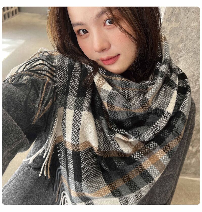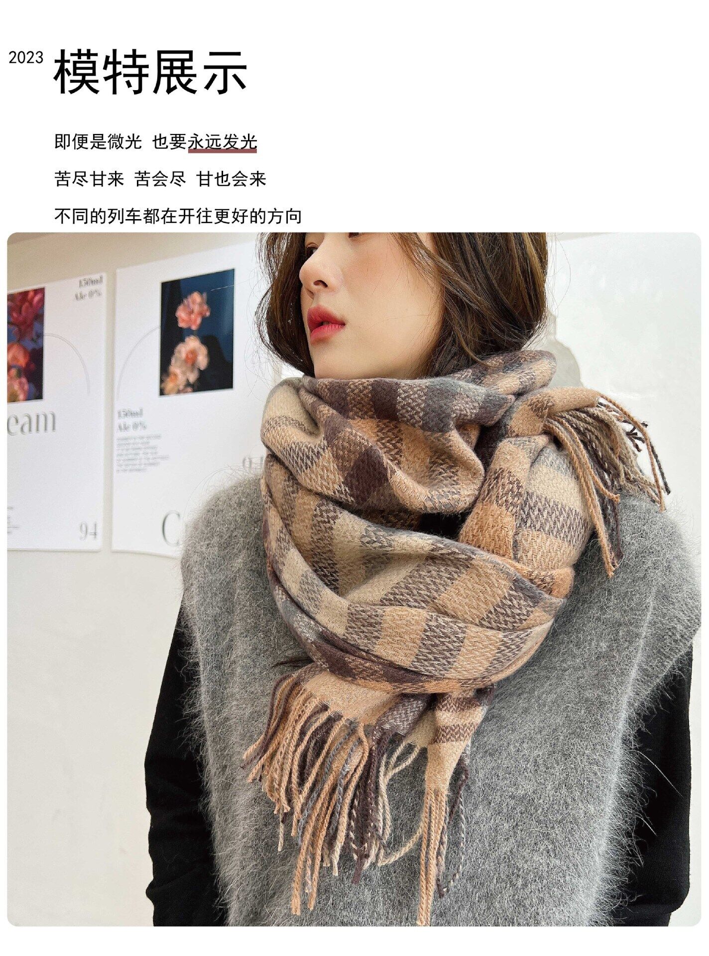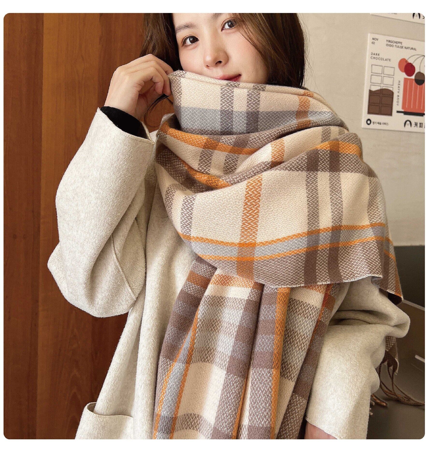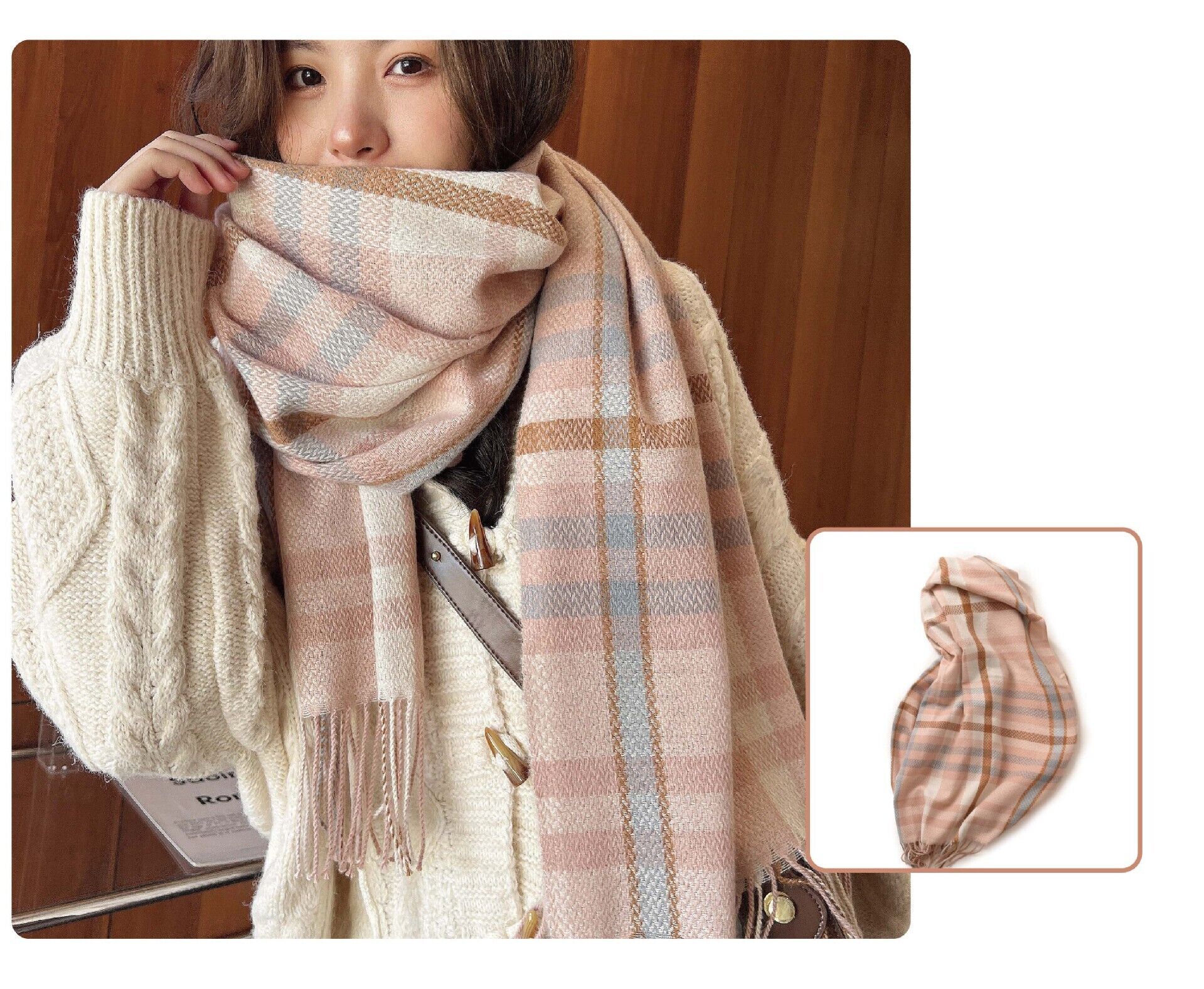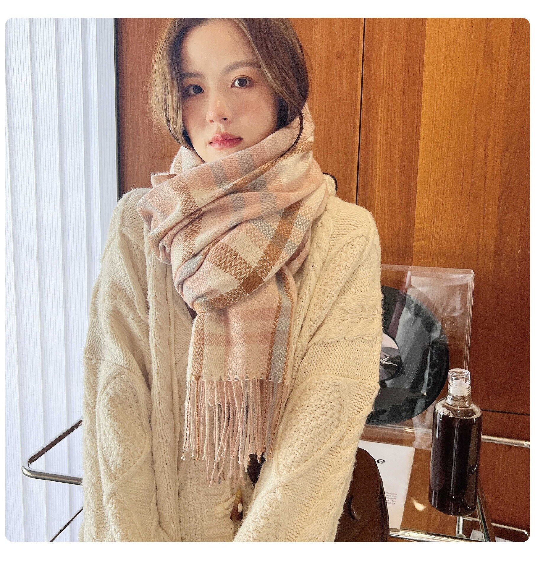圍巾女中長款加厚圍巾韓國甜美保暖仿羊絨圍巾格子披肩圍脖女高級感保暖披肩質感圍巾冷氣披肩空調百搭保暖圍脖防風圍脖韓版圍巾