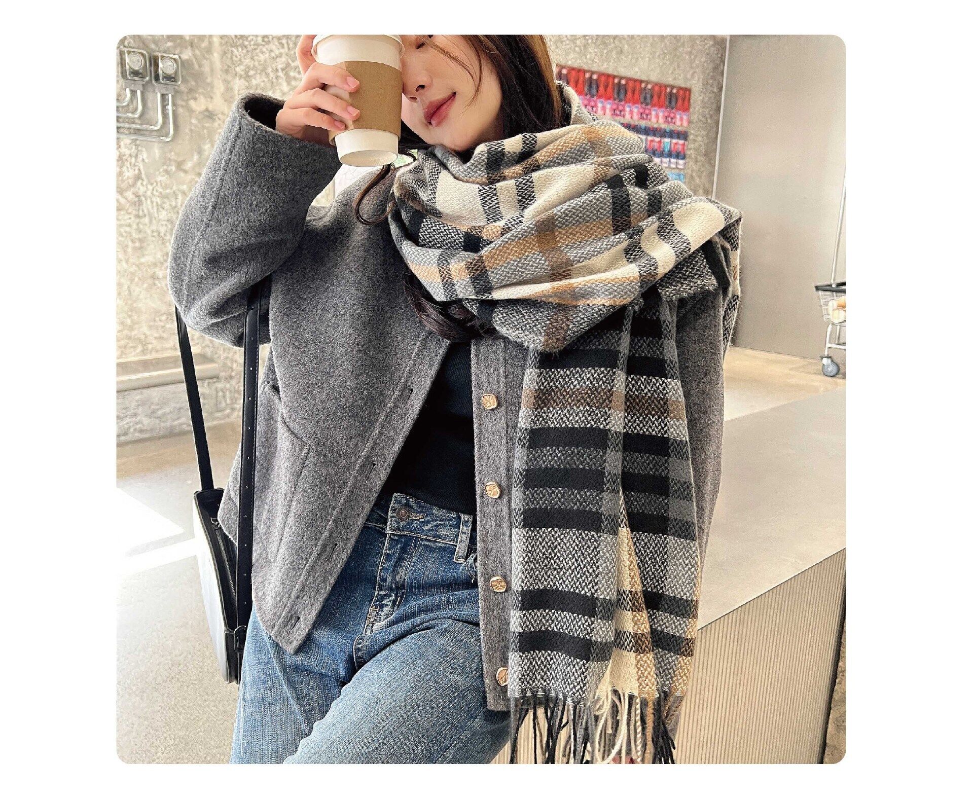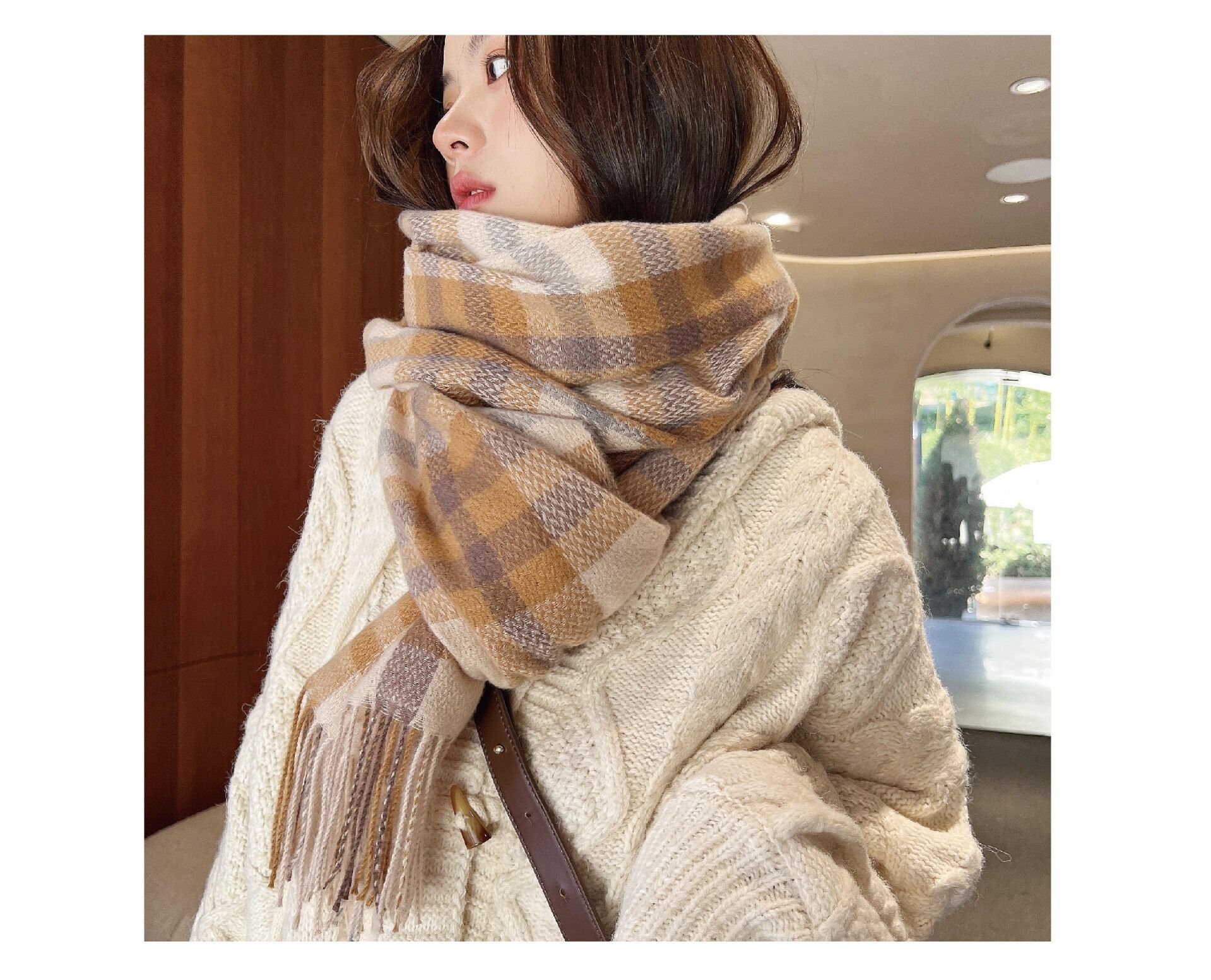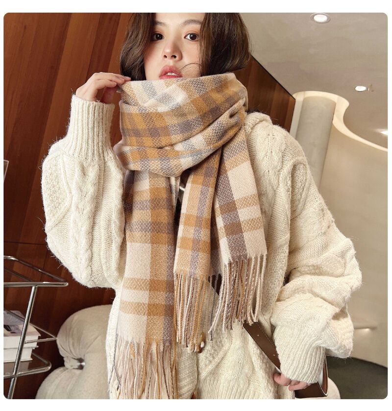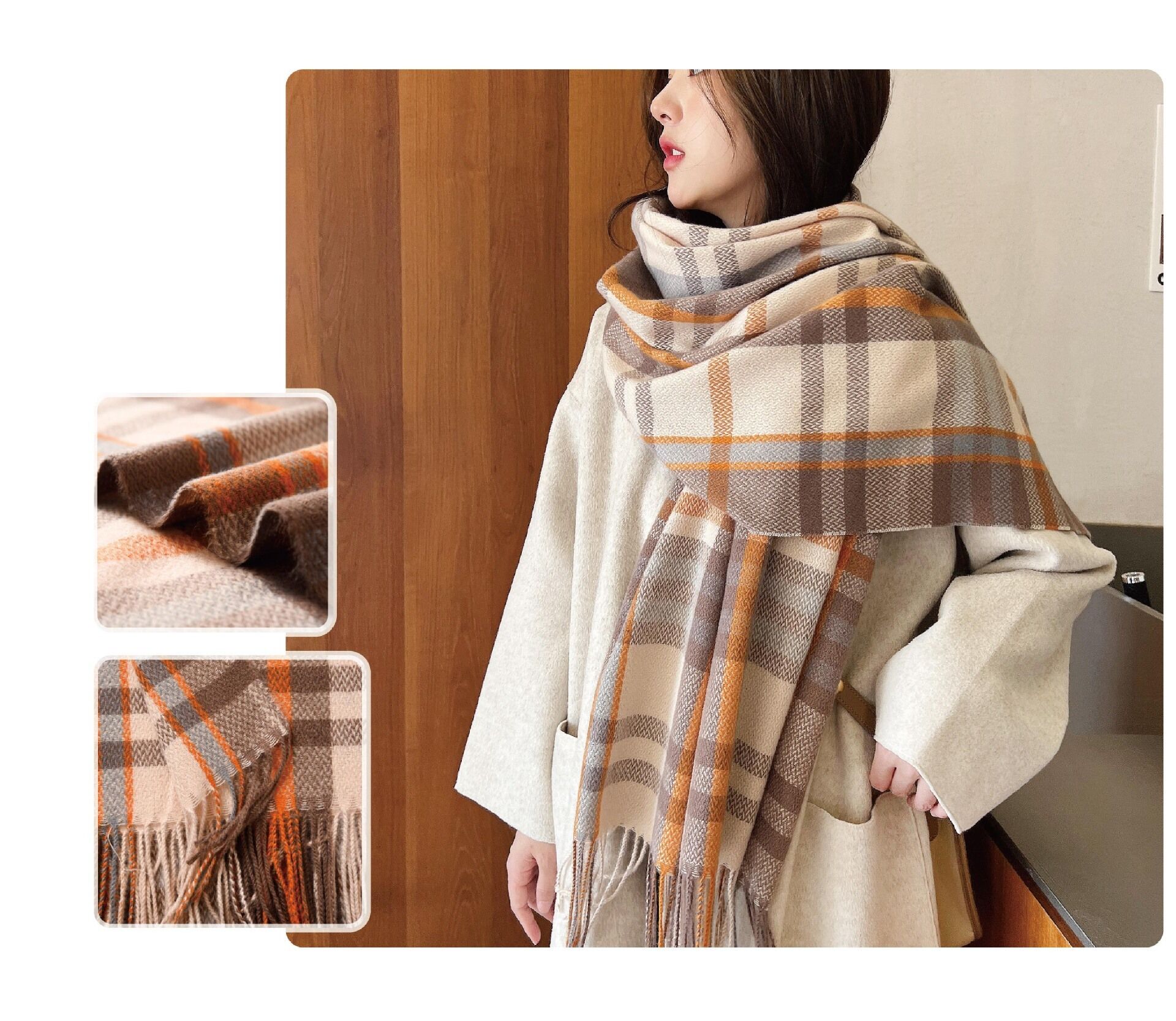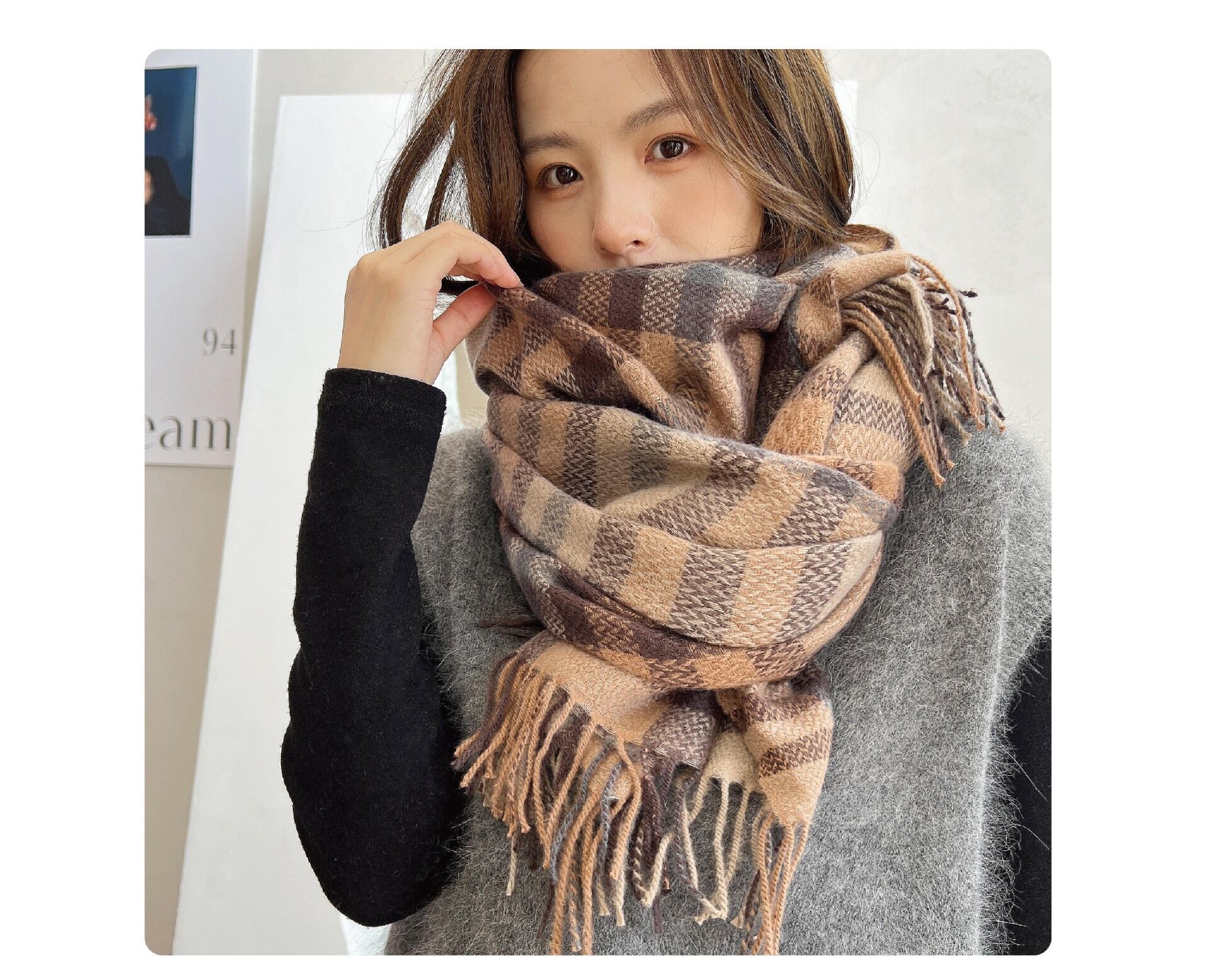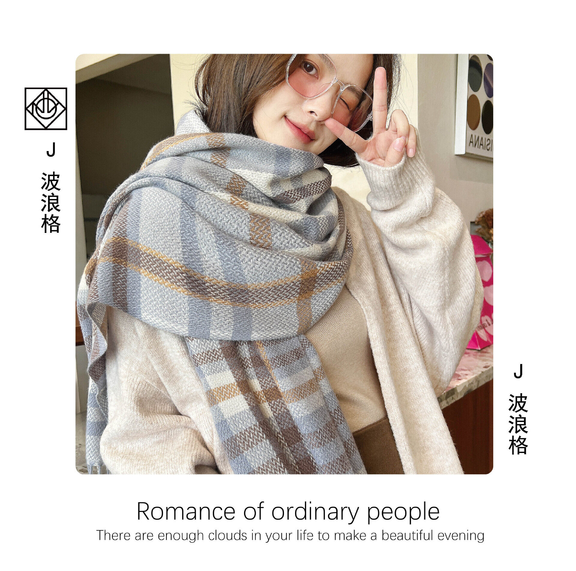 圍巾女中長款加厚圍巾韓國甜美保暖仿羊絨圍巾格子披肩圍脖女高級感保暖披肩質感圍巾冷氣披肩空調百搭保暖圍脖防風圍脖韓版圍巾