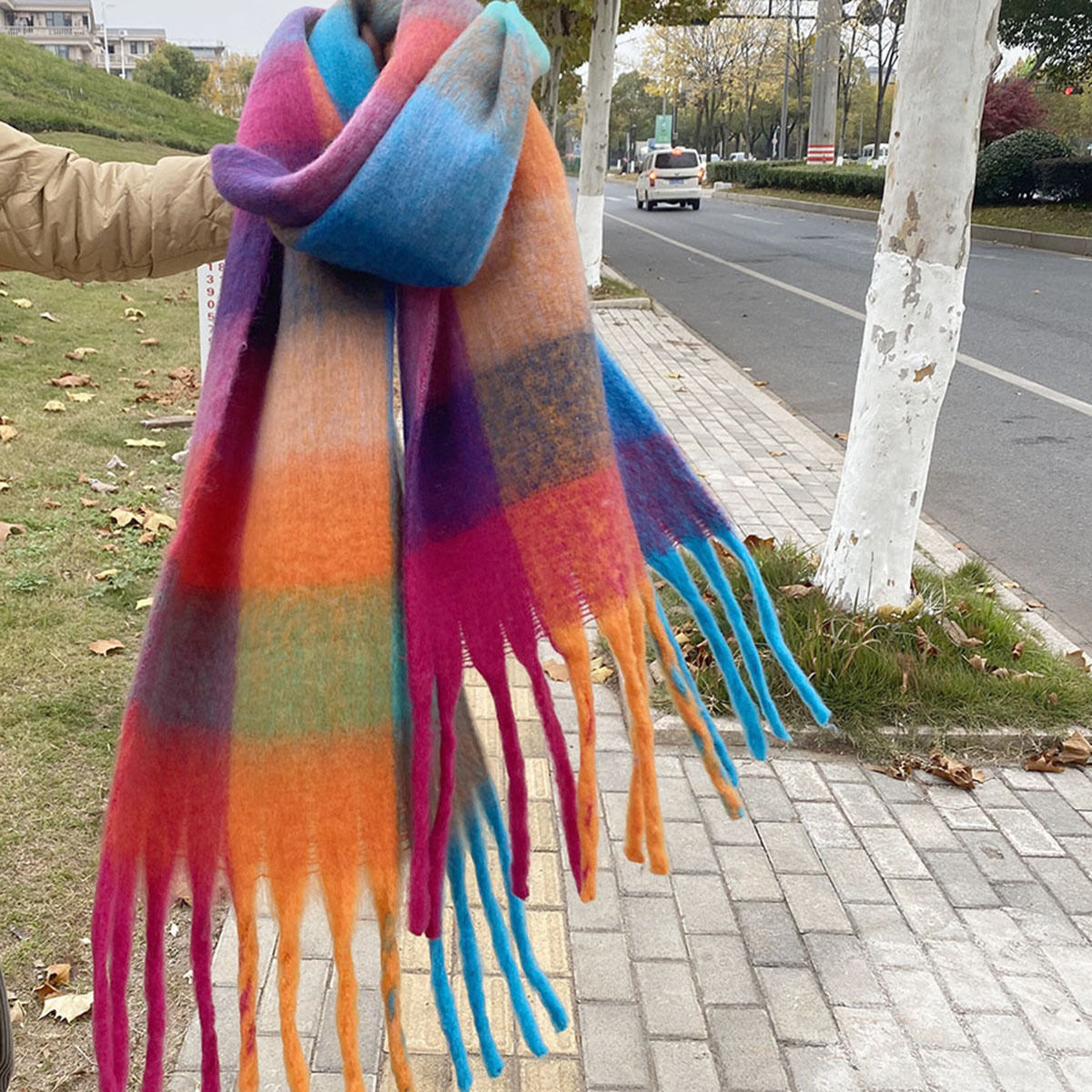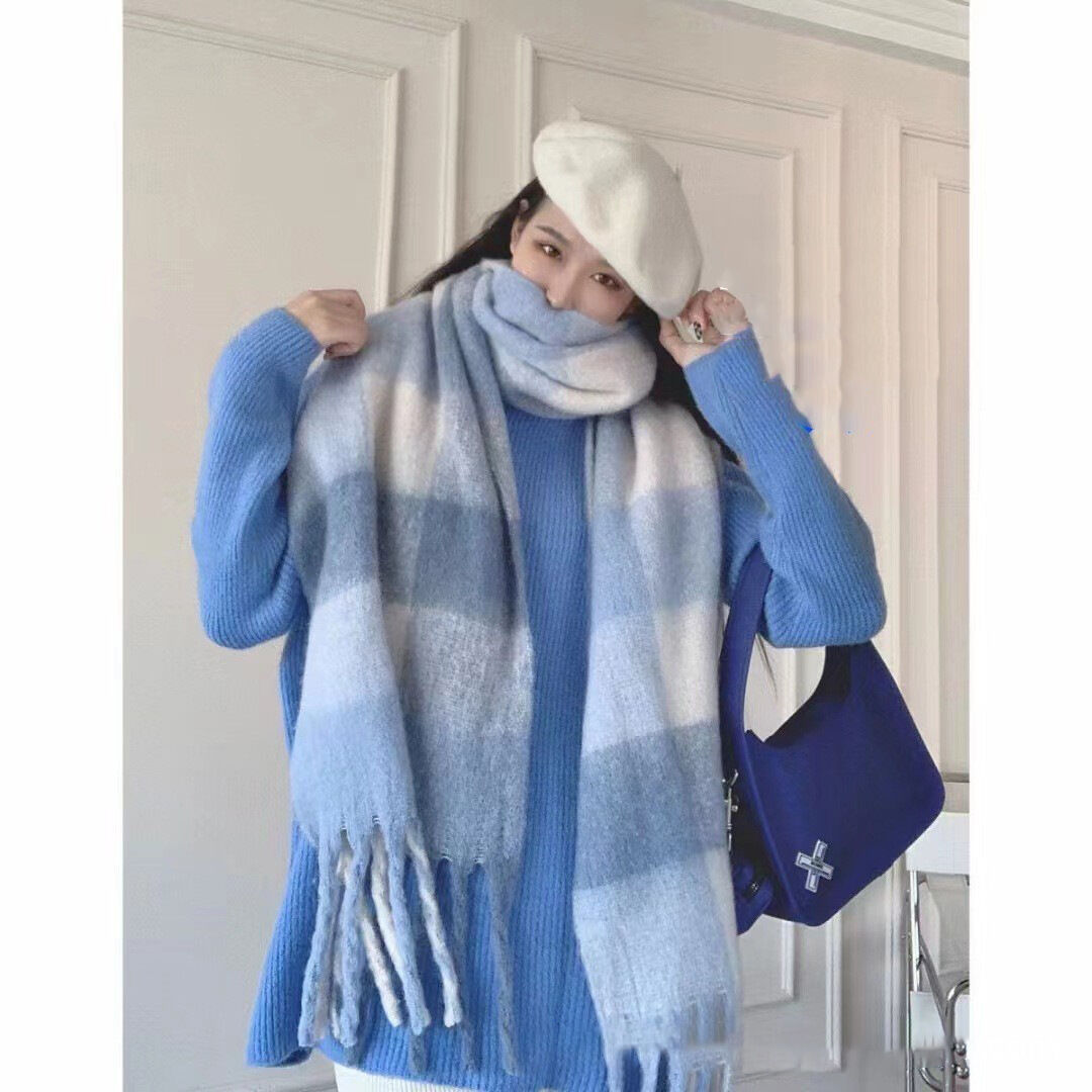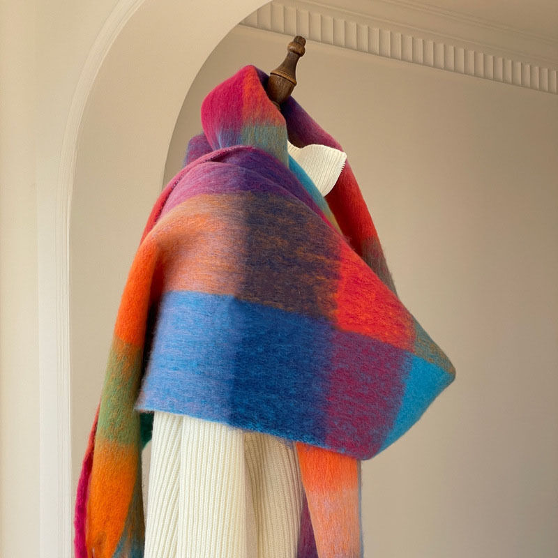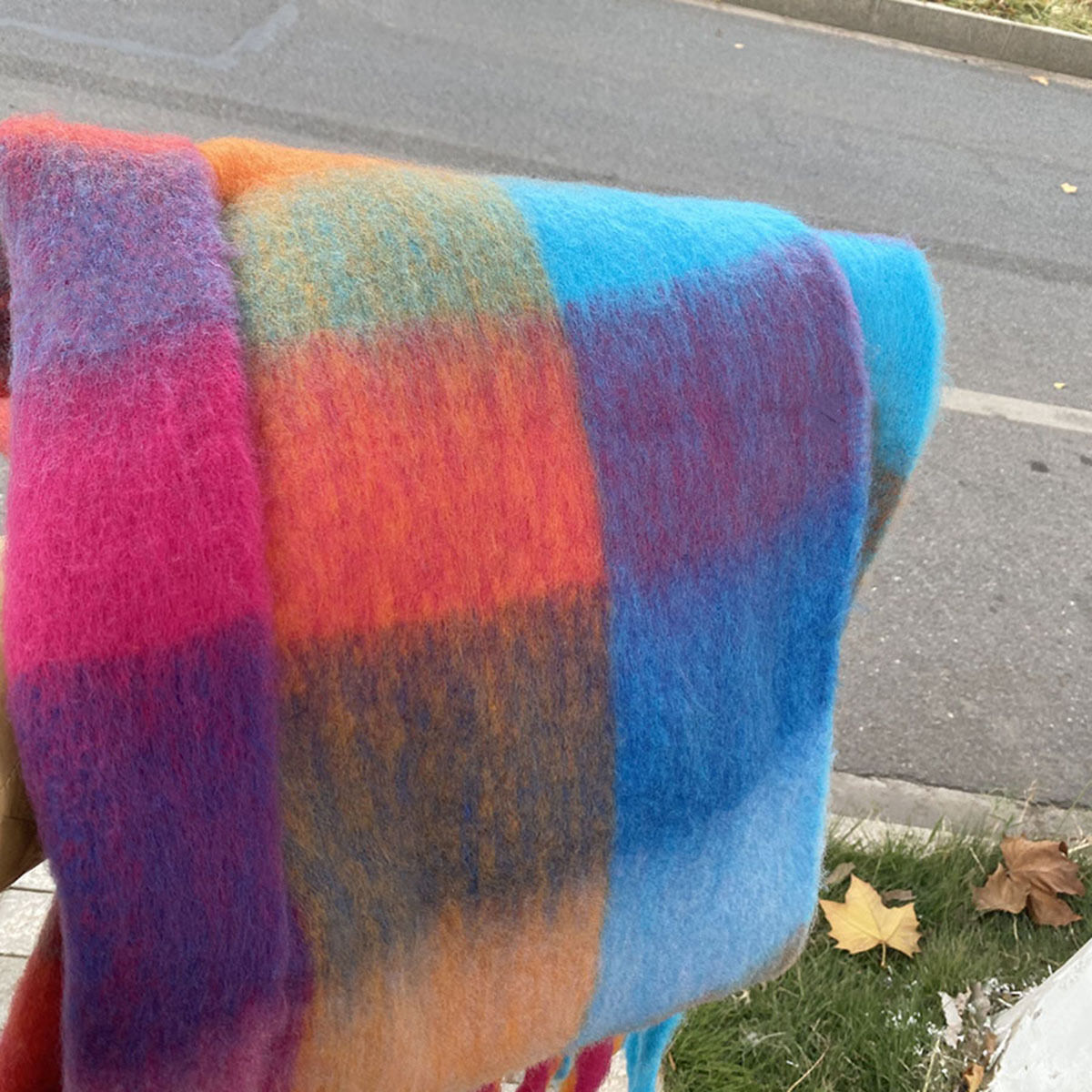 圍巾女漸變彩色格子仿羊絨高級細膩柔軟拼色流蘇大披肩圍巾保暖披肩圍巾質感圍巾冷氣披肩空調百搭保暖圍脖防風圍脖韓版圍巾