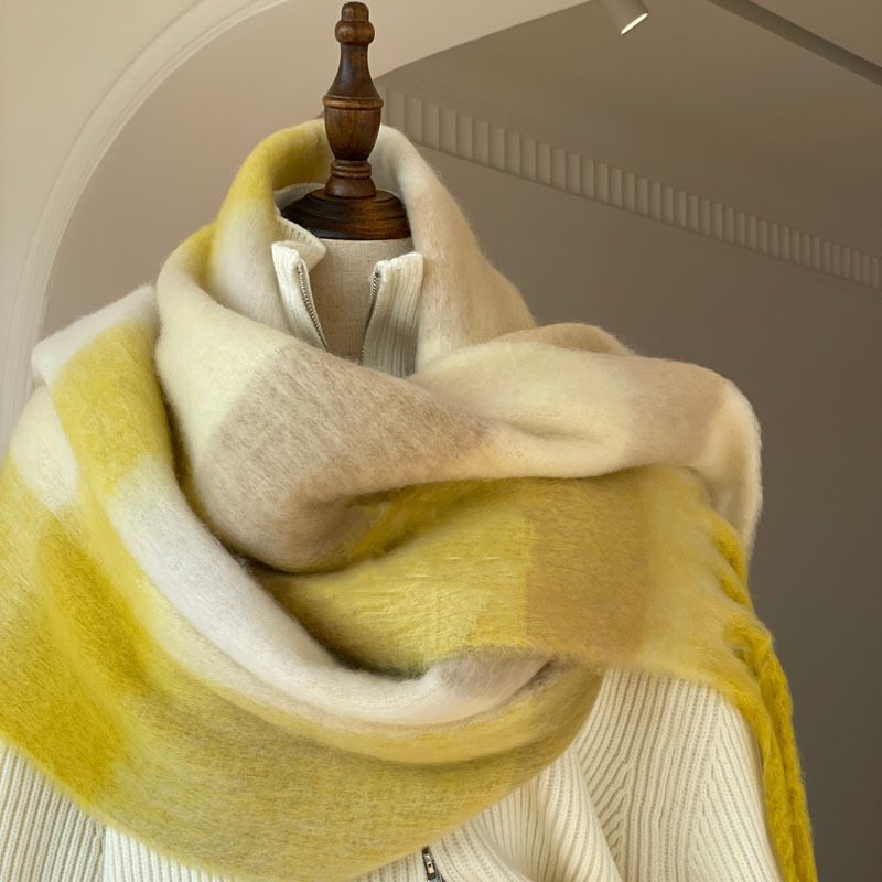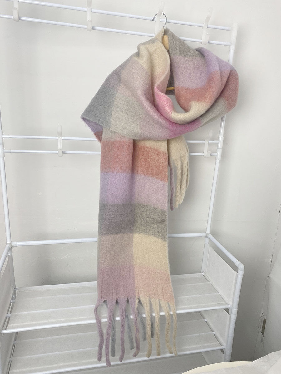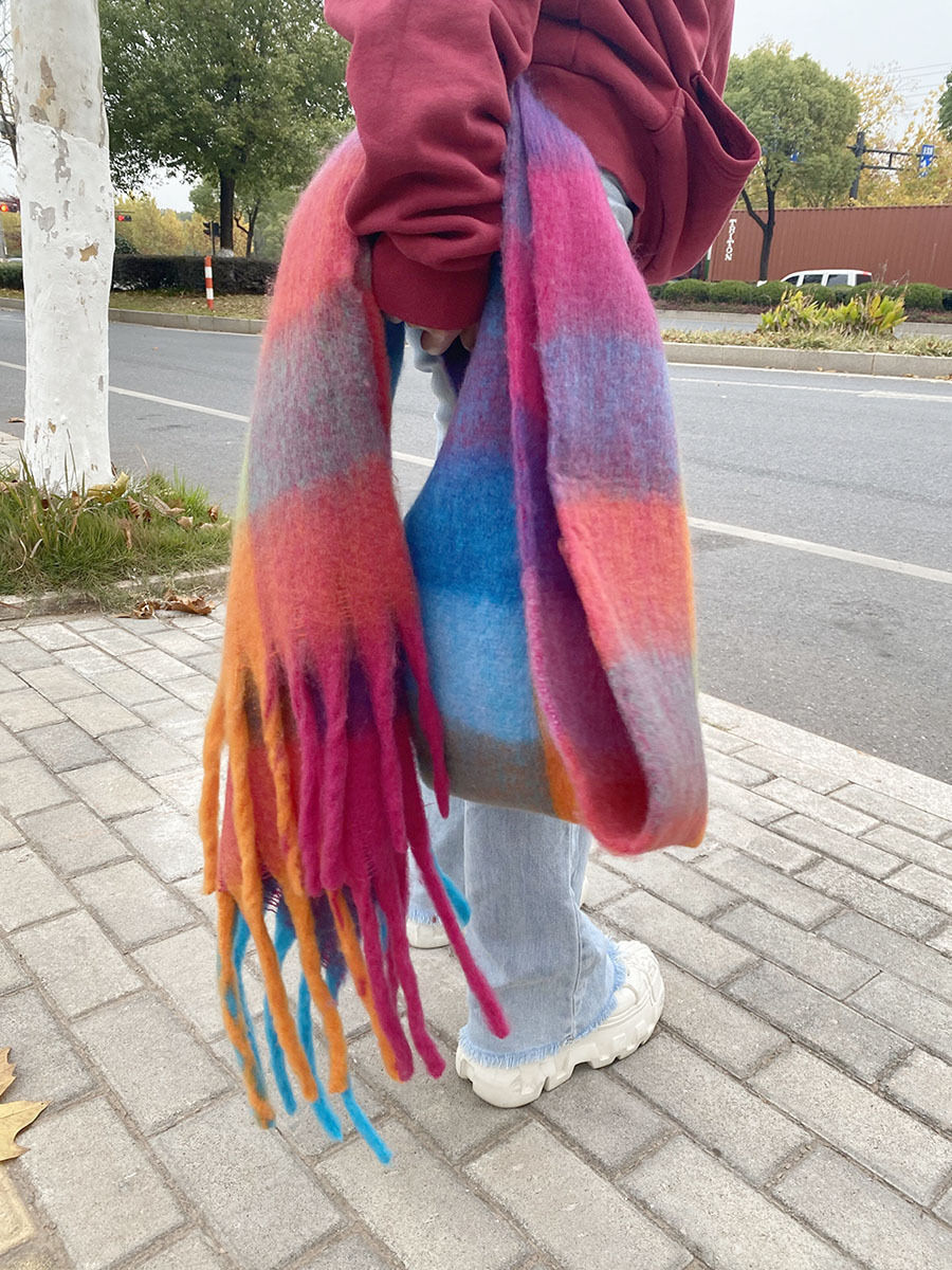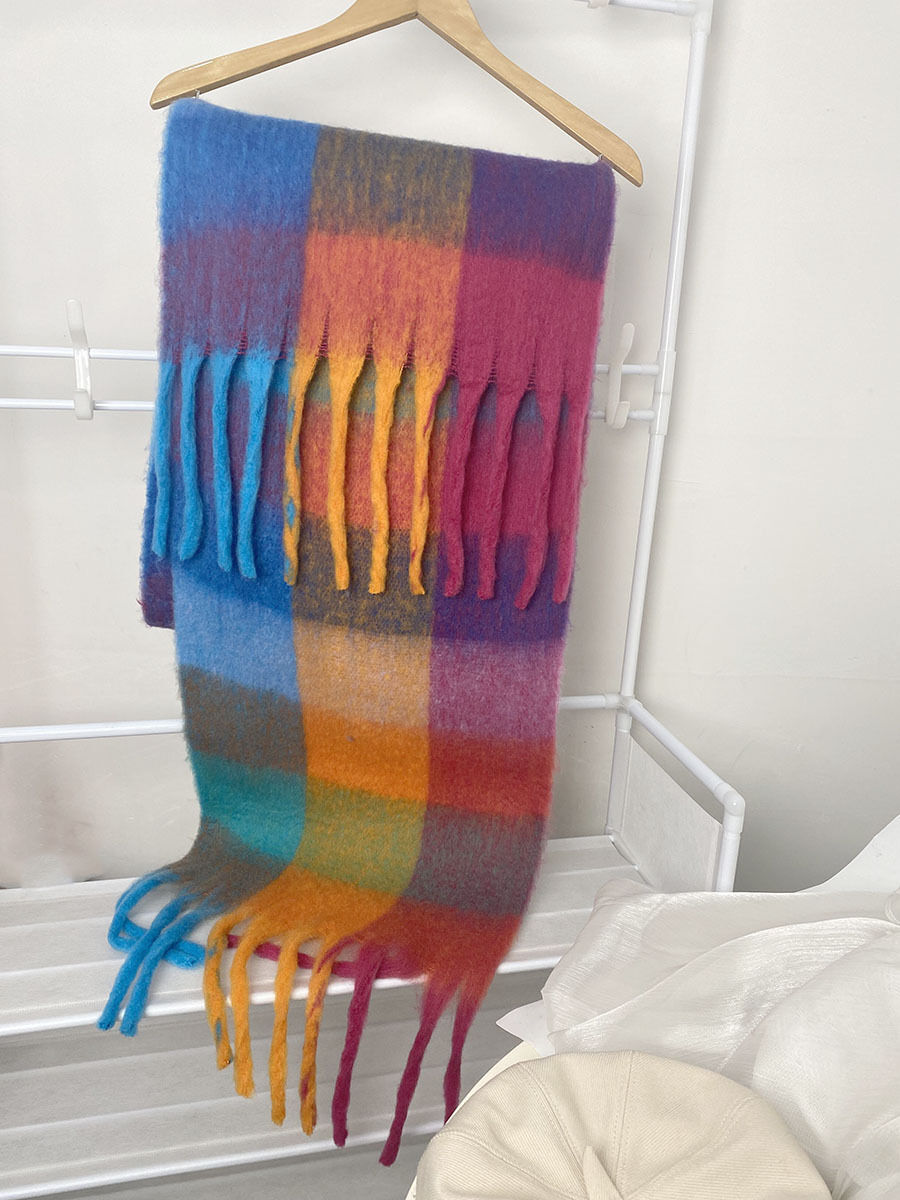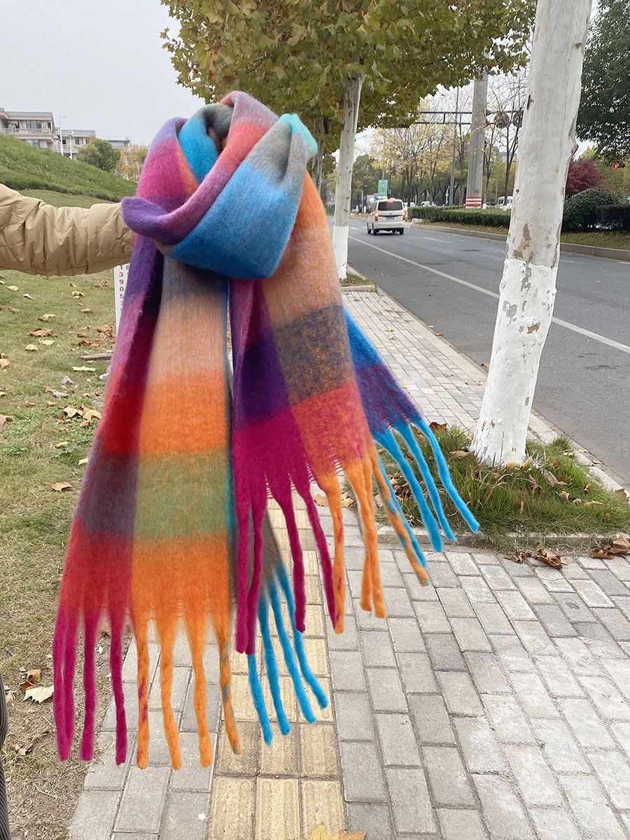 圍巾女漸變彩色格子仿羊絨高級細膩柔軟拼色流蘇大披肩圍巾保暖披肩圍巾質感圍巾冷氣披肩空調百搭保暖圍脖防風圍脖韓版圍巾