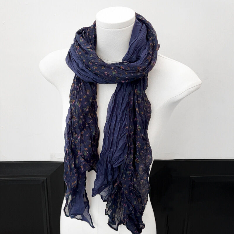 圍巾女文藝氣息棉麻碎花褶皺圍巾大理旅遊拍照氛圍感薄款披肩護頸圍脖保暖披肩圍巾質感圍巾冷氣披肩空調保暖圍脖防風圍脖韓版圍巾