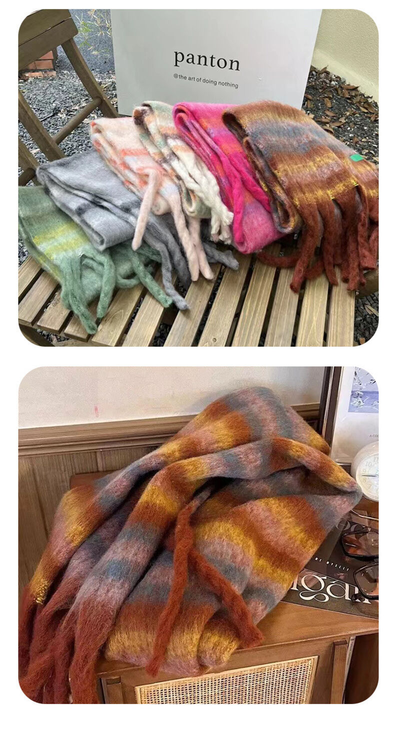 圍巾女馬海毛圍巾秋冬季新款彩虹格子高級感加厚保暖圍脖學生披肩保暖披肩圍巾質感圍巾冷氣披肩空調百搭保暖圍脖防風圍脖韓版圍巾