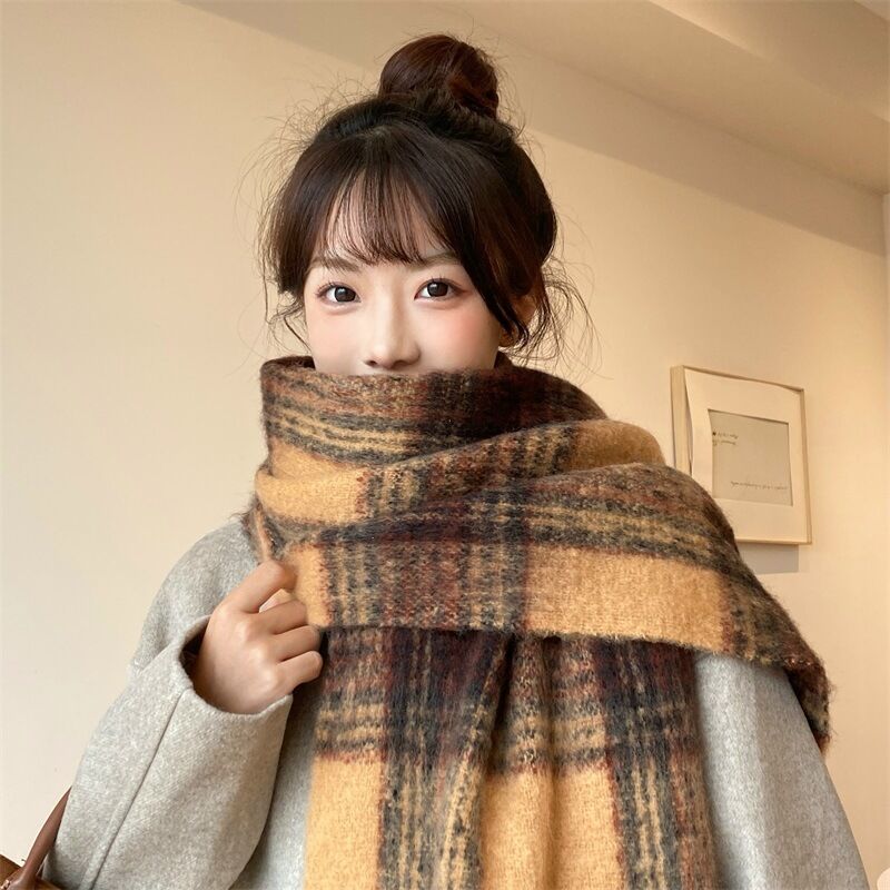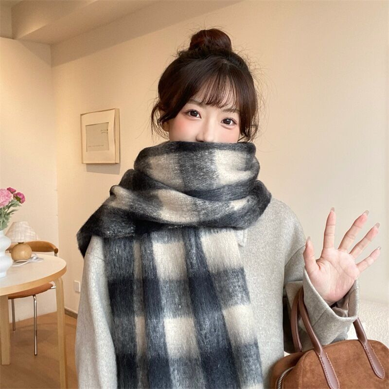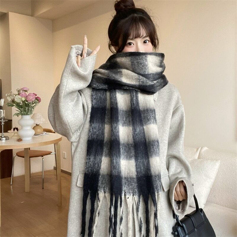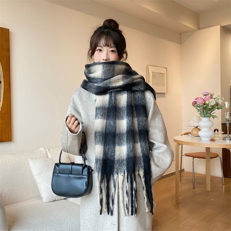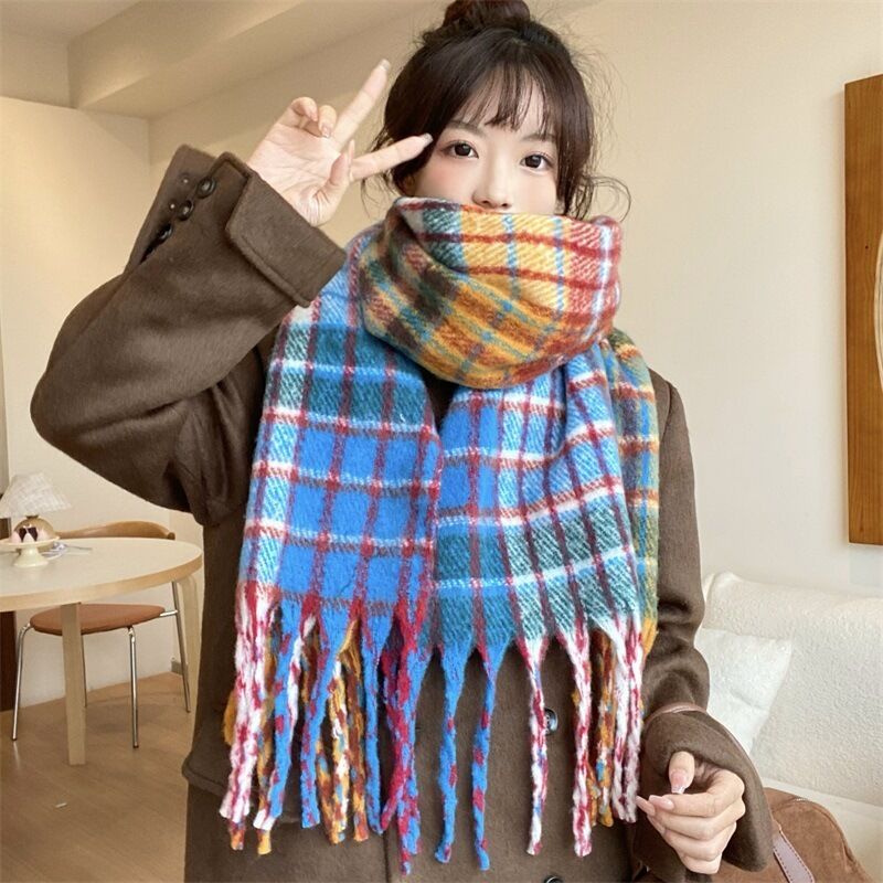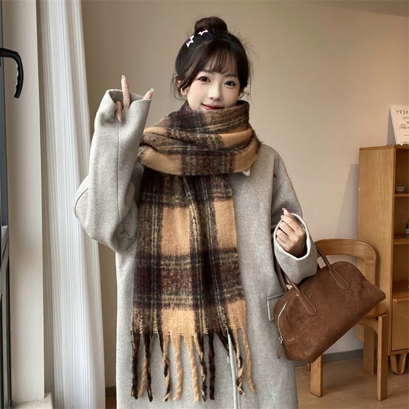 圍巾女秋冬格子圍巾高級感女士保暖新款仿羊絨流蘇女士圍脖披肩保暖披肩圍巾質感圍巾冷氣披肩空調百搭保暖圍脖防風圍脖韓版圍巾